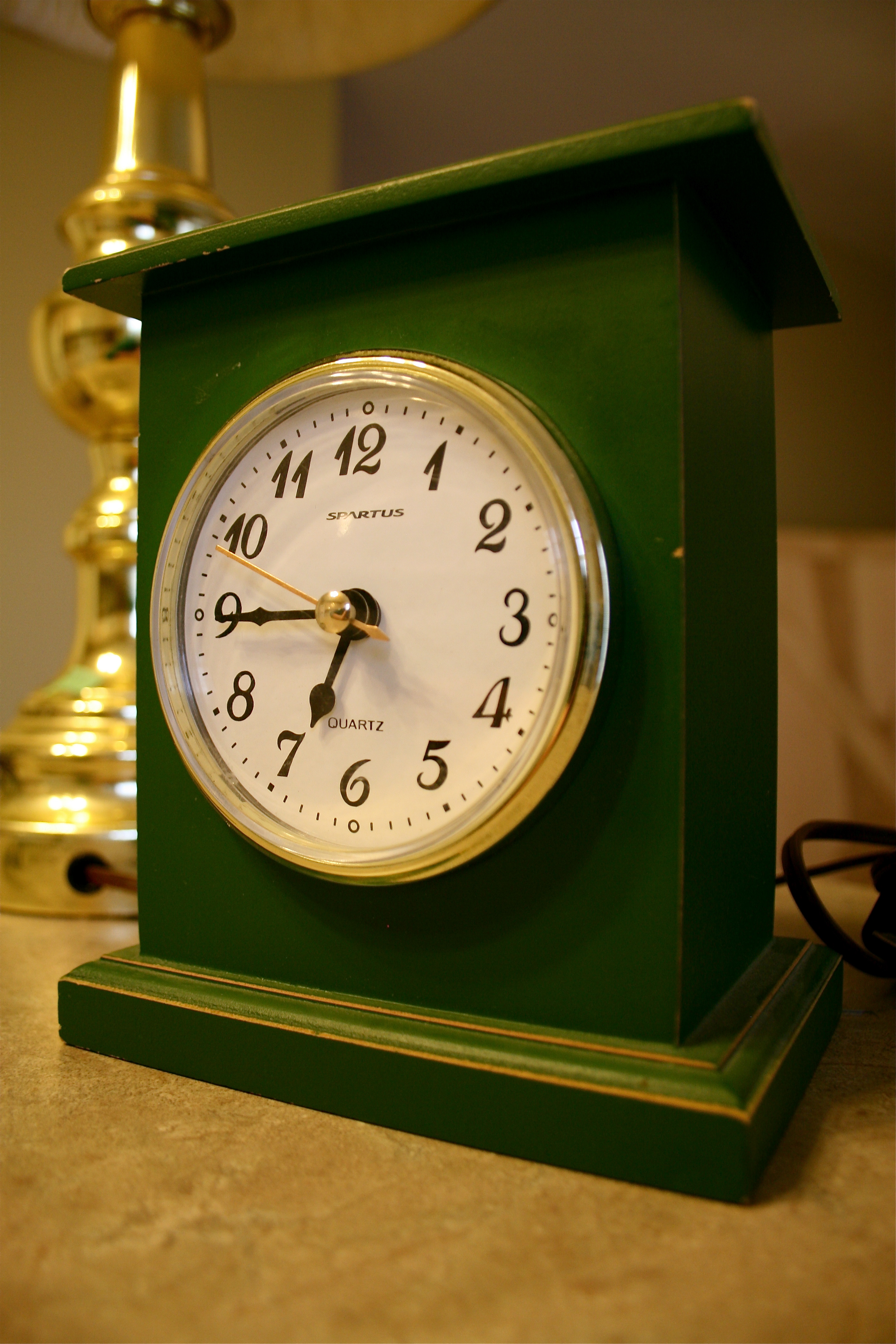 And finally, the green clock is now in the half bath on a shelf (which is also a thrifted treasure). It may find a different home after we tackle the half bath next weekend…