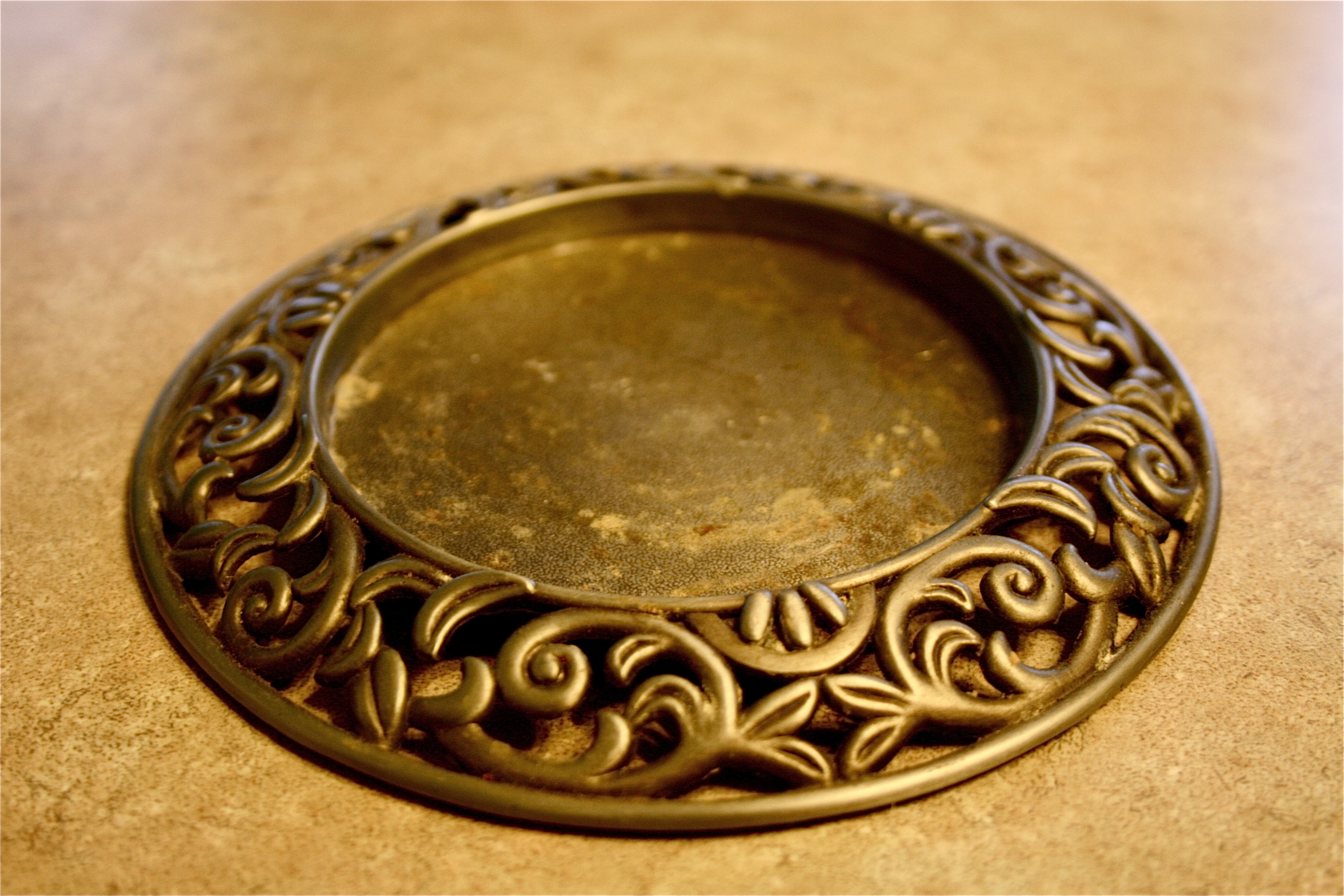 The little silver dish (which John enlightened me to the fact that it’s probably an ash tray – “You taking up smoking in bed??”) went next to the bed for me to put my rings and earrings in if I forget to take them off in the bathroom. I figure I could also use it as a coaster too if I bring a cup of water with me. Gotta love pretty functionality!