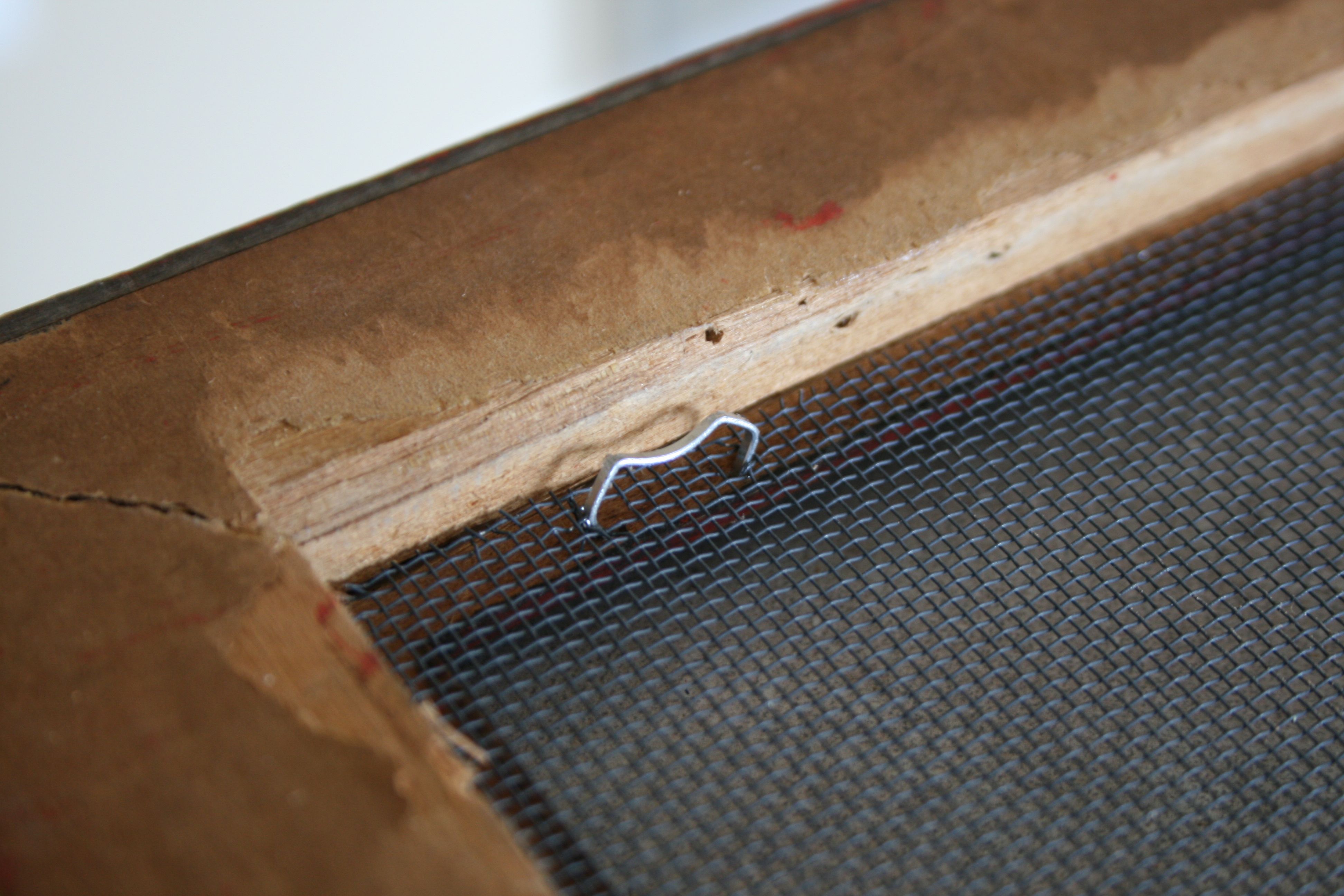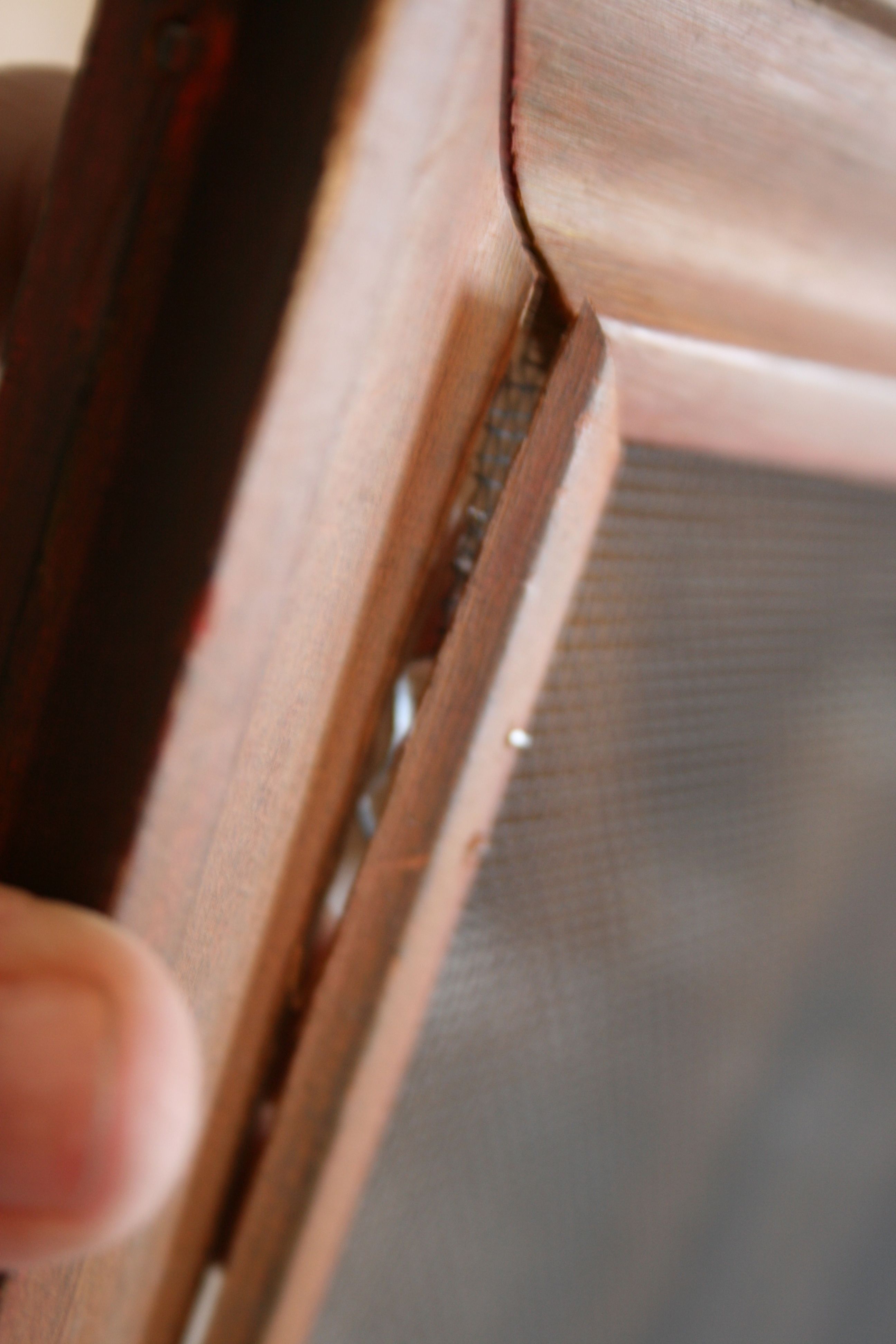 After getting the screen cut to fit and all clean, I loaded my staple gun and gleefully shot a staple  into the frame.