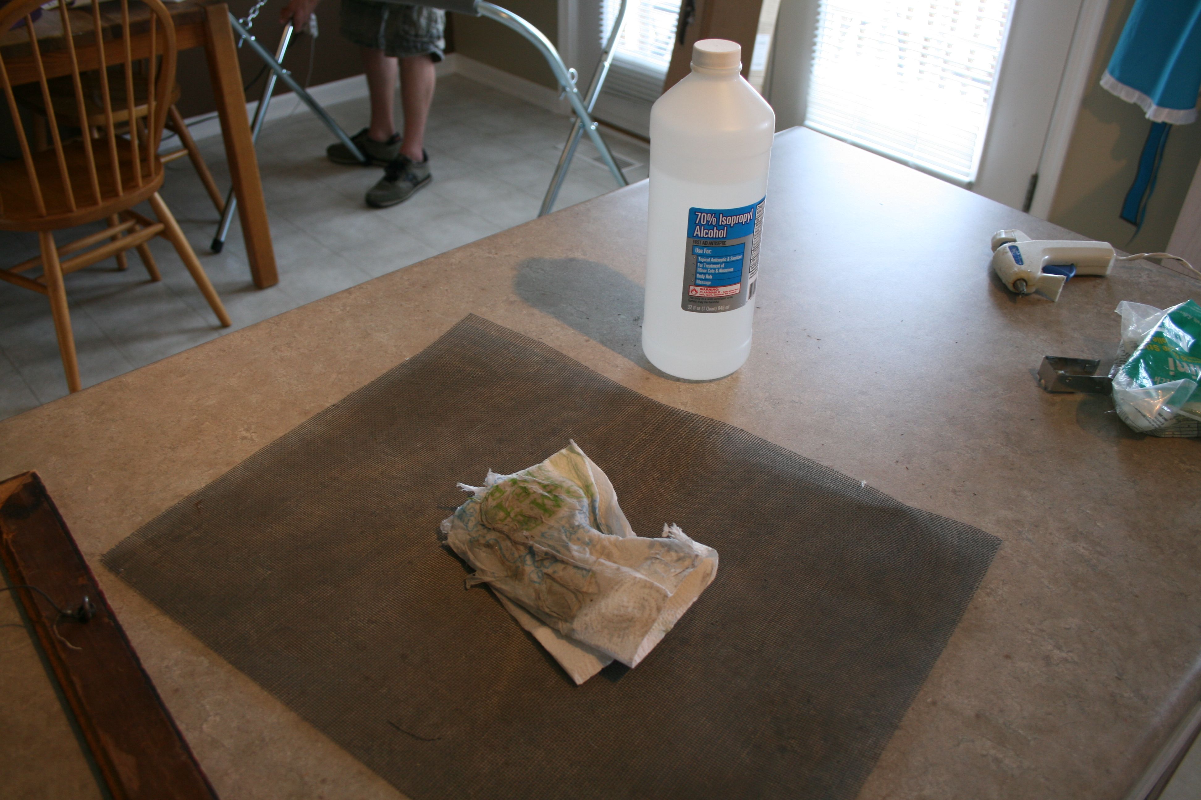 Oh, and make sure you clean your wire mesh with alcohol before actually adhering it to the frame…Whether you bought a used or new screen, it’s good to give it a thorough wipe/pat down to keep your jewelry nice and sterile. Just look at all the gunk that came off on the paper towel!