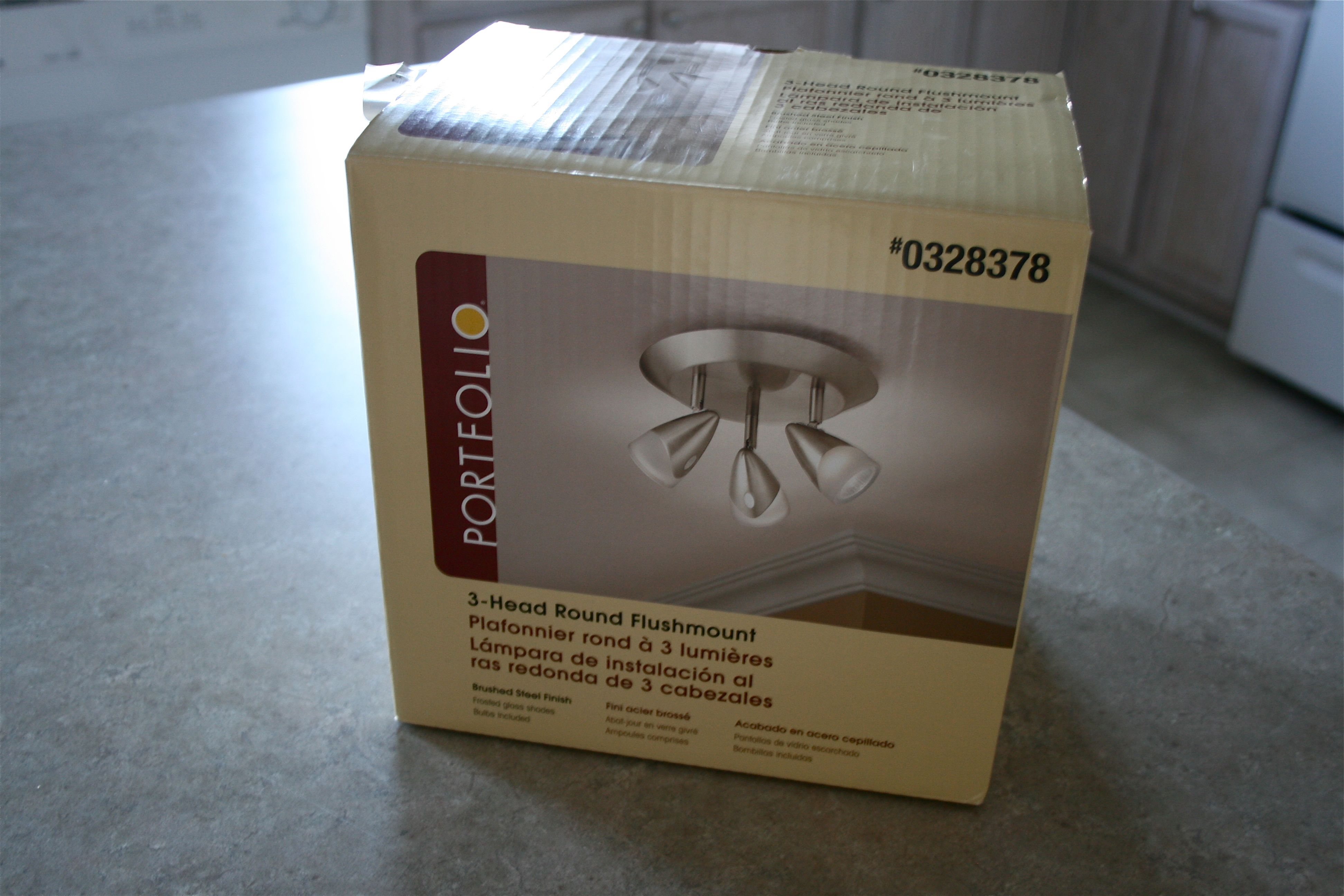 Oh, did I not tell you that we switched out the other kitchen light fixture?? Here’s the new one we bought: