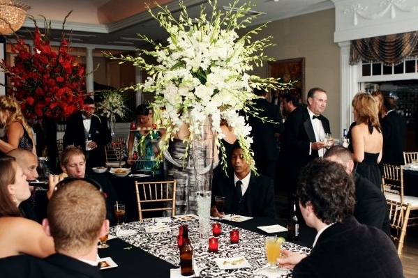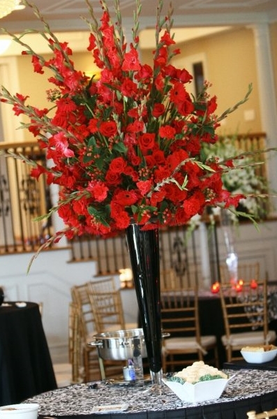 Tall centerpieces also allow room for creativity with the vase itself. If you want to incorporate more color, you could either use a colored glass vase or, to save money, fill a plain clear vase with color-dyed water – This may sound a little tacky, but the effect is actually quite beautiful!