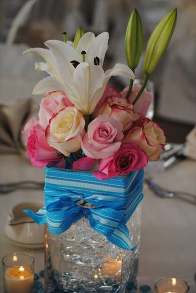 Ribbon is also another great accessory – The colors and textures can be an extension of your wedding day theme. For a modern, spring-time wedding choose a thick silk ribbon in a solid shade of your wedding colors. For a vintage-themed outdoor wedding, choose ribbon in a traditional pattern like paisley or gingham. Wrapping the ribbon around your vase of flowers could be the finishing touch you’re after.