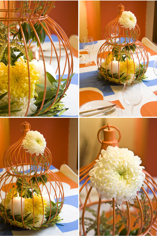 If you think about it, wedding centerpieces are usually all about shape, size and color. So that allows you the opportunity to play with anything that falls into those categories – Could be a collection of candles or even a painted birdcage!