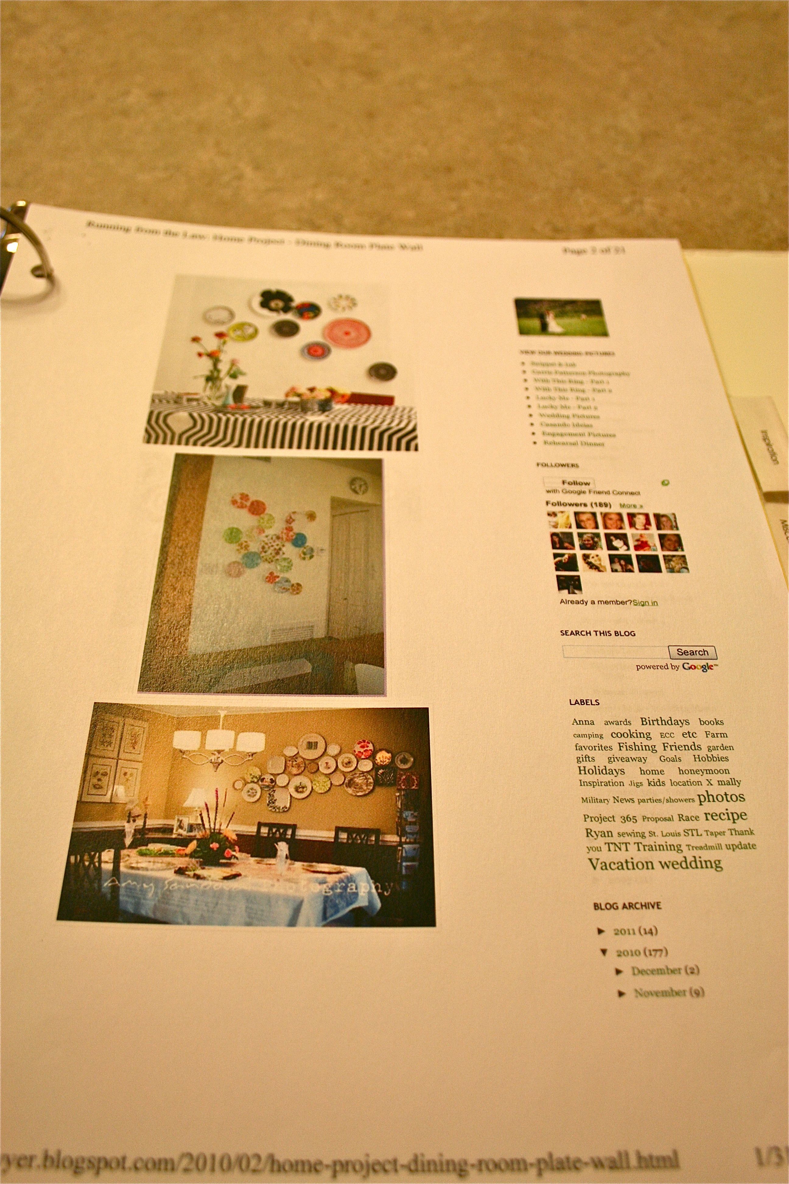 It’s great to be able to plan a weekend to work on a specific craft or project and be able to flip to that section of the binder for help or more inspiration. For example, here’s the print out of the plate wall – I definitely had the binder open to this page for assistance during that project last month…