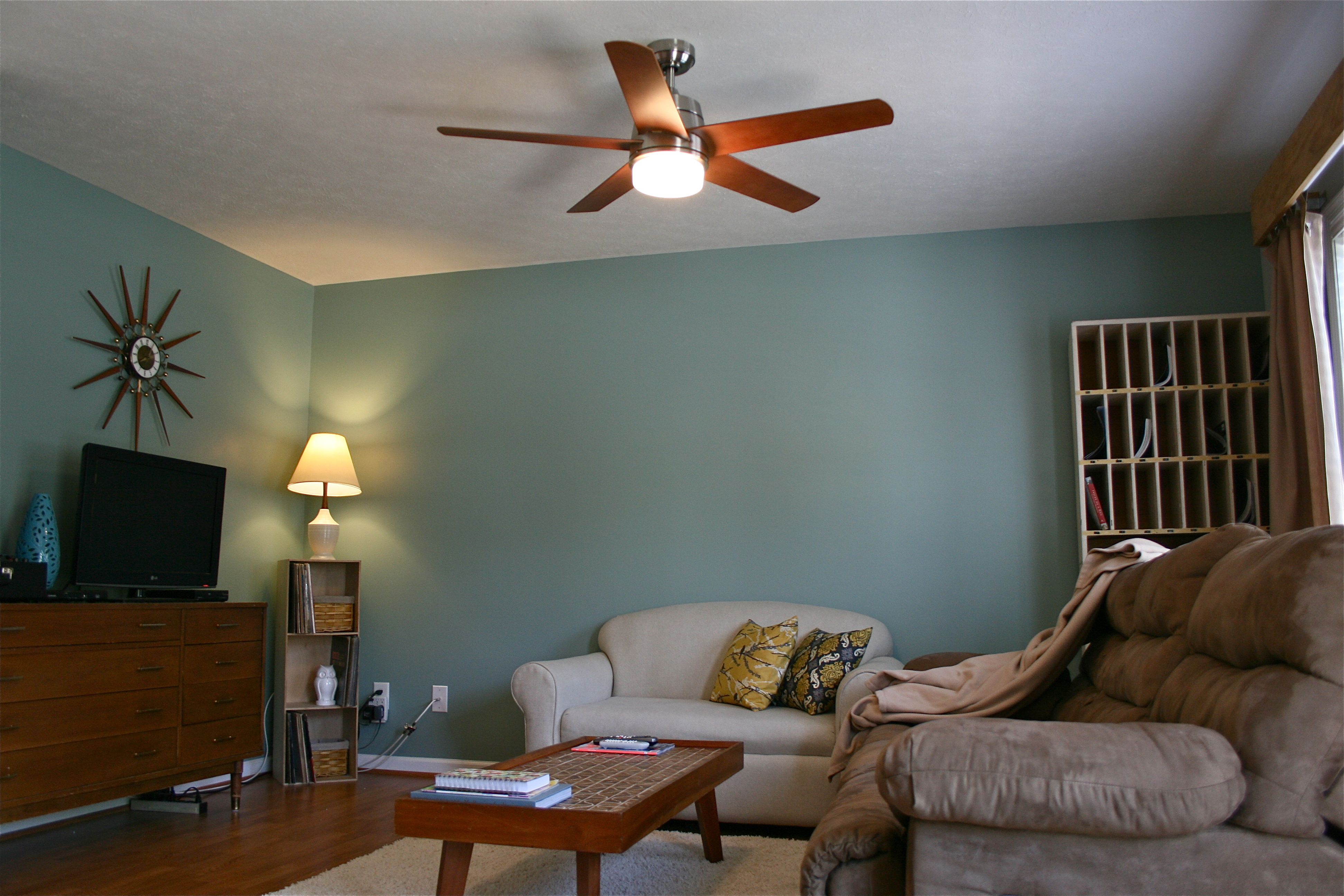 With the new warm Spring air blowing in and the soon-to-emerge sweltering Summer heat, we decided to update our living room fan. The previous owners did an update before John bought the house last year, but we figured we could do better…A couple of weeks ago we came across this beaut at Lowe’s: