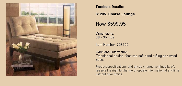 Out of the HUNDREDS of couches, loveseats and chairs that they had in the showroom, there was only one chaise lounge that even closely resembled what we wanted:
