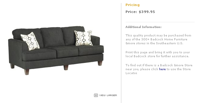 So we were off to Badcock Furniture & More where we came across this sofa and I started to get excited!