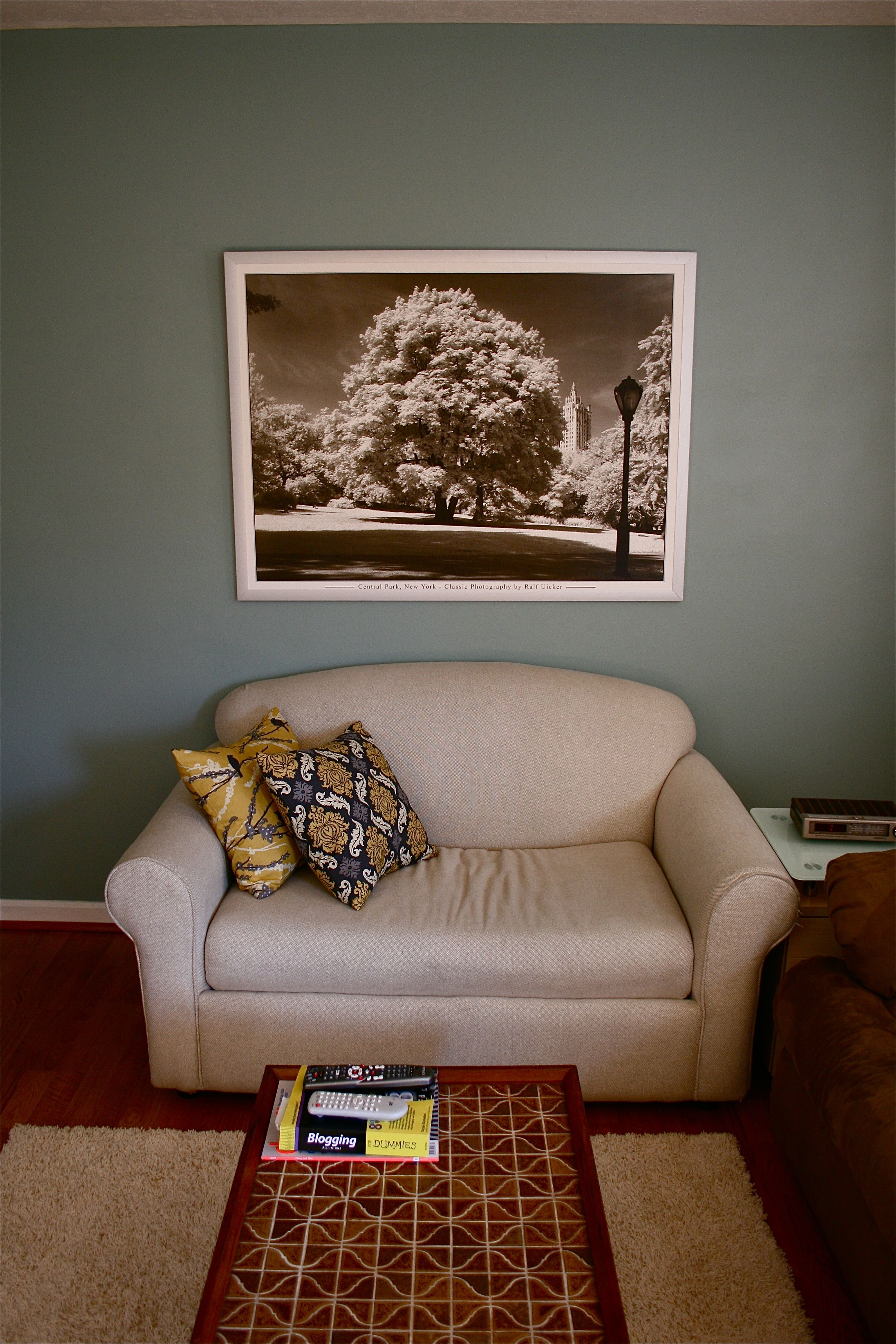 I’m still not ENTHRALLED with the room, but I think that things will change drastically when the new couch arrives…Right now, Uncle Bob the couch is really throwing my visuals off.