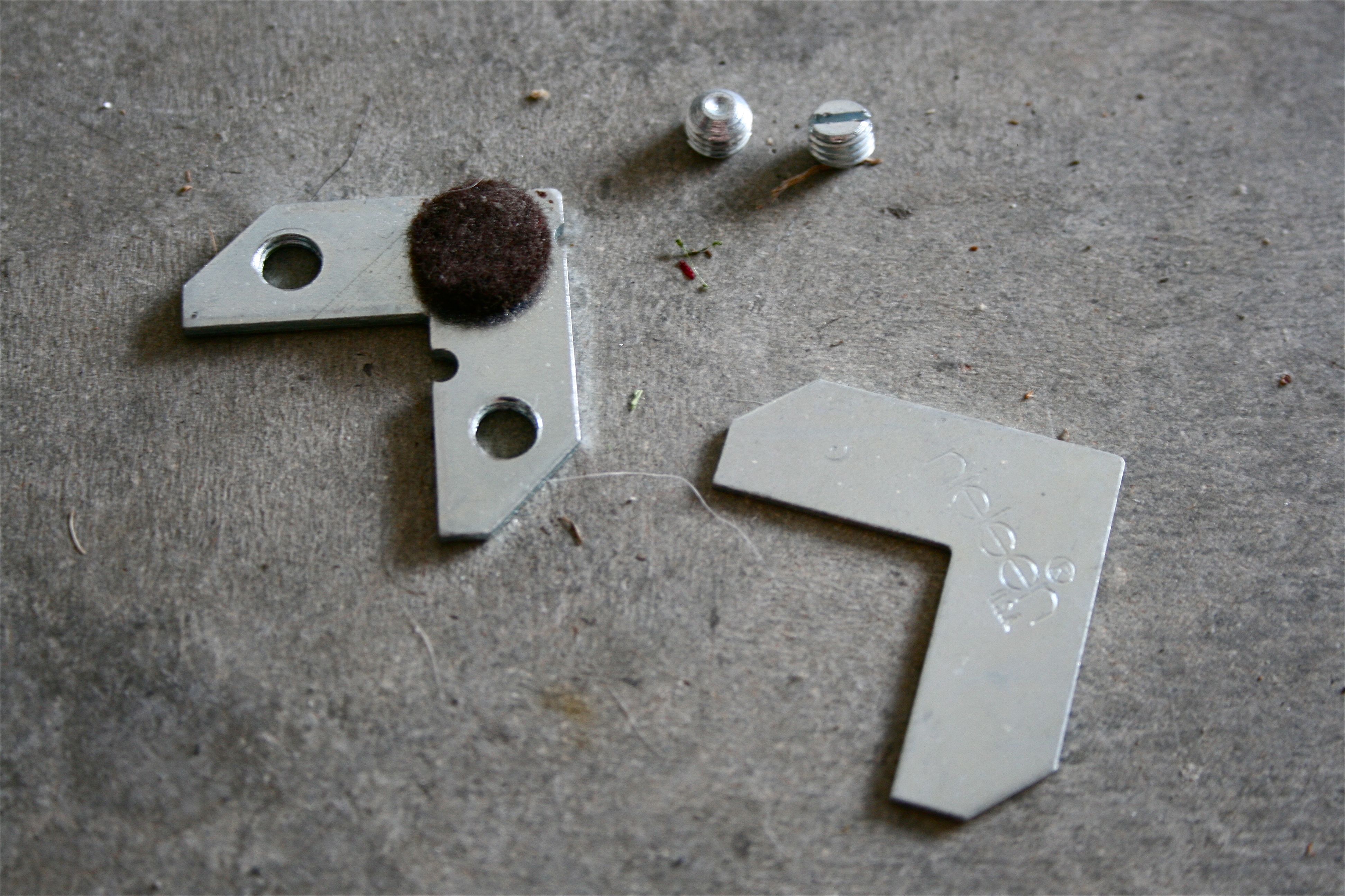 - 4 “L-shaped” metal pieces with a couple of holes for screws (two of these pieces have felt pads and two do not)