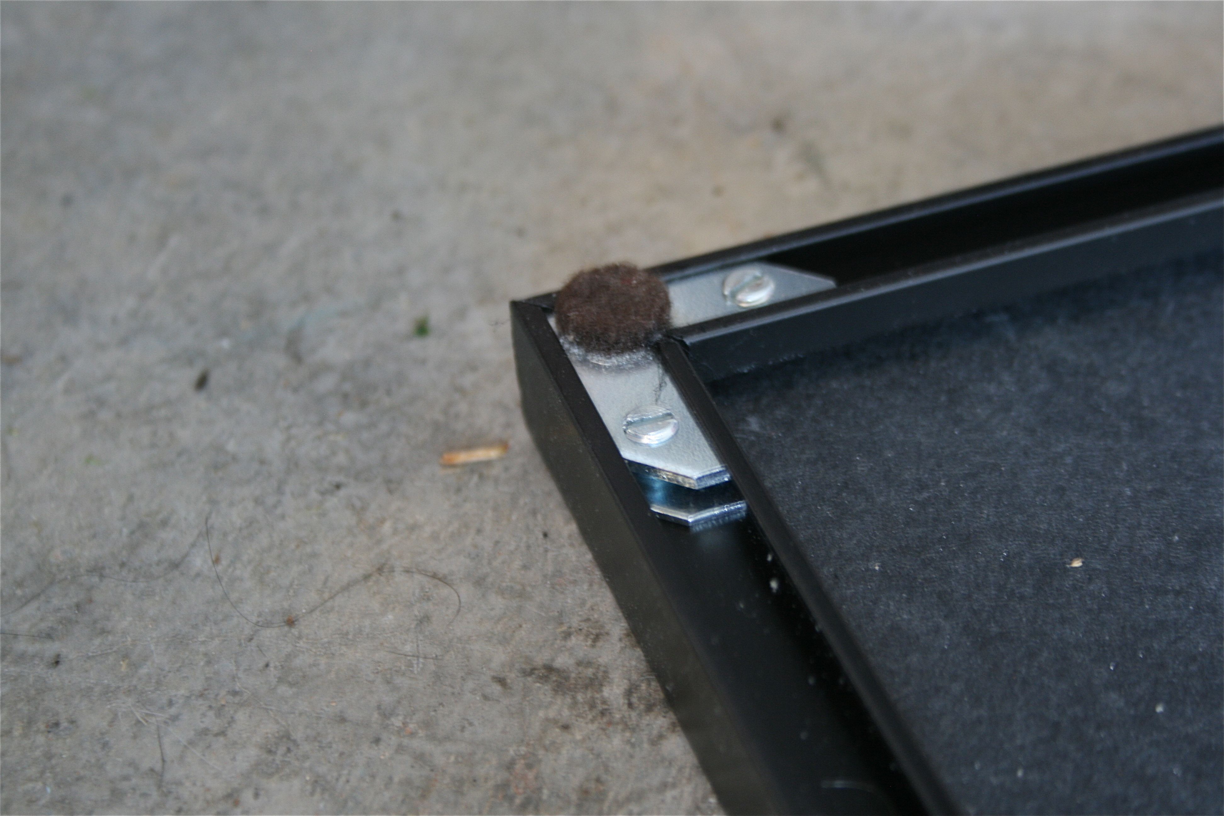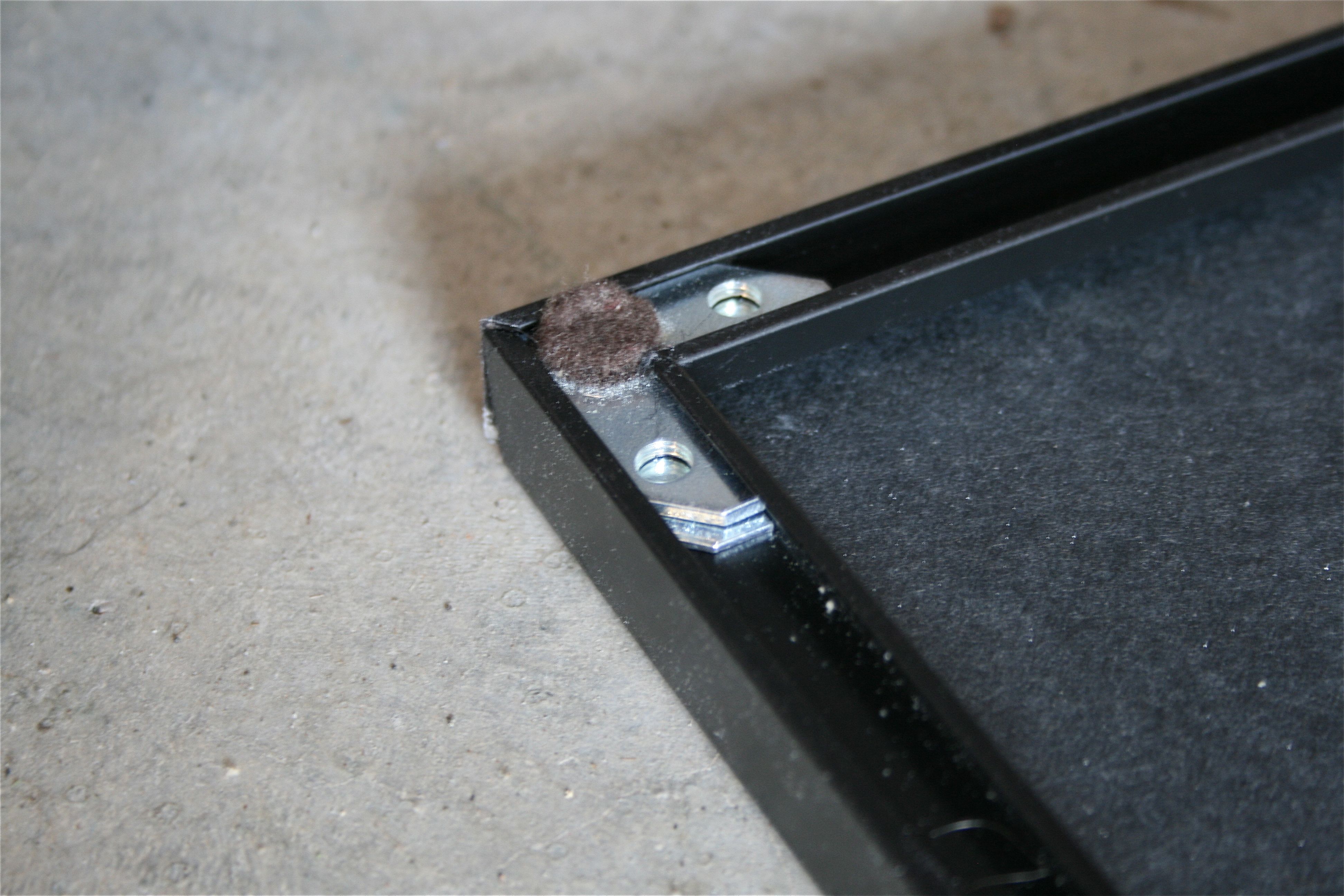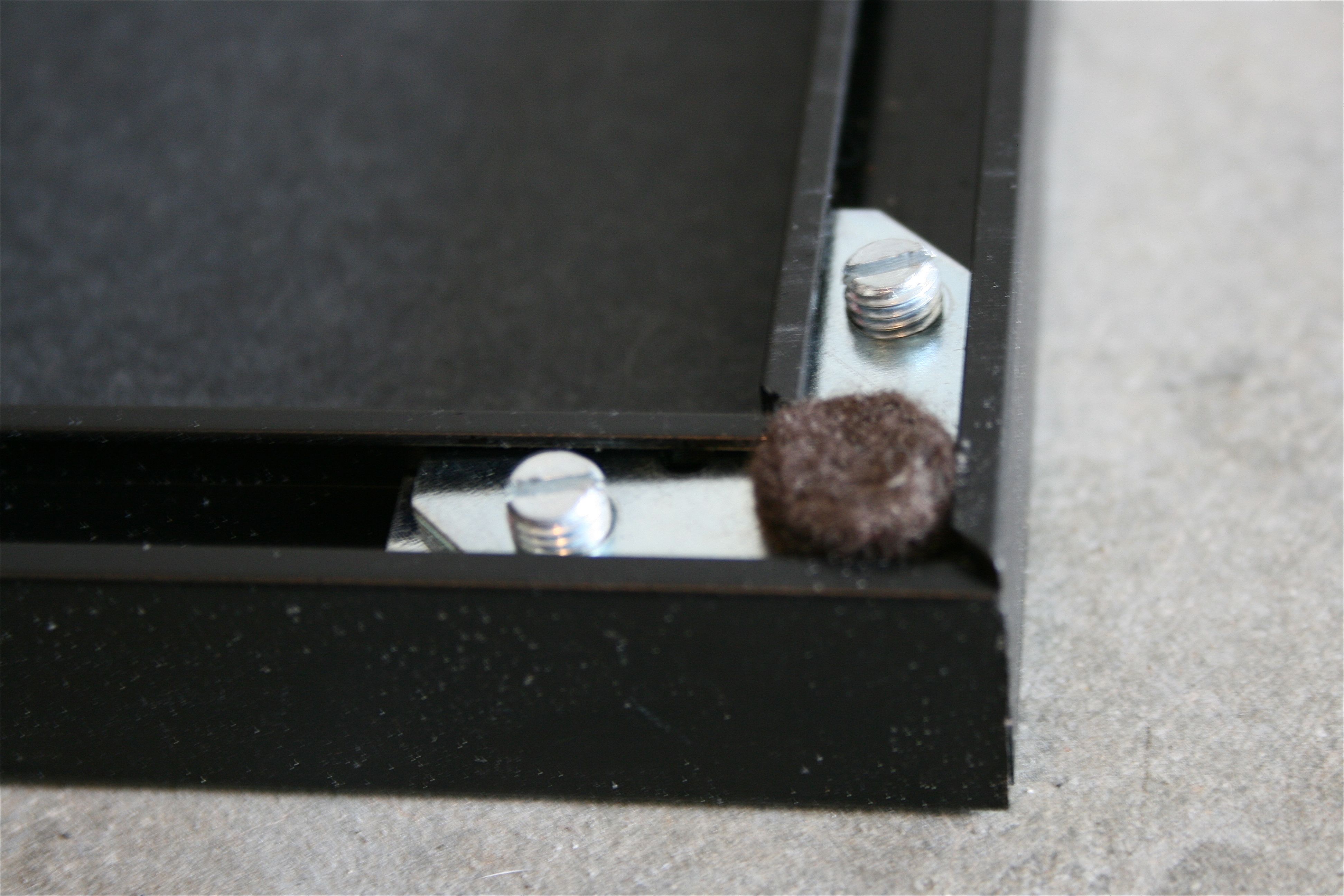 The screws push the two metal pieces apart, adding enough tension to keep the corners of the frame tightly held together. You may be able to see the difference between no-screws-and-loose and screws-in-and-tight in these next two photos: