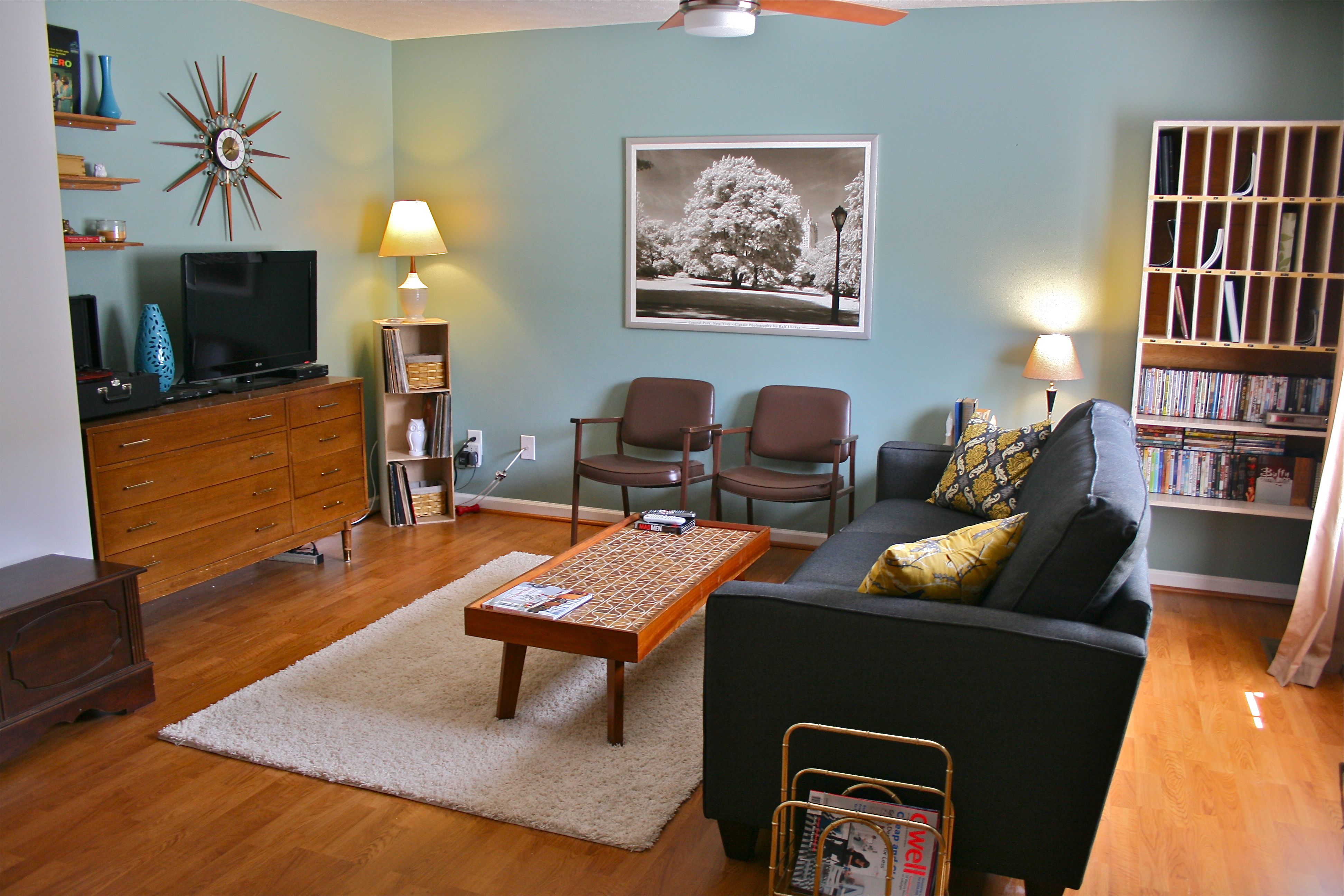 When Uncle Bob was lord of the living room, he seemed a little out of place…An open living room with a window letting streams of light flood in needed something sleeker and smaller – Something that wouldn’t block that amazing light and would let your eye take the room in visually without interruption. I know John probably disagrees with me on this one (we can’t see eye-to-eye on EVERYTHING of course…), but that couch wasn’t the “airy” type.