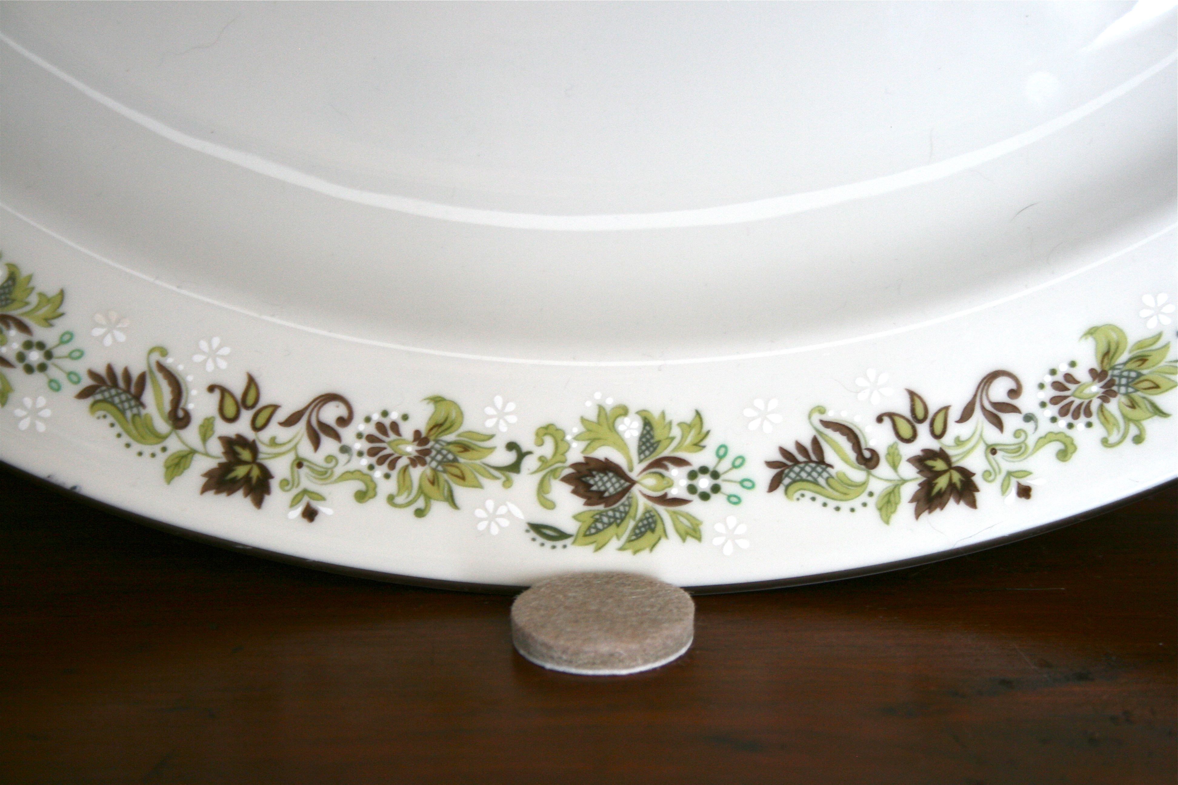 Once I set the sugar bowl and saucers in front of platter it hid the sneaky little felt pad: