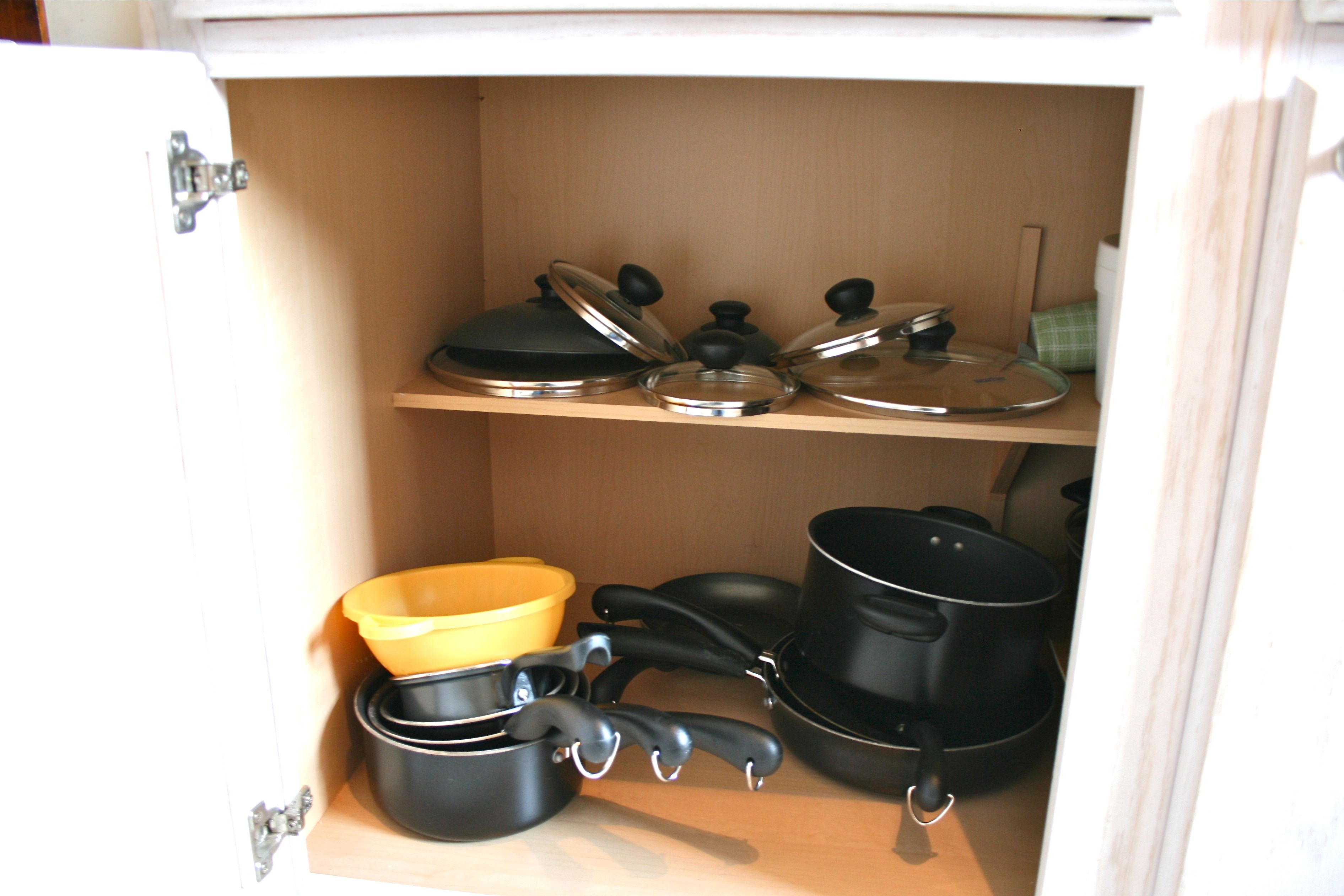 So simple and SO practical!! Now I can’t wait to get those cluttered-looking pots and pans taken care of…Might start researching a hanging system soon just to see what our options are.