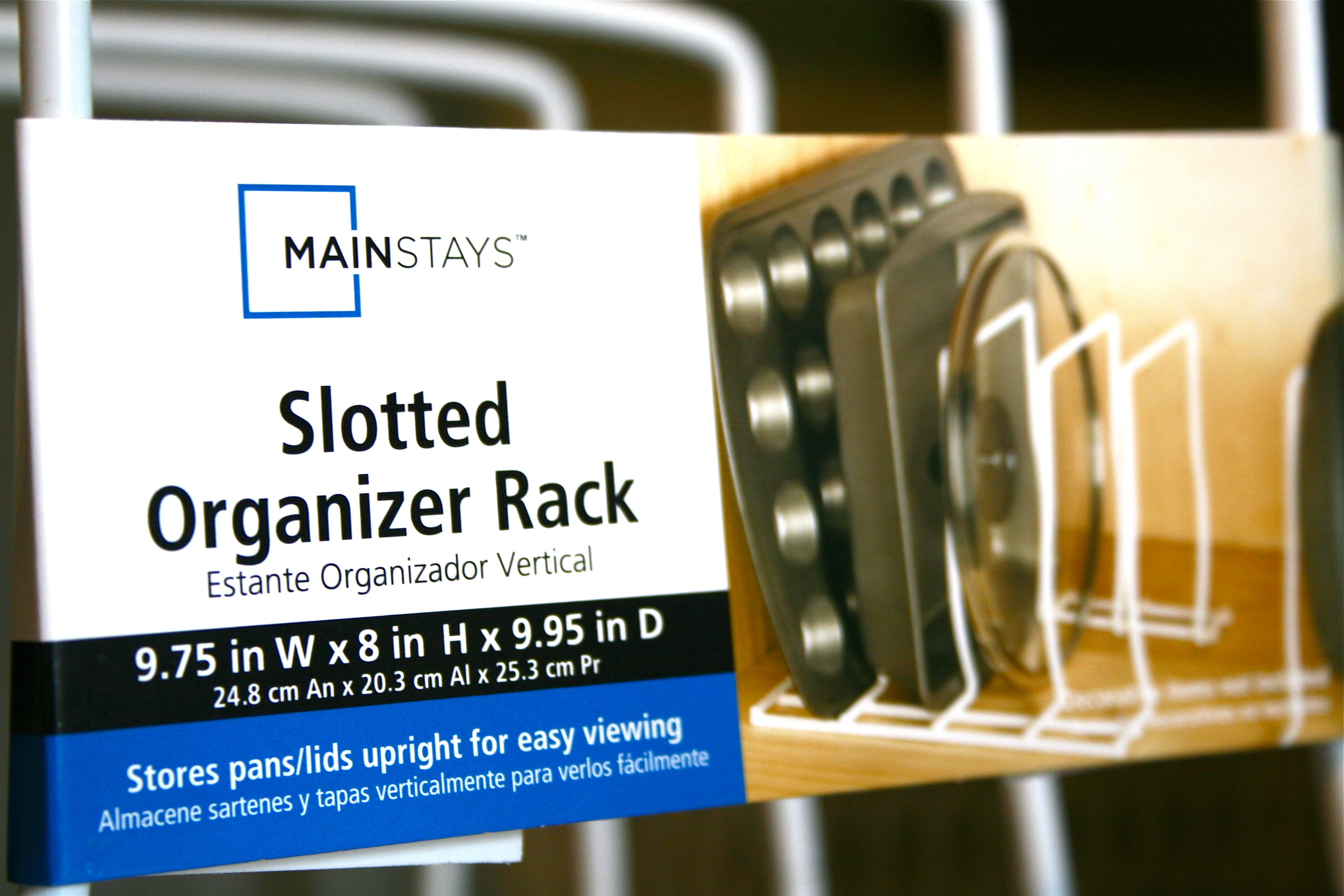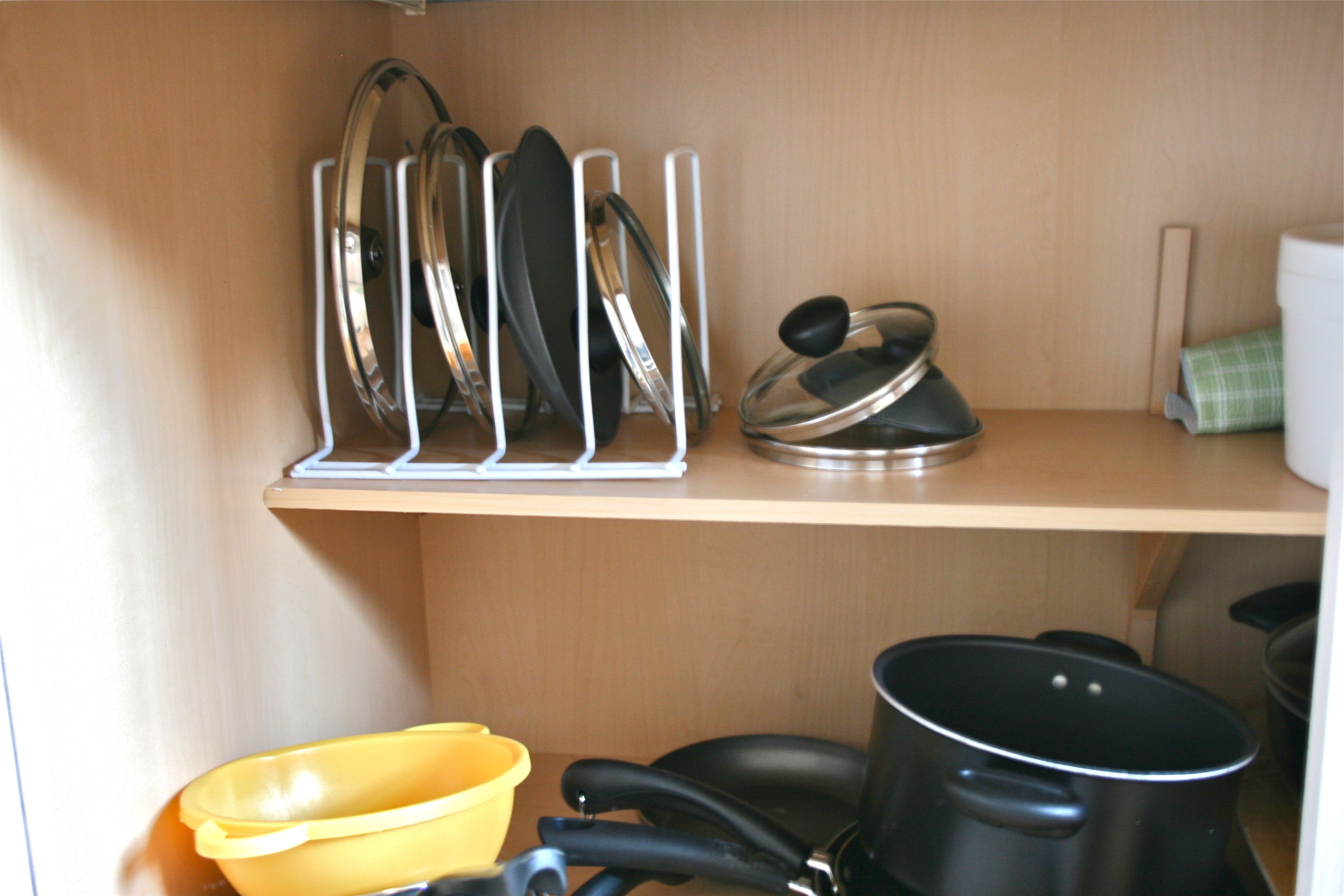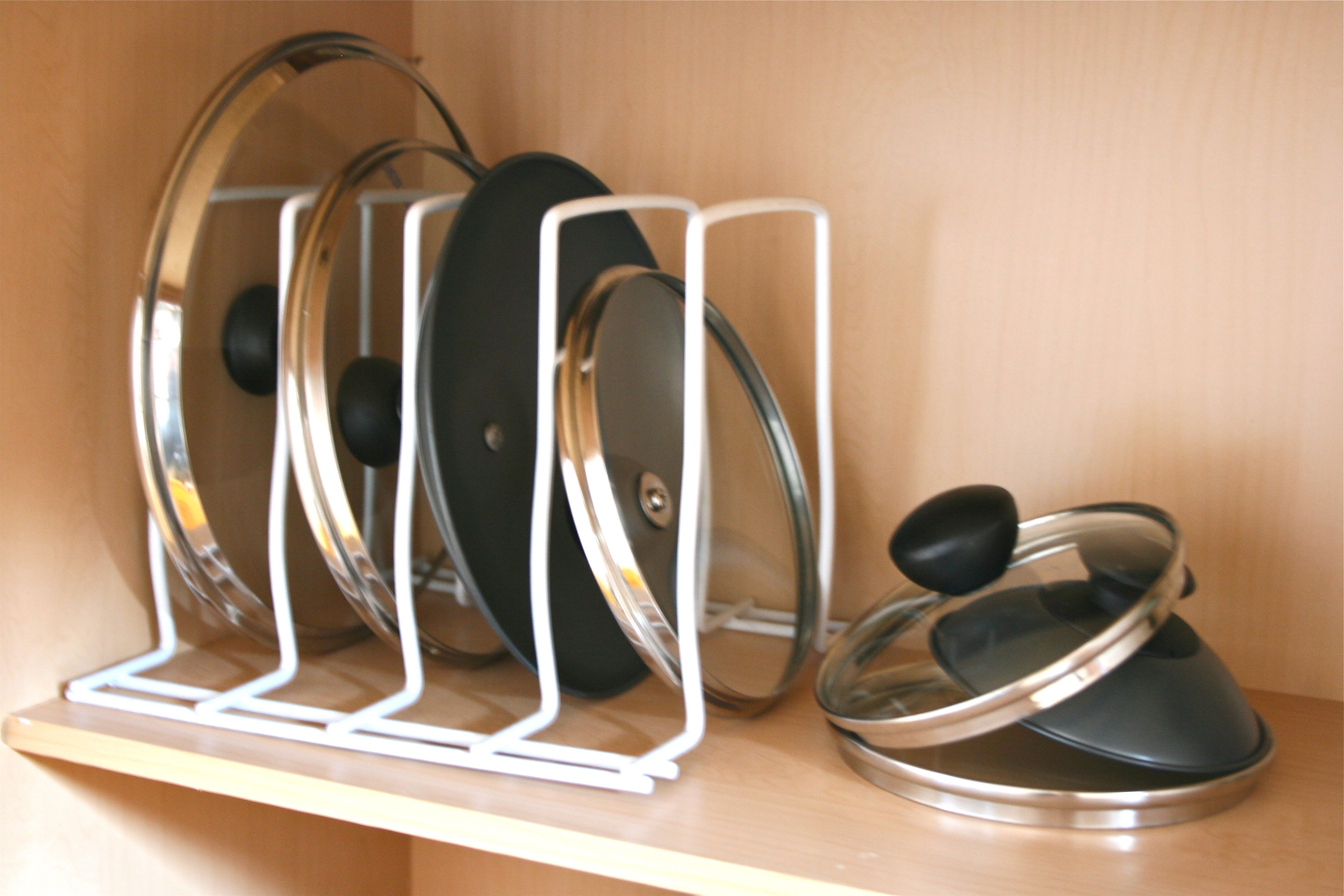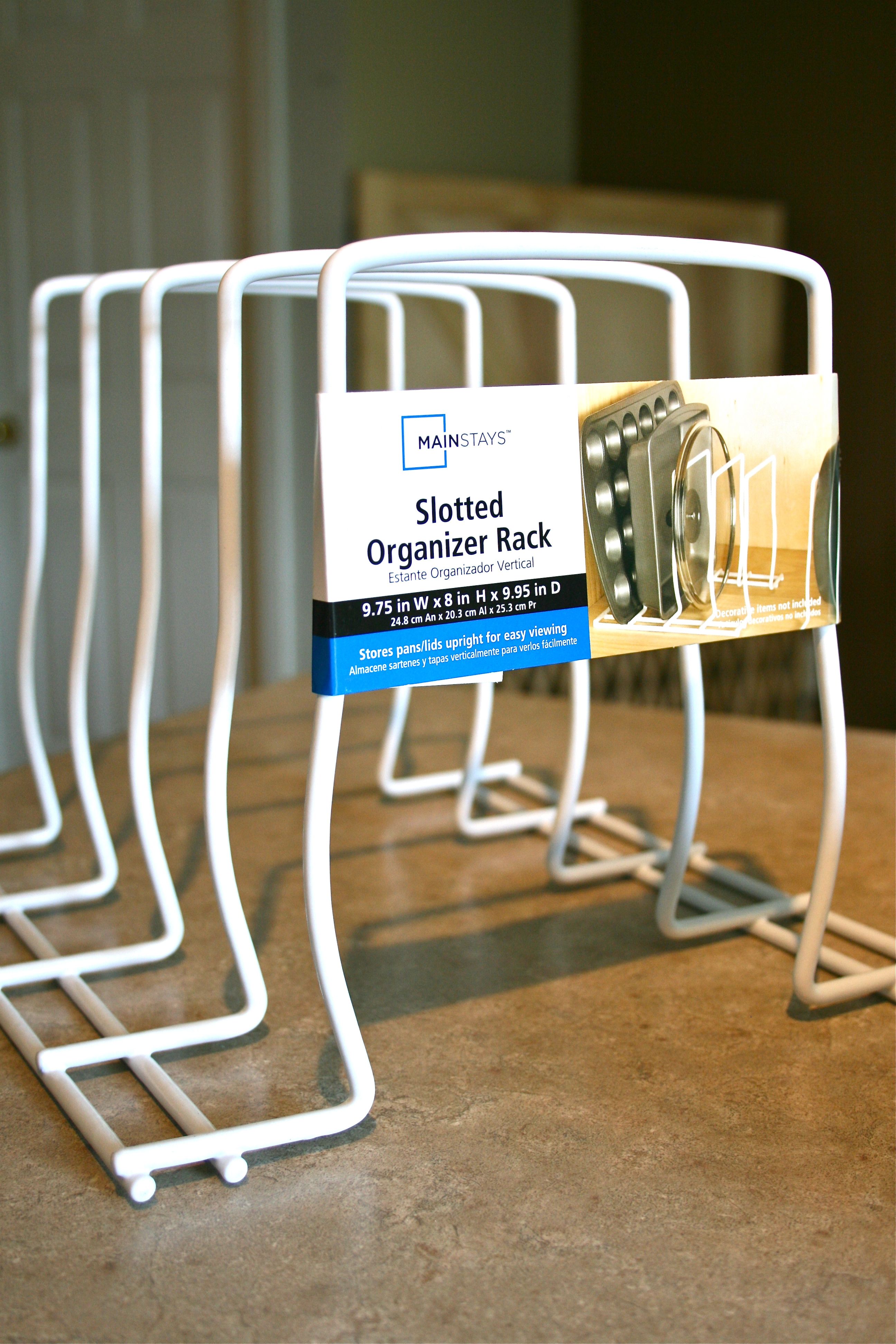 We had unknowingly stumbled upon a GENIUS way to store those pesky little lids (does anyone else feel like they MUST be procreating? There’s no way that we should have 7 pot lids!!!) – And for less then $5, it was an easy decision to toss it into the cart.