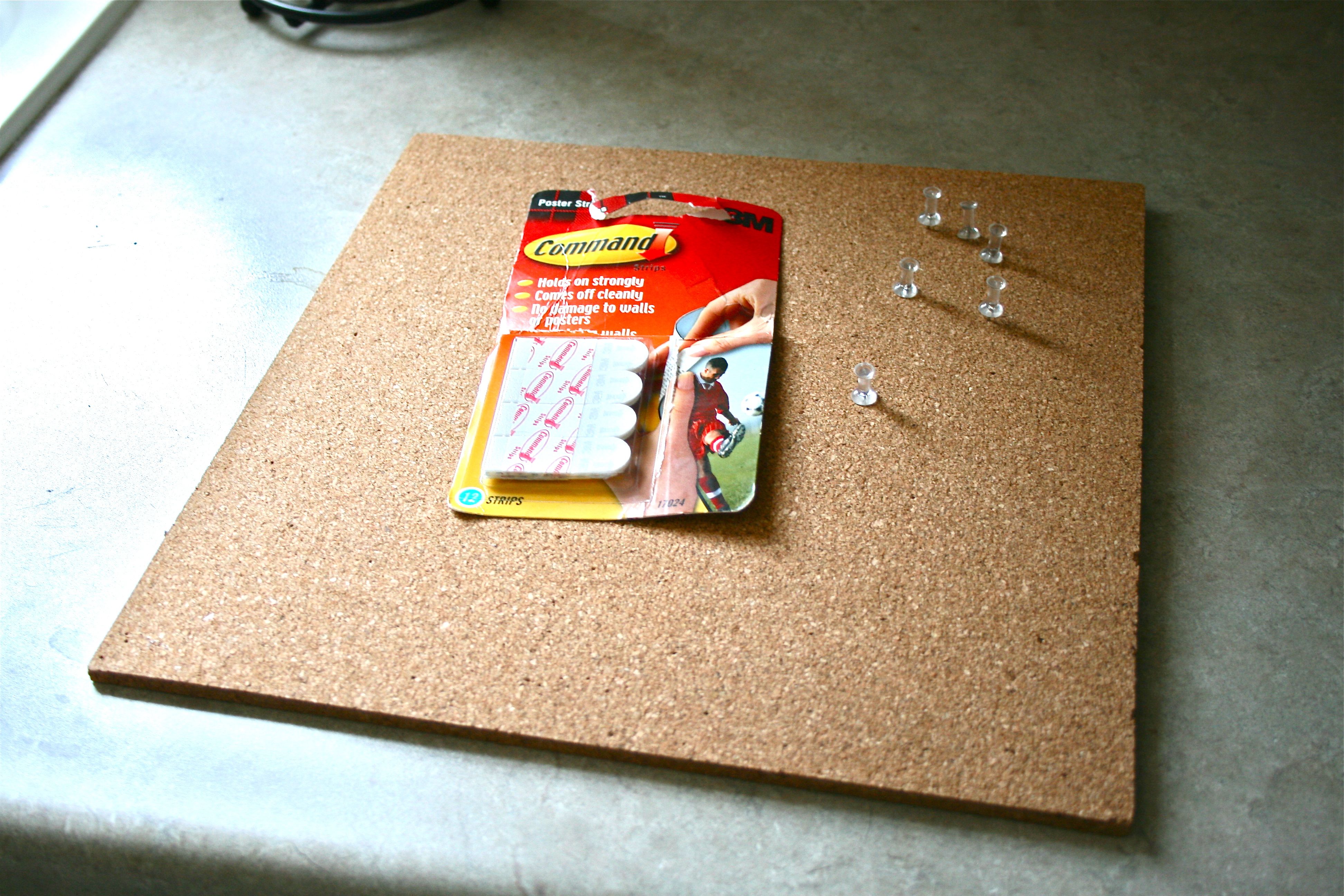 I have had a sheet of cork board in my desk since college, seemingly just WAITING for this moment of inspiration and motivation. So I grabbed that along with my other small amount of supplies and got to work.