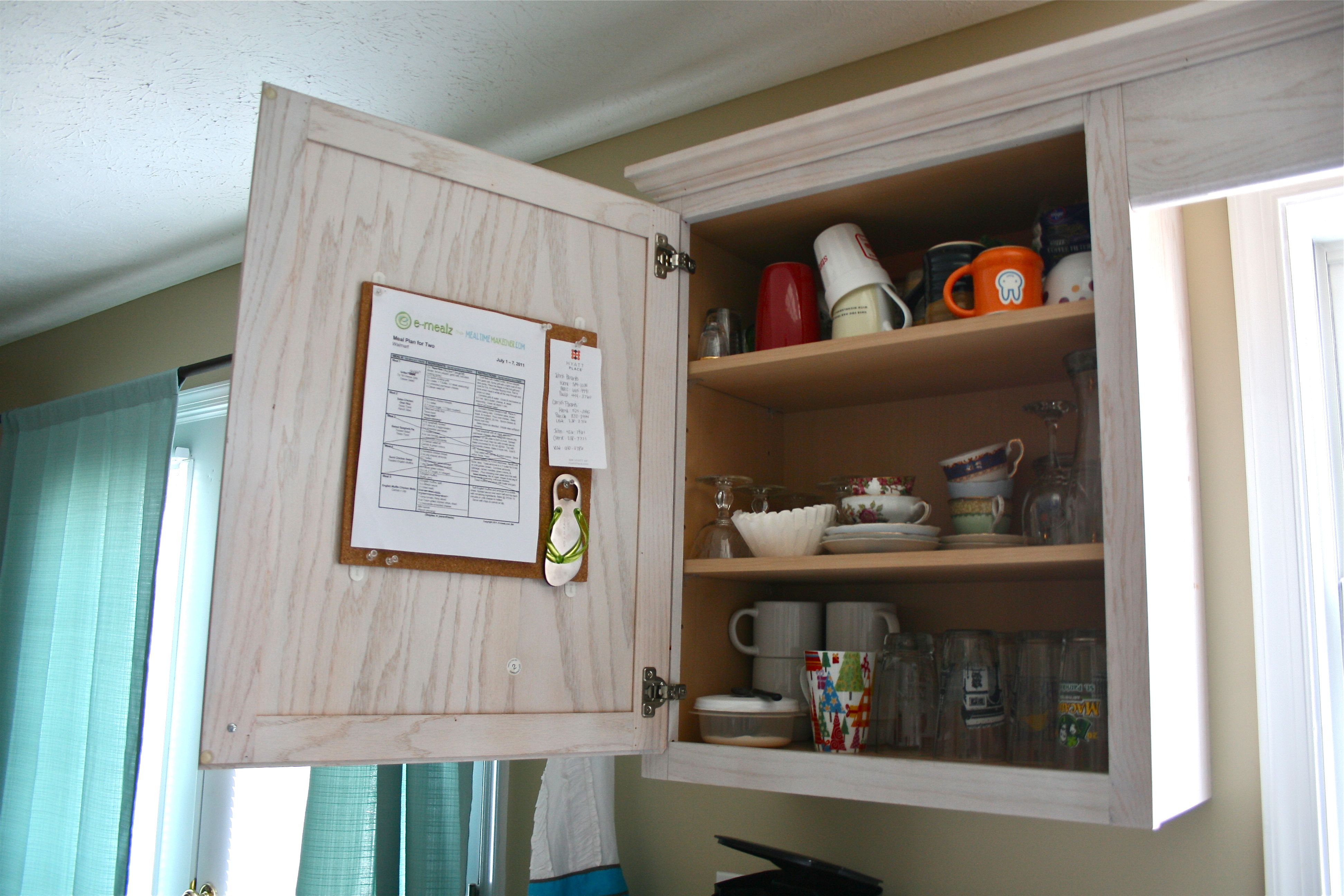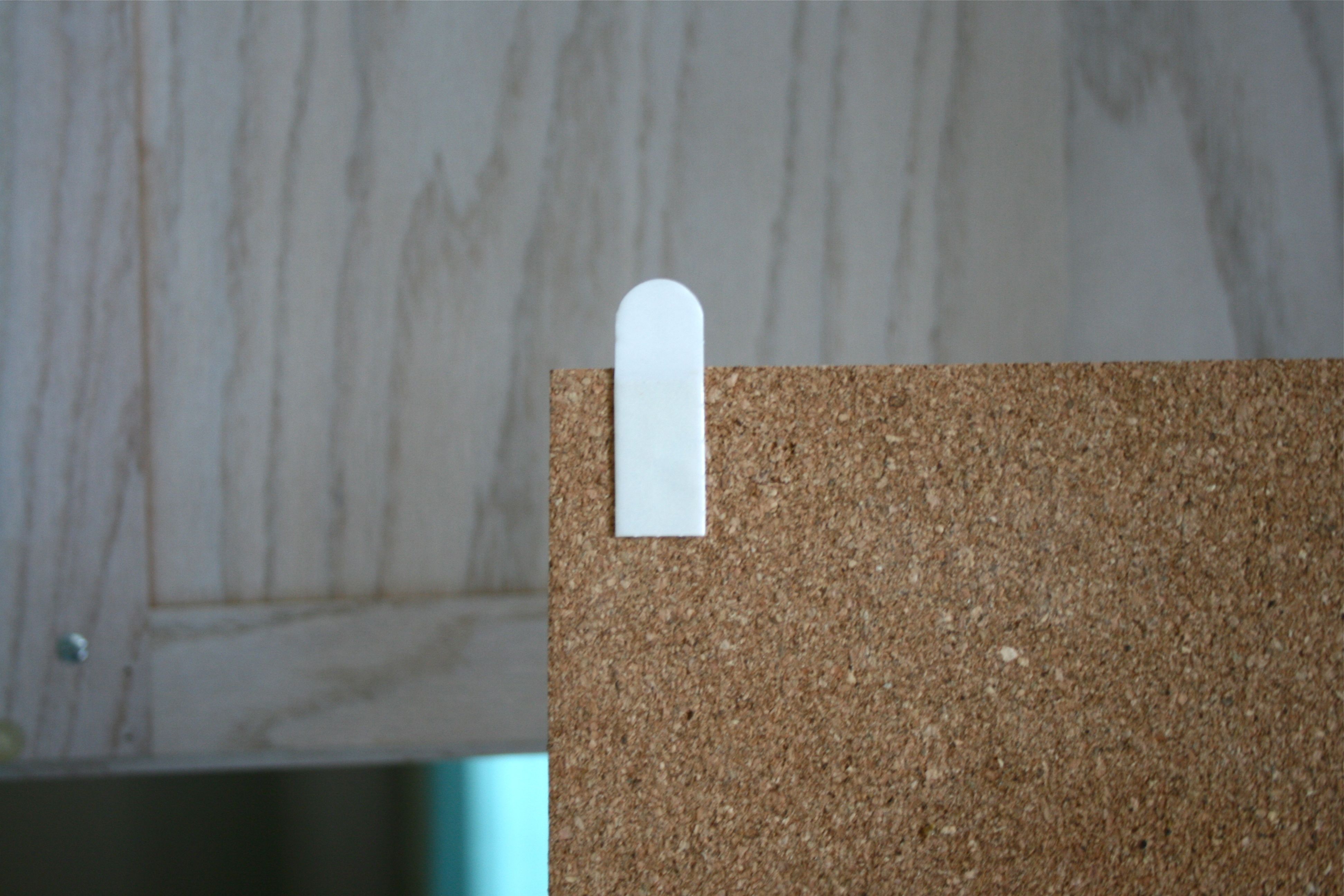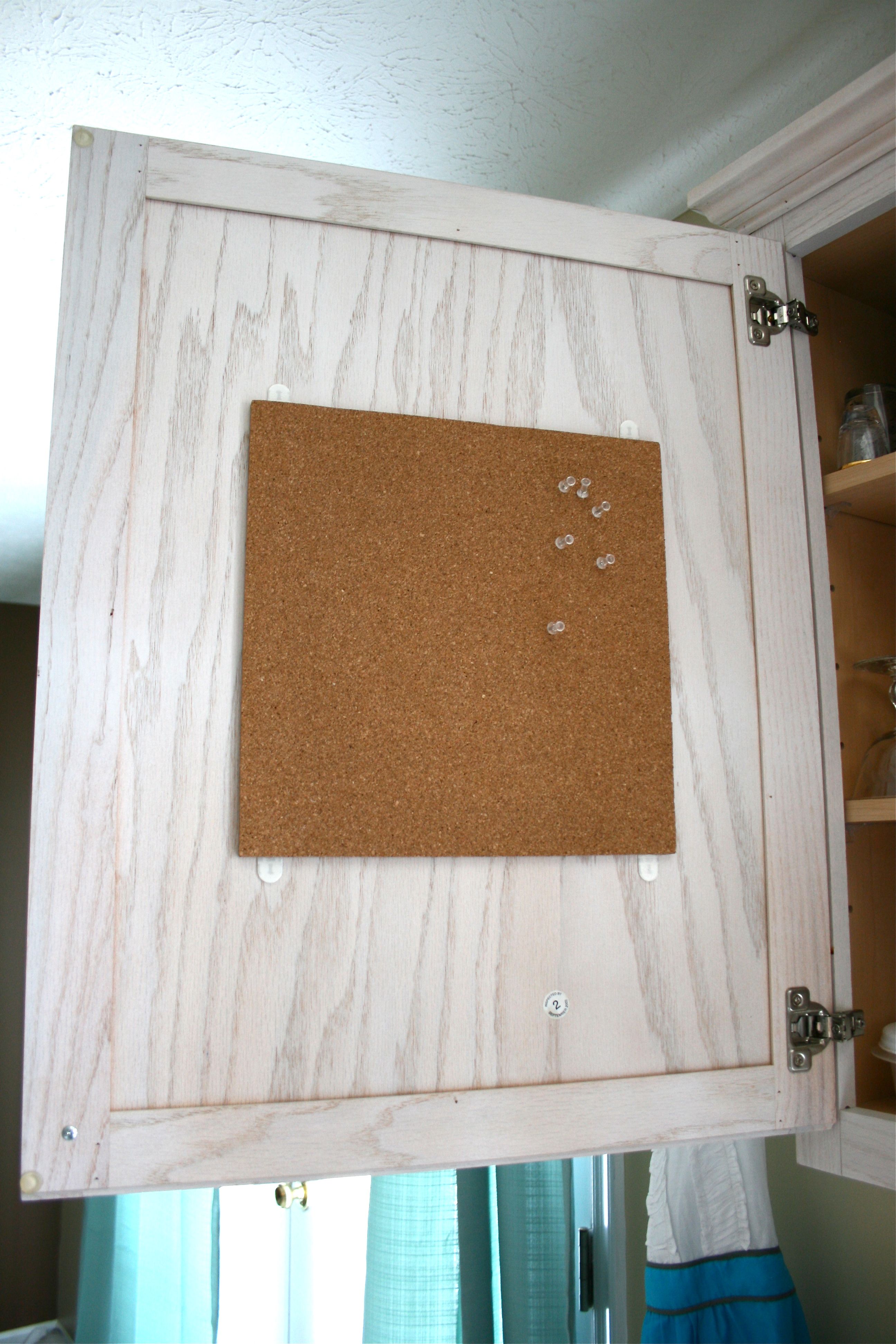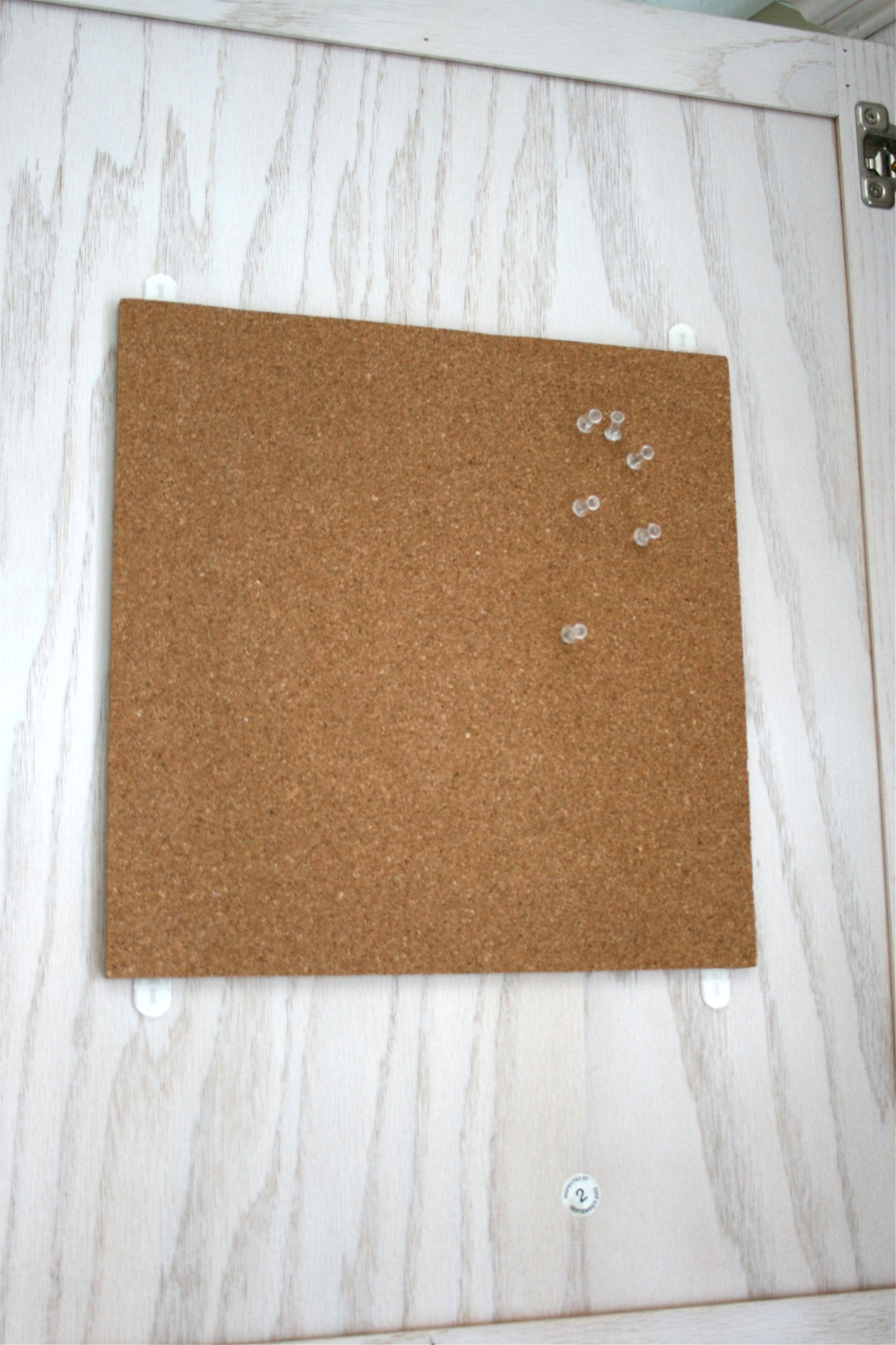 There was actually only one cabinet door that this 12×12 inch cork board would work on (most of the doors are pretty tall and skinny) so we didn’t really have much trouble deciding where to put it – I sort of love when decisions are made for us…