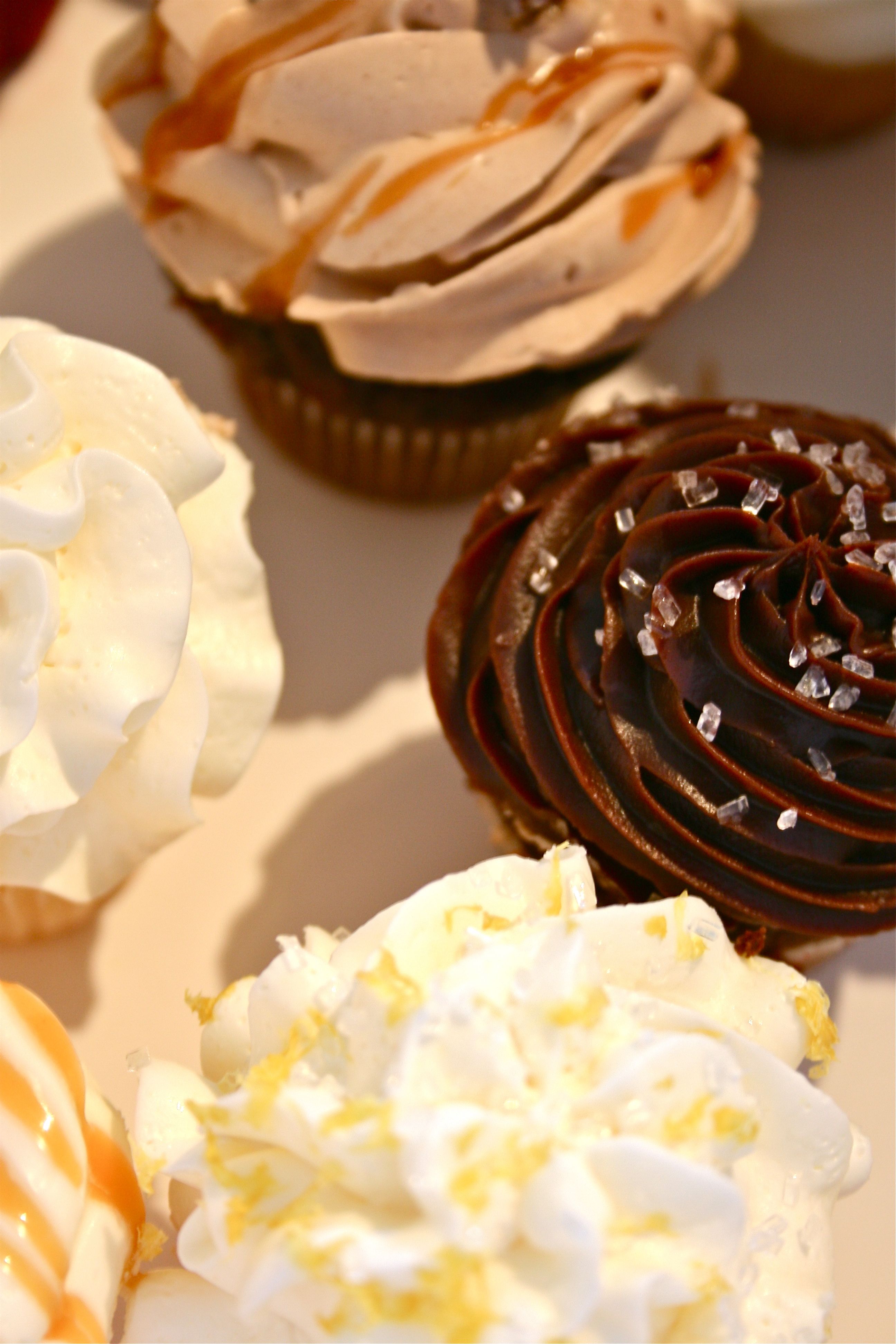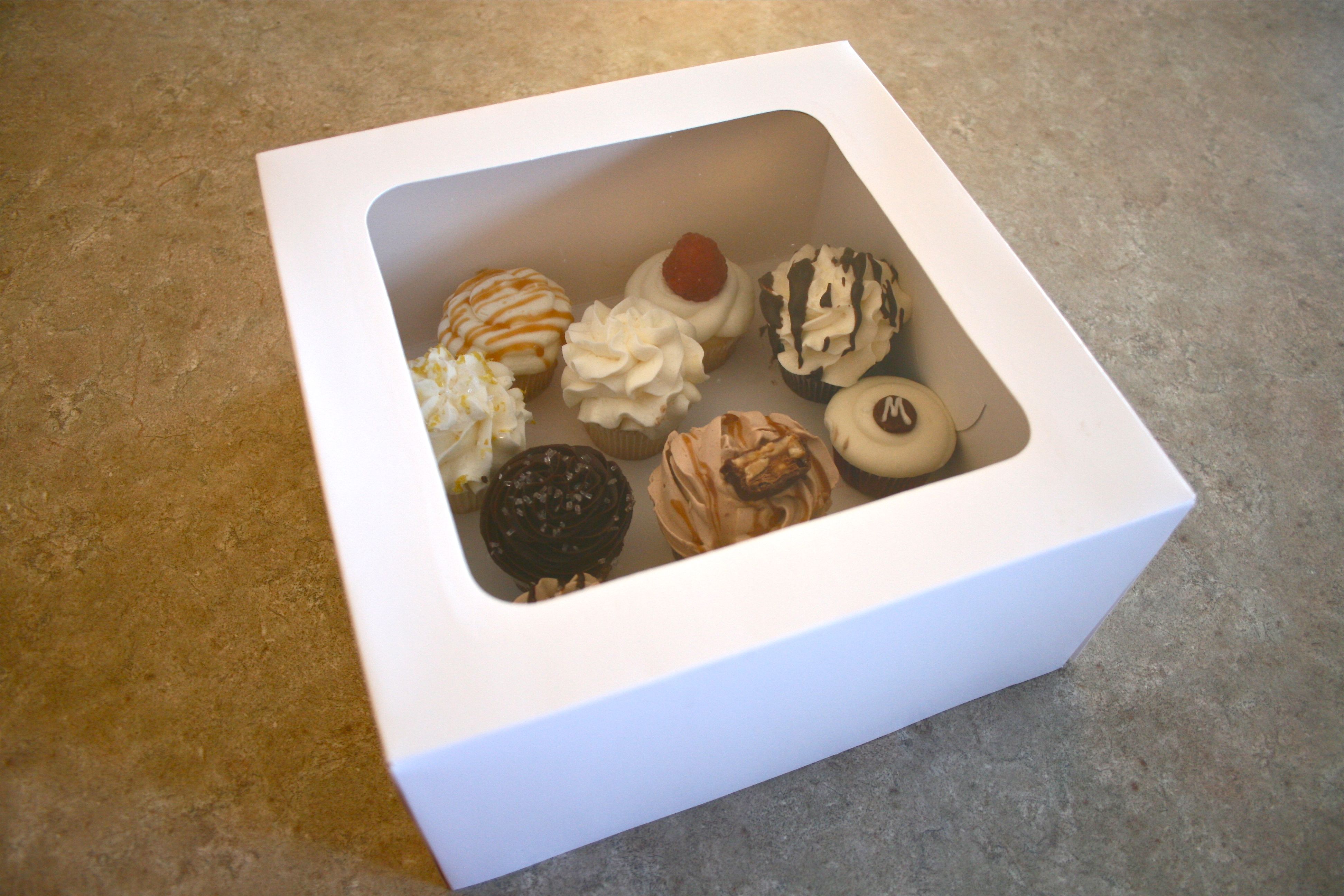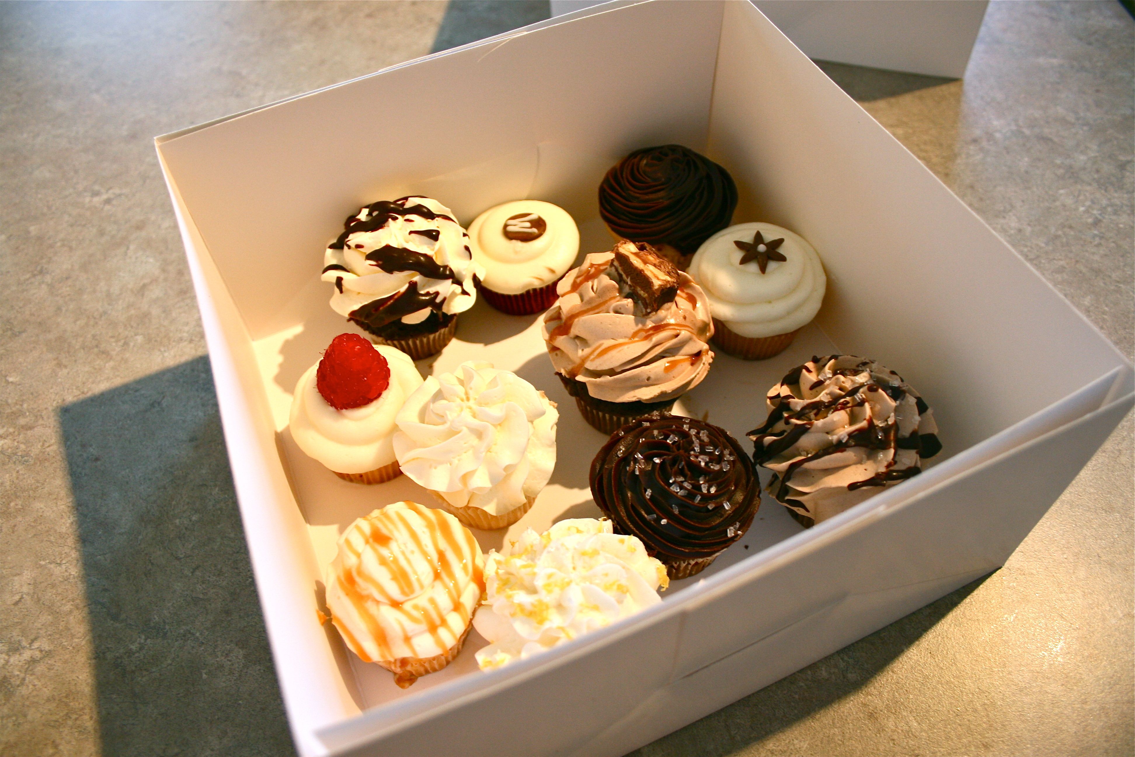 After letting her know that John and I were interested in having her do the cupcakes for us, she sweetly brought over a little white box of mini cupcakes for us to try. We gently lifted the lid to take a peek inside and instantly knew that we had made the right choice (and also that there was no way I was going to break into the dozen cupcakes without a quick photoshoot to capture their GORGEOUS color and decoration!).