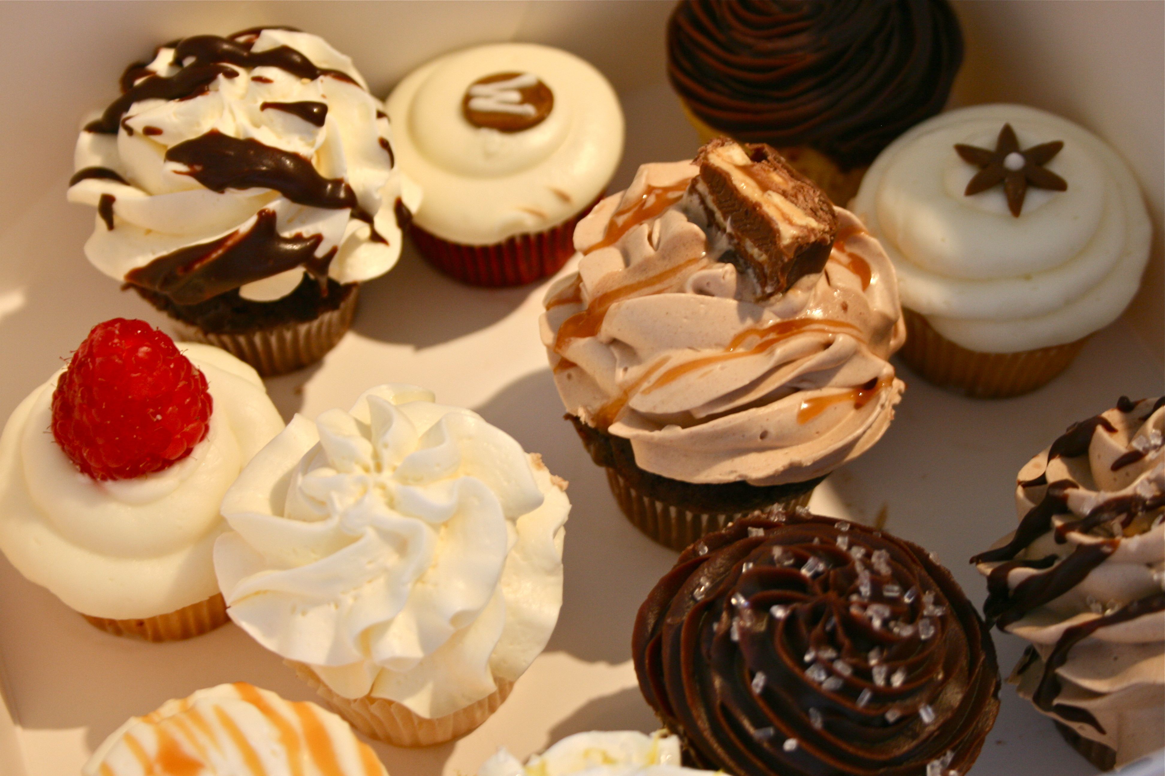 All-in-all, we came up with two favorites – The “Snickers” cupcake was John’s favorite (chocolate cake with peanut butter and caramel filling, topped with chocolate swiss meringue butter cream, drizzled with fresh caramel, and decorated with a mini snickers candy bar) and mine was the “Red Velvet” (red velvet cake with traditional cream cheese frosting topped with a gum paste sugar decoration).