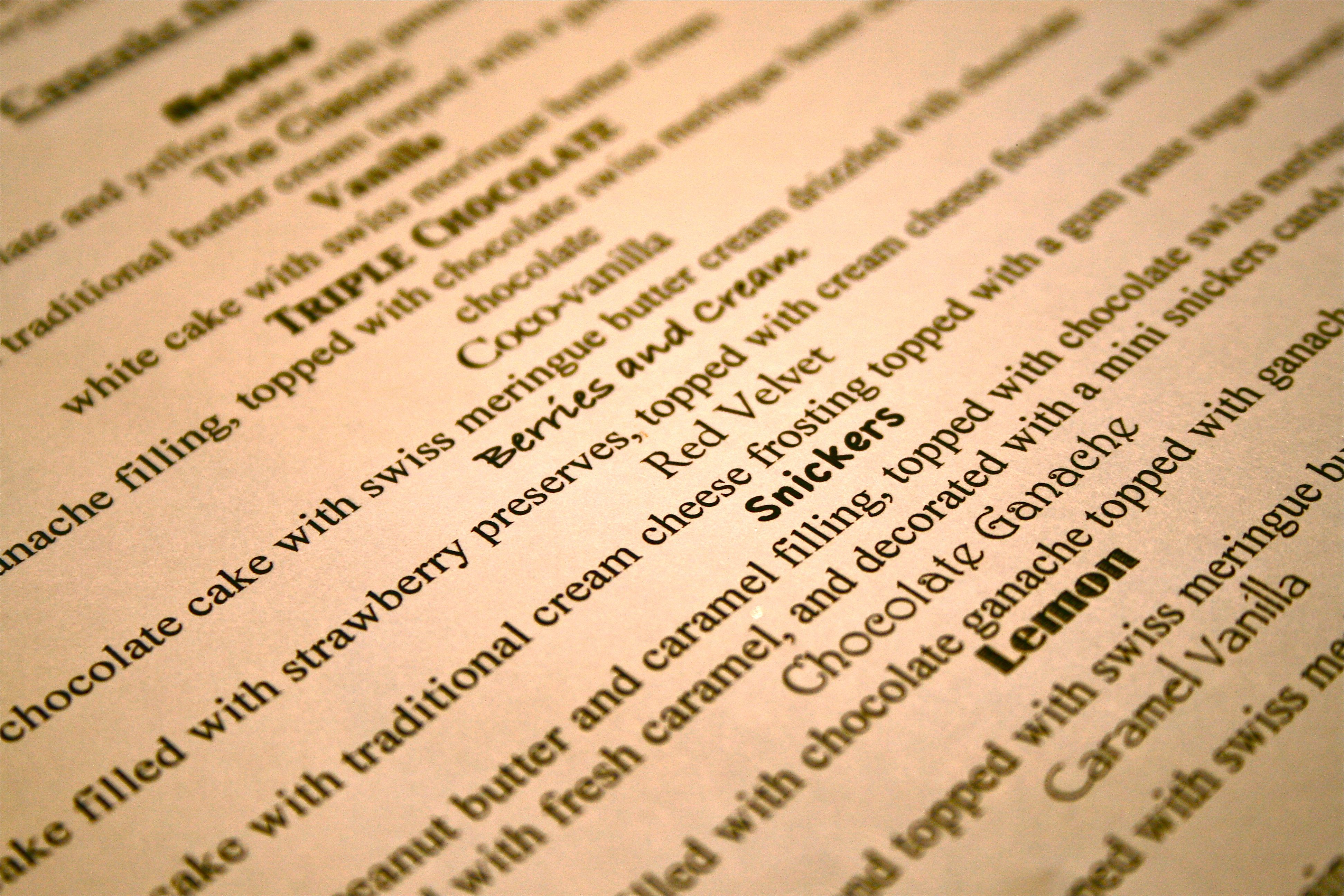 Next is the “Berries and Cream” – White cake filled with strawberry preserves, topped with cream cheese frosting and a fresh berry. I thought this one was super unique! My little note to the side of the sheet of paper she gave us literally says “Yummmm”