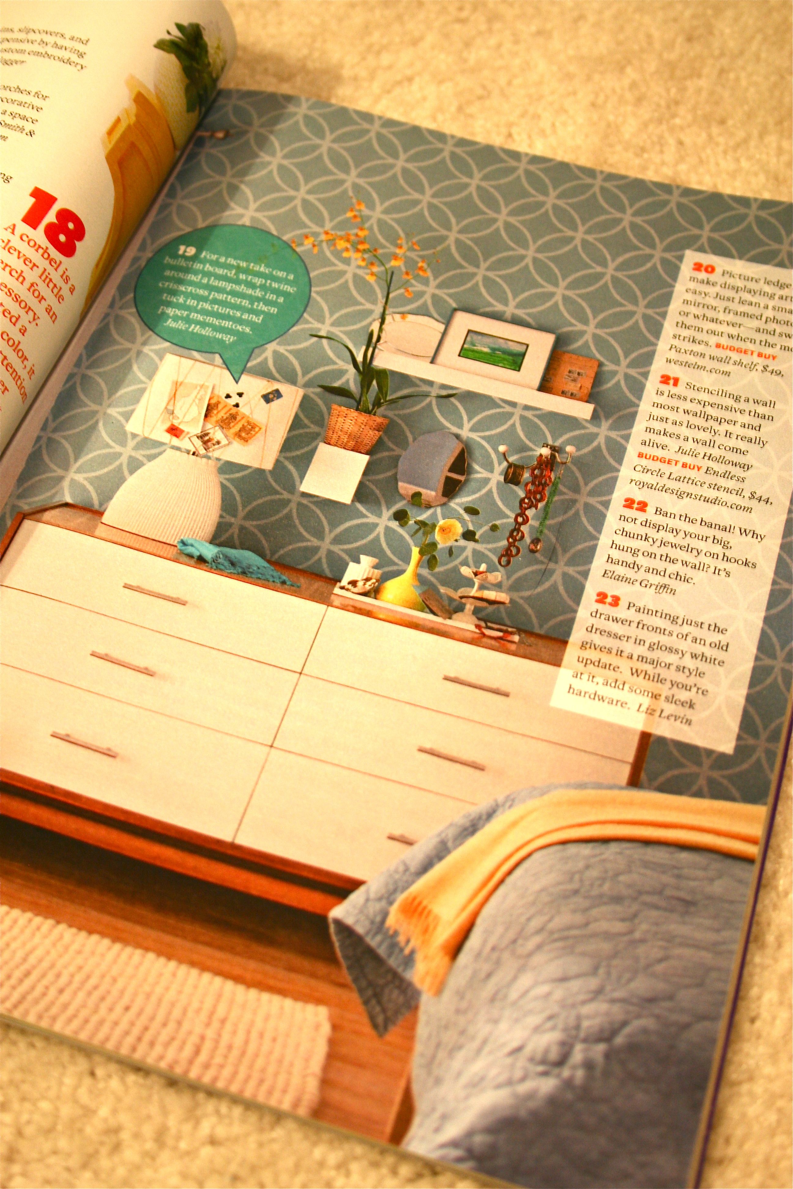 So in light of creating some new features for our blog (like the new “Weekly Pinspirations”), I thought it would be great motivation to “tag” and share the projects and articles that caught my eye with you all each month! I know I’m missing out on a bunch of fun projects by letting my reading go by the wayside, so now we can BOTH get the full effect of these inspiring publications!