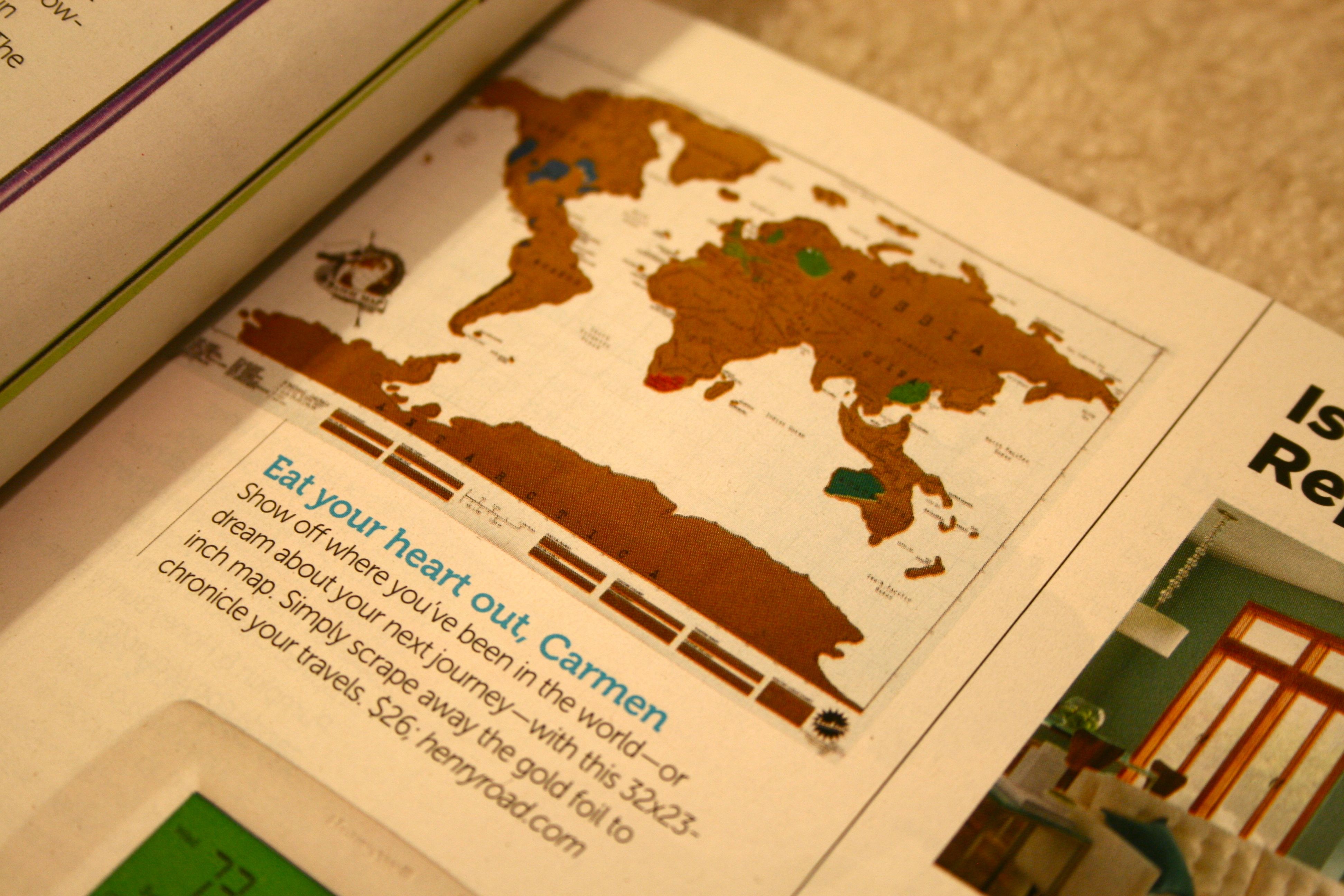 Also, I got a kick out of seeing this product pop up in the magazine since we just recently posted about it!!! Apparently my friend, Savannah, was on top of the trends when she bought this exact scratchable map for her husband as a gift to commemorate their travels together!