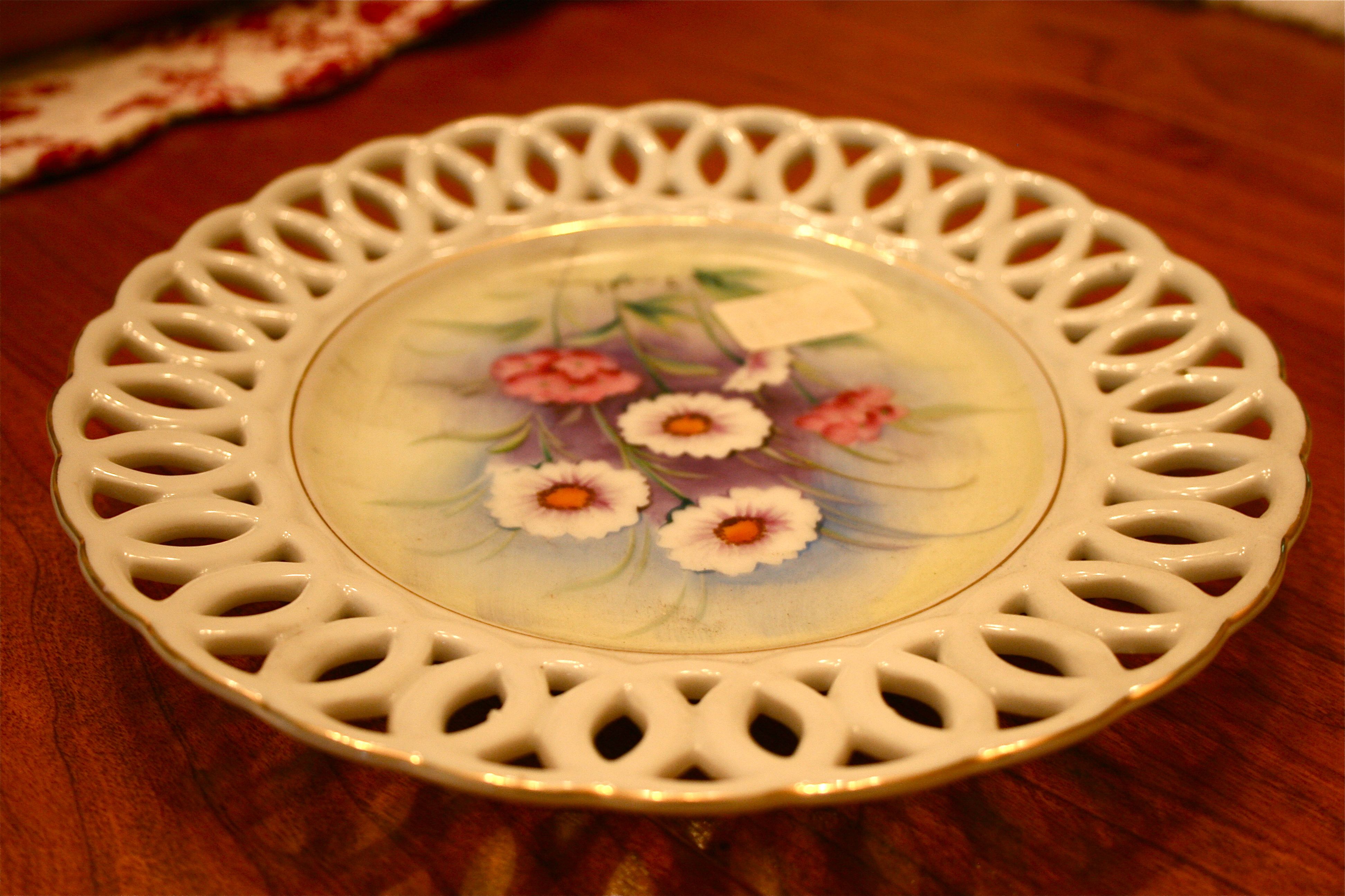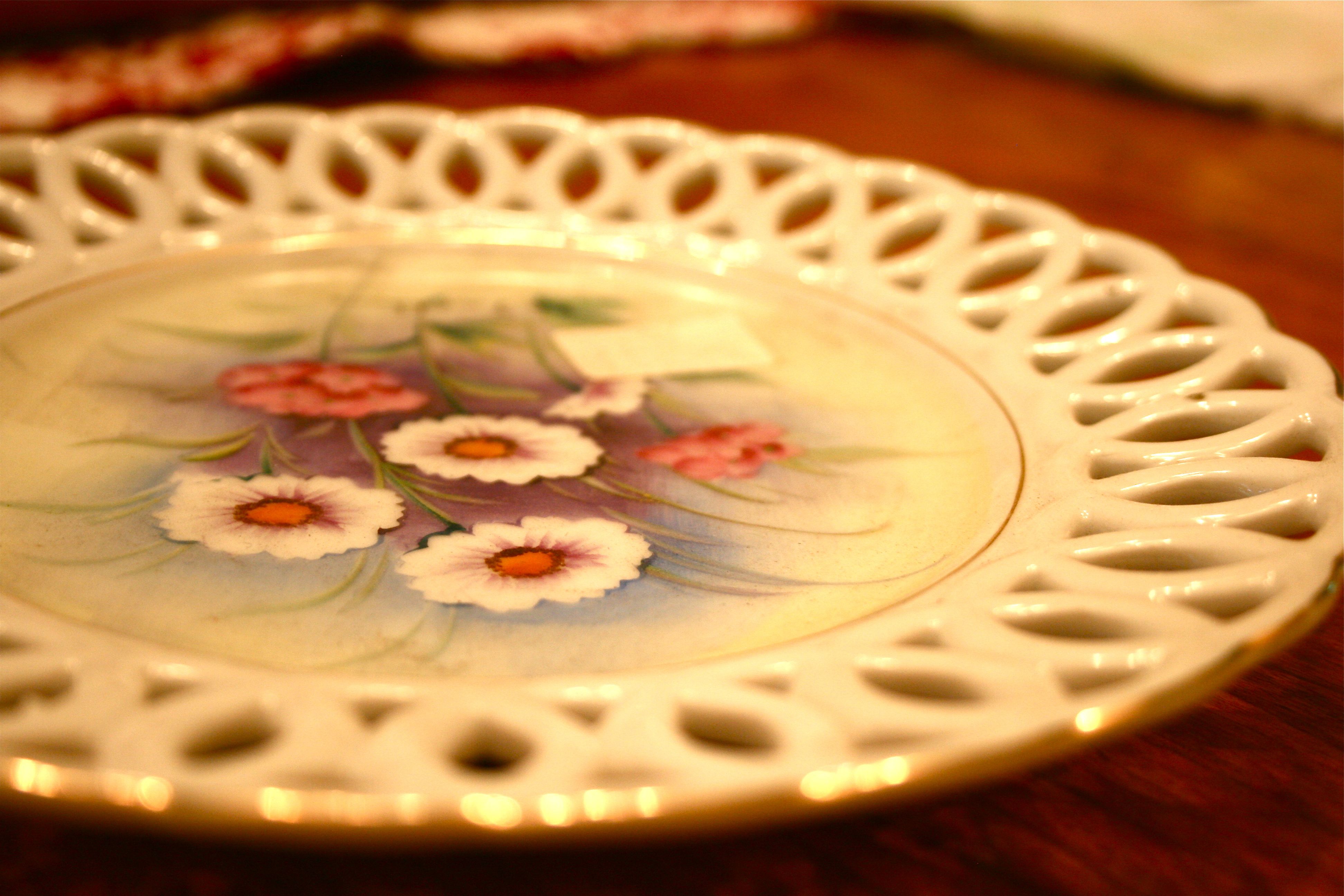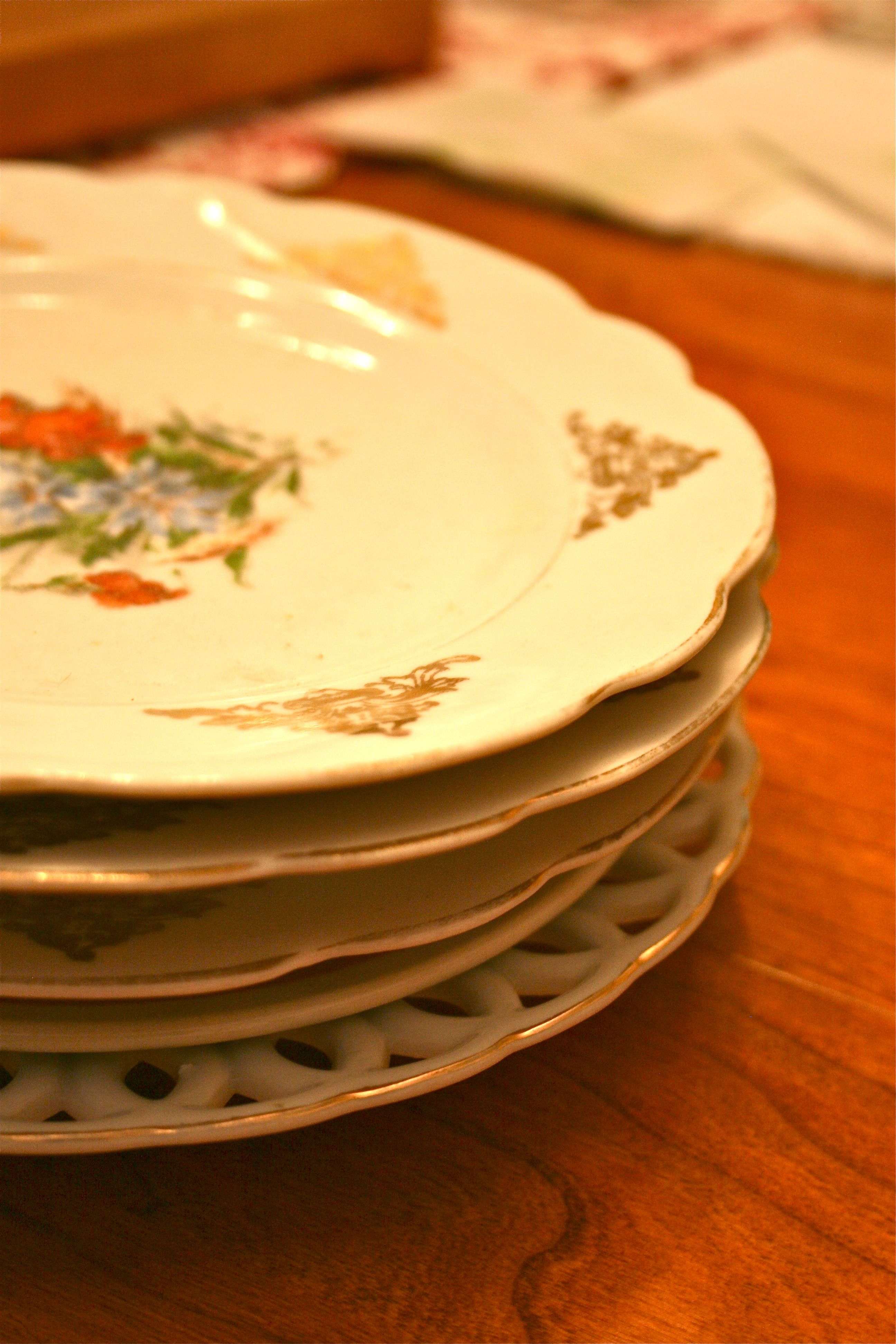 So my mom and I have been scouring our go-to second-hand shops in town to find as many of these delicate plates as we can get our hands on. So far I think we are up to about 40 plates…And the cost? It all evens out to about $1 a plate, sometimes less than that! For instance, our first stop was to a store downtown where we got 28 plates for $21 – Not bad at all!