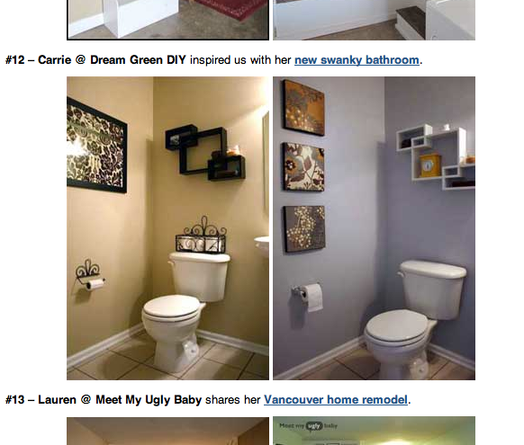 But the competition just got a little more heated, because now readers are able to vote for their favorite “Before and After” project! The winner gets an additional $150 gift certificate and of course the knowledge that their hard work was appreciated by the cyber space of home redo junkies like ourselves 🙂 Vote for #12!!!