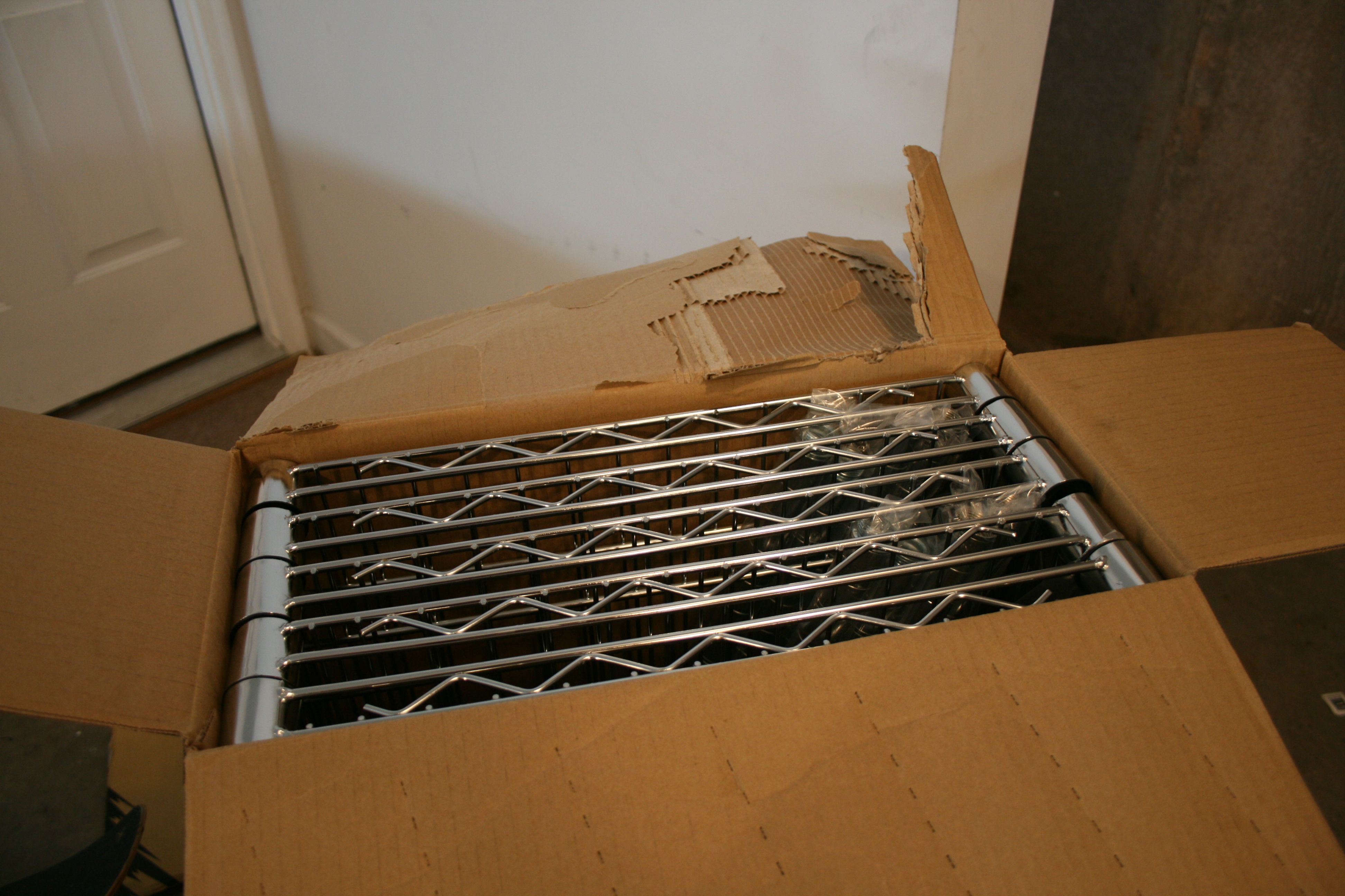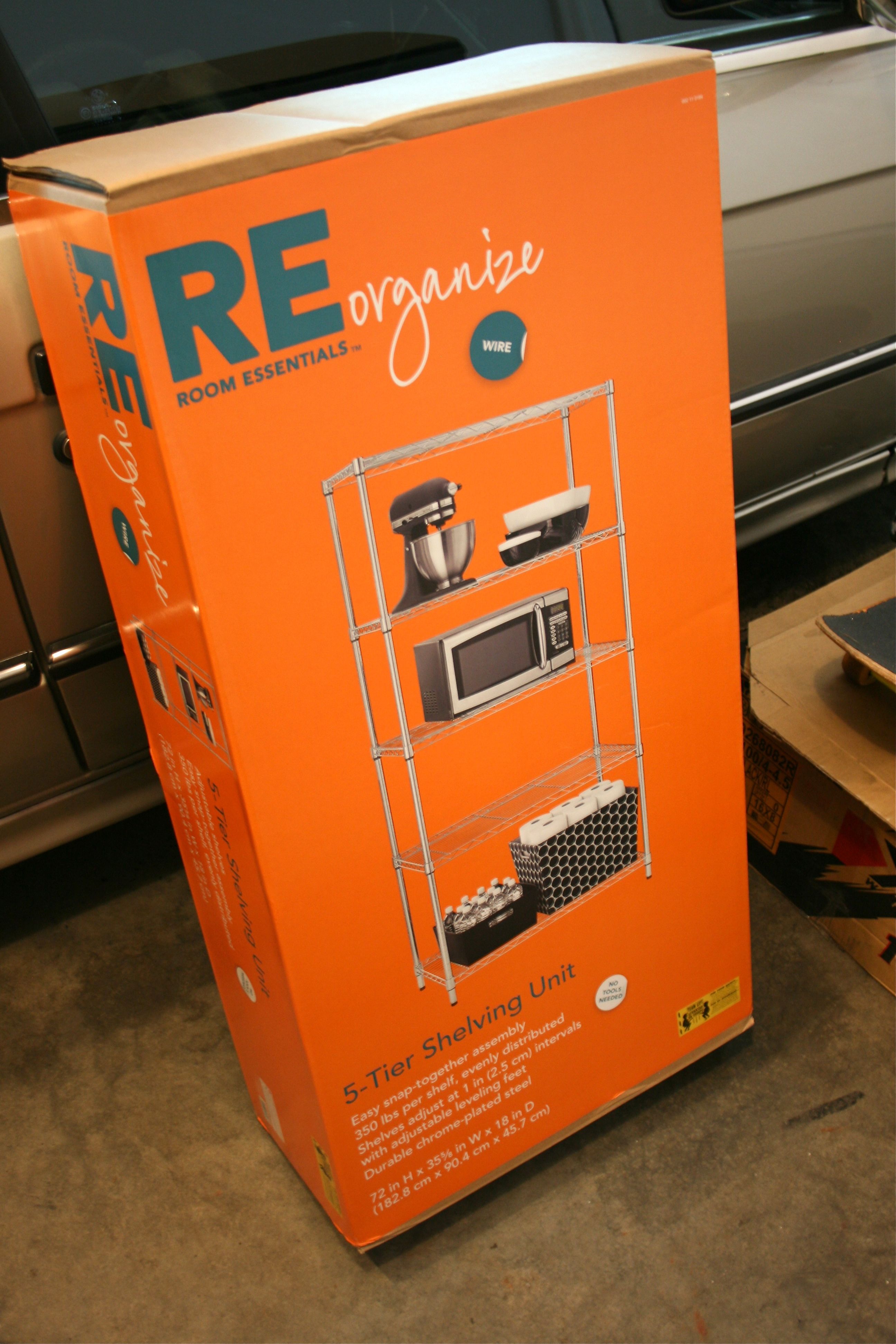 The store recently had a sale on their industrial shelving units so we snagged one for around $30, hoping it would solve all of our problems. Luckily, it did!!