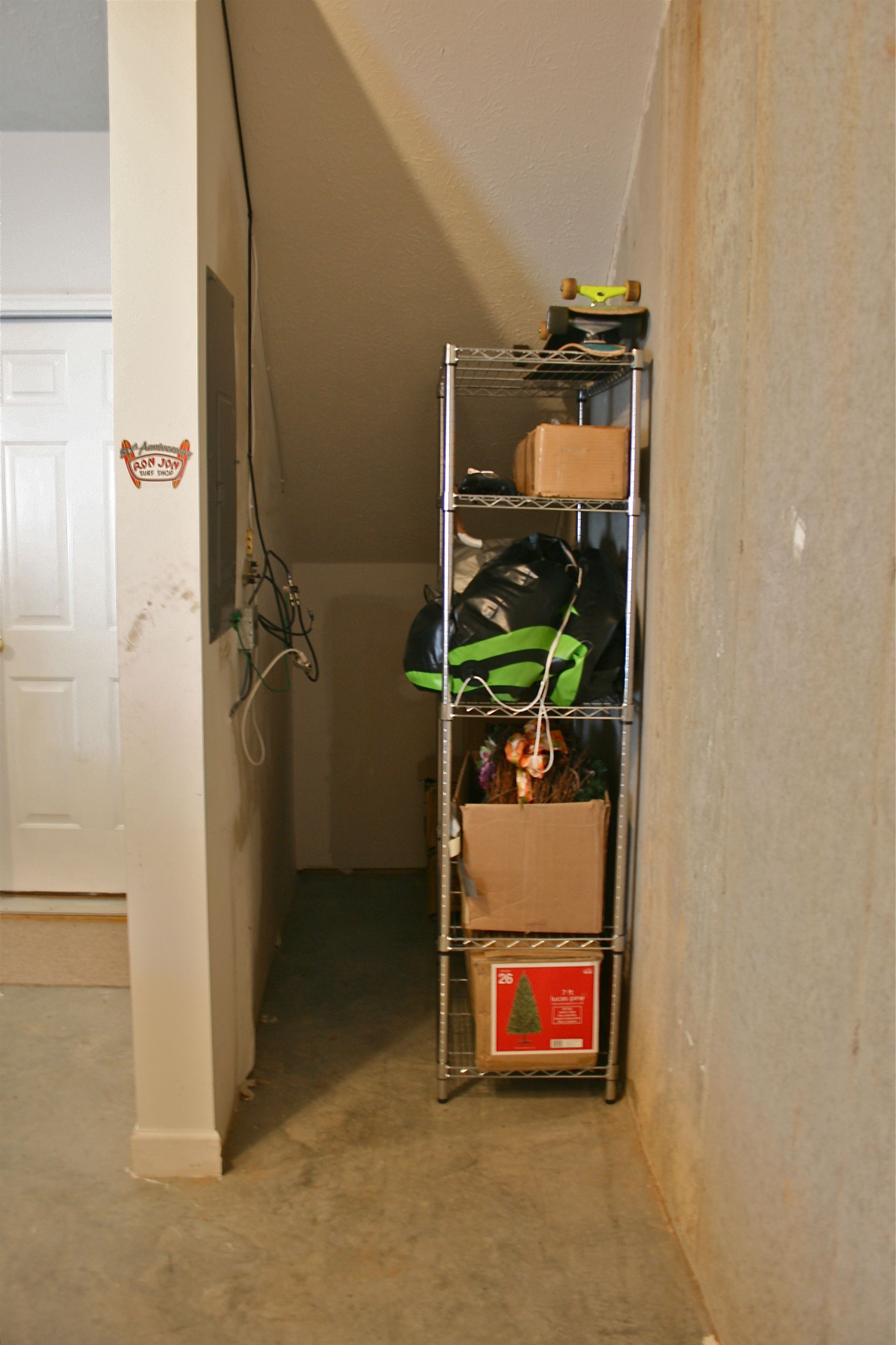 This under-the-staircase nook is pretty much the only place for me to put the things that don’t need to be out year-round – Looks pretty bad, huh…?