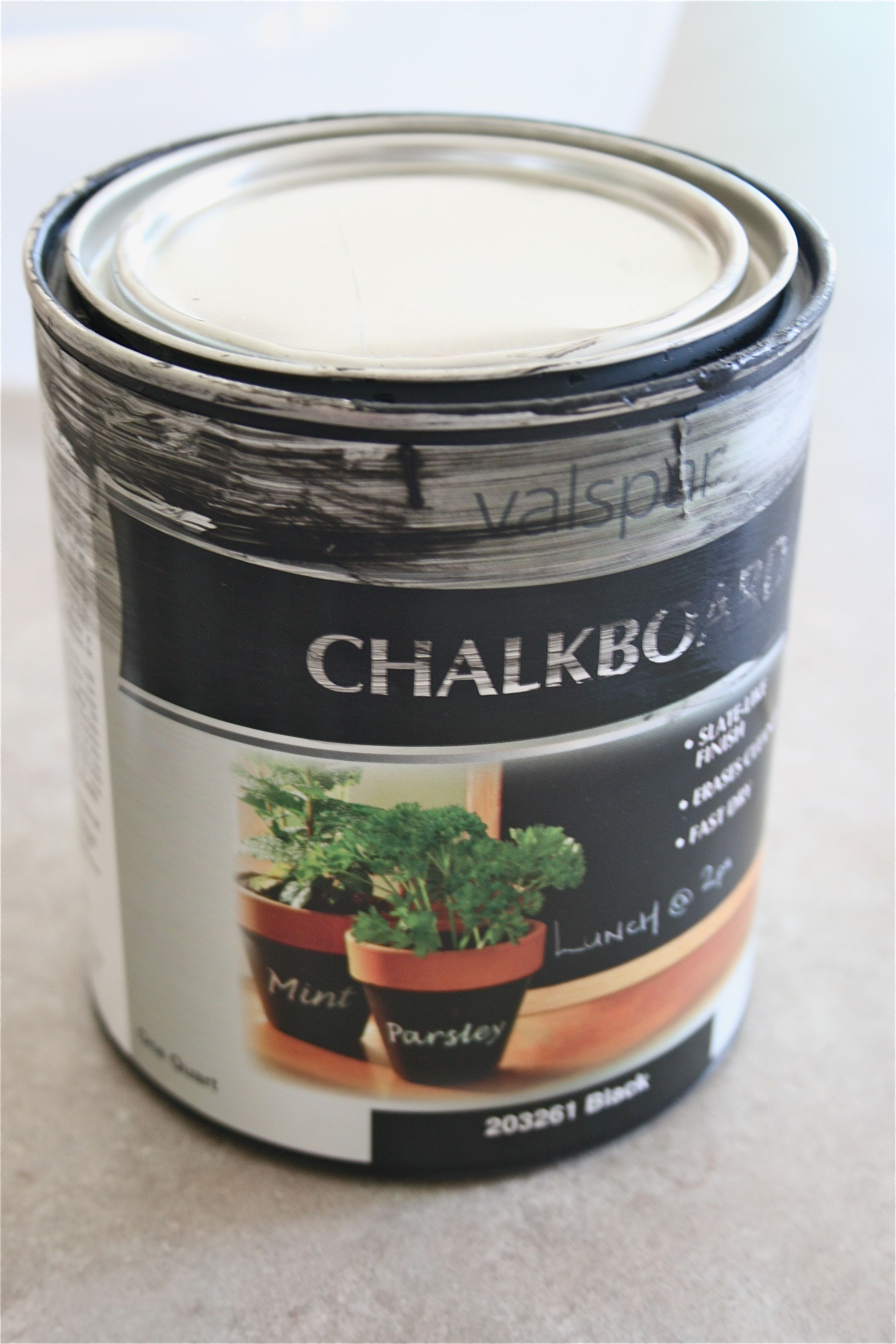 Here’s our trusty old can of chalkboard paint:
