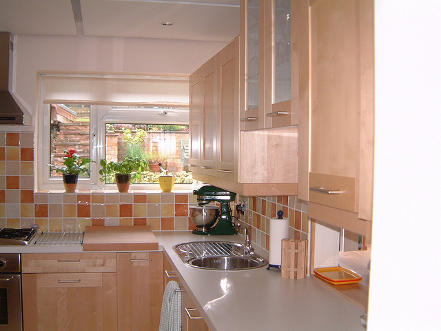If you are just tuning in, we are in the process of gearing up for a pretty huge kitchen renovation. We have decided to reuse the kitchen cabinets, which are in perfect shape, but will paint them to give them a new life. Right now they are a sort of peachy color that clashes badly with the beige walls…We’ve already chosen the new paint color and purchased our hardware (see them pointed out in the photo below), so we are on track to get this project started. As I mentioned in this post last month, we just need to muster up the courage to get it started – The thought of painting those cabinets ourselves is proving to be a very daunting idea and we just keep putting it off.