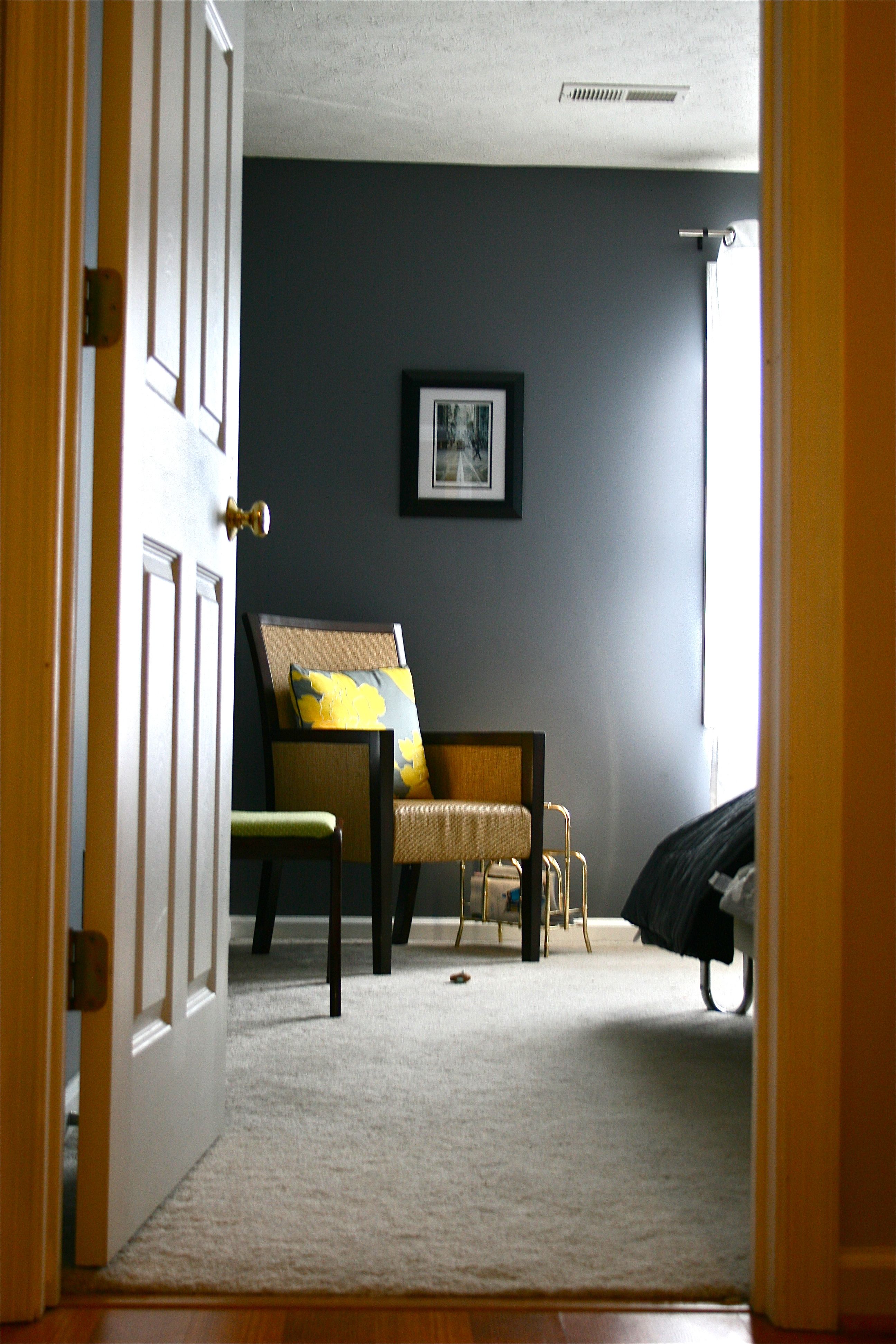 But now, here’s a new photo from the same perspective – We switched the bed with a little seating area I had set up alongside the bed.