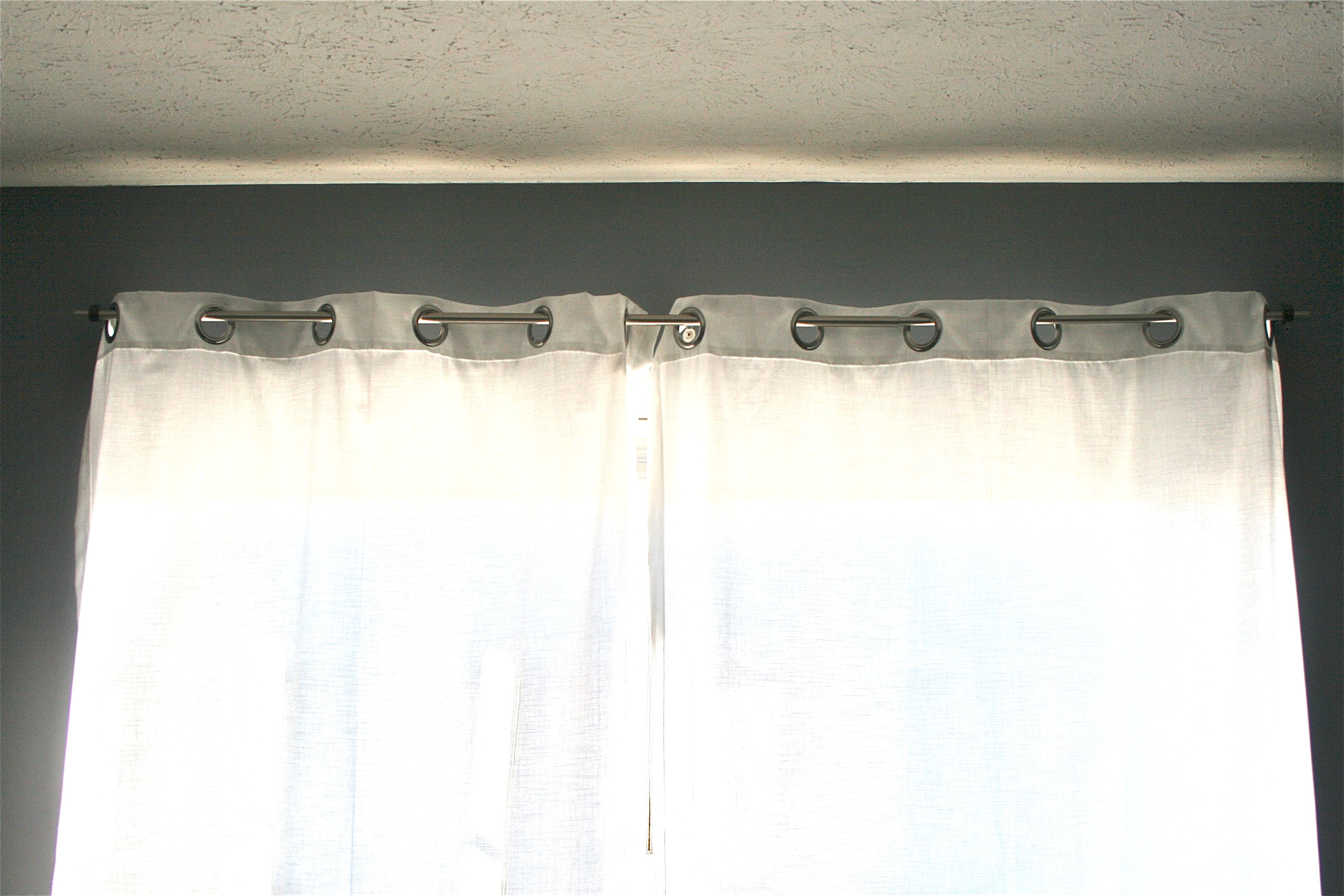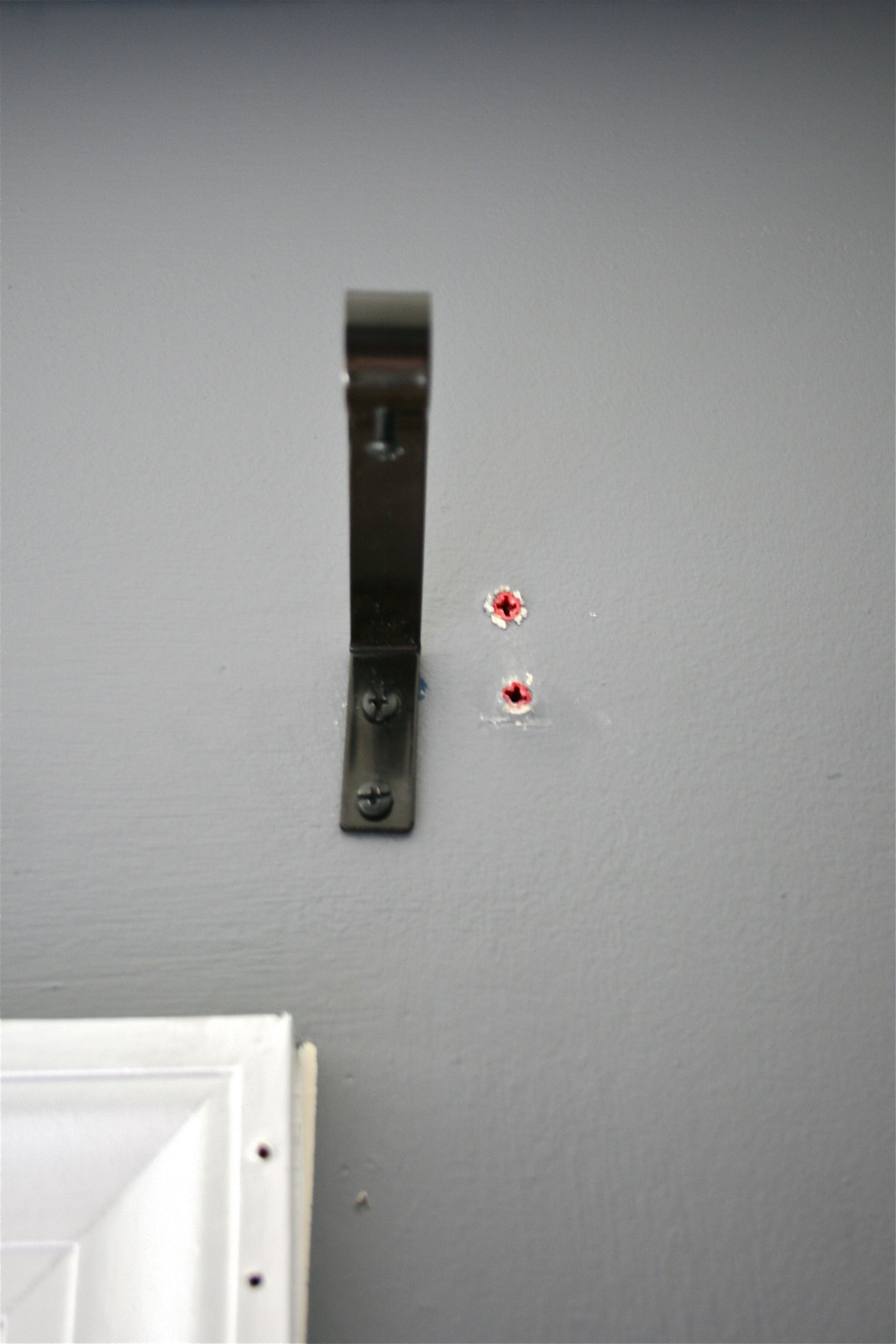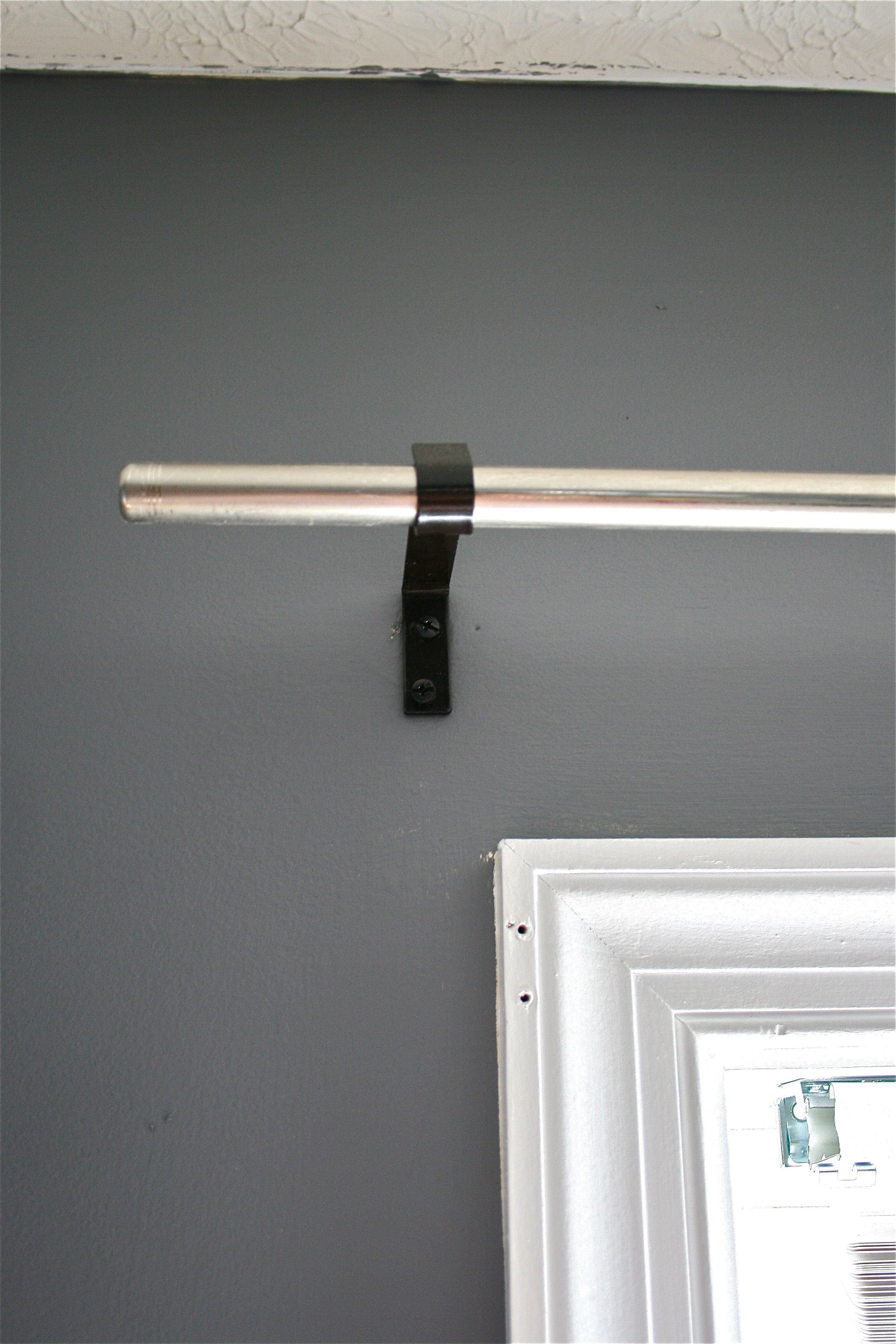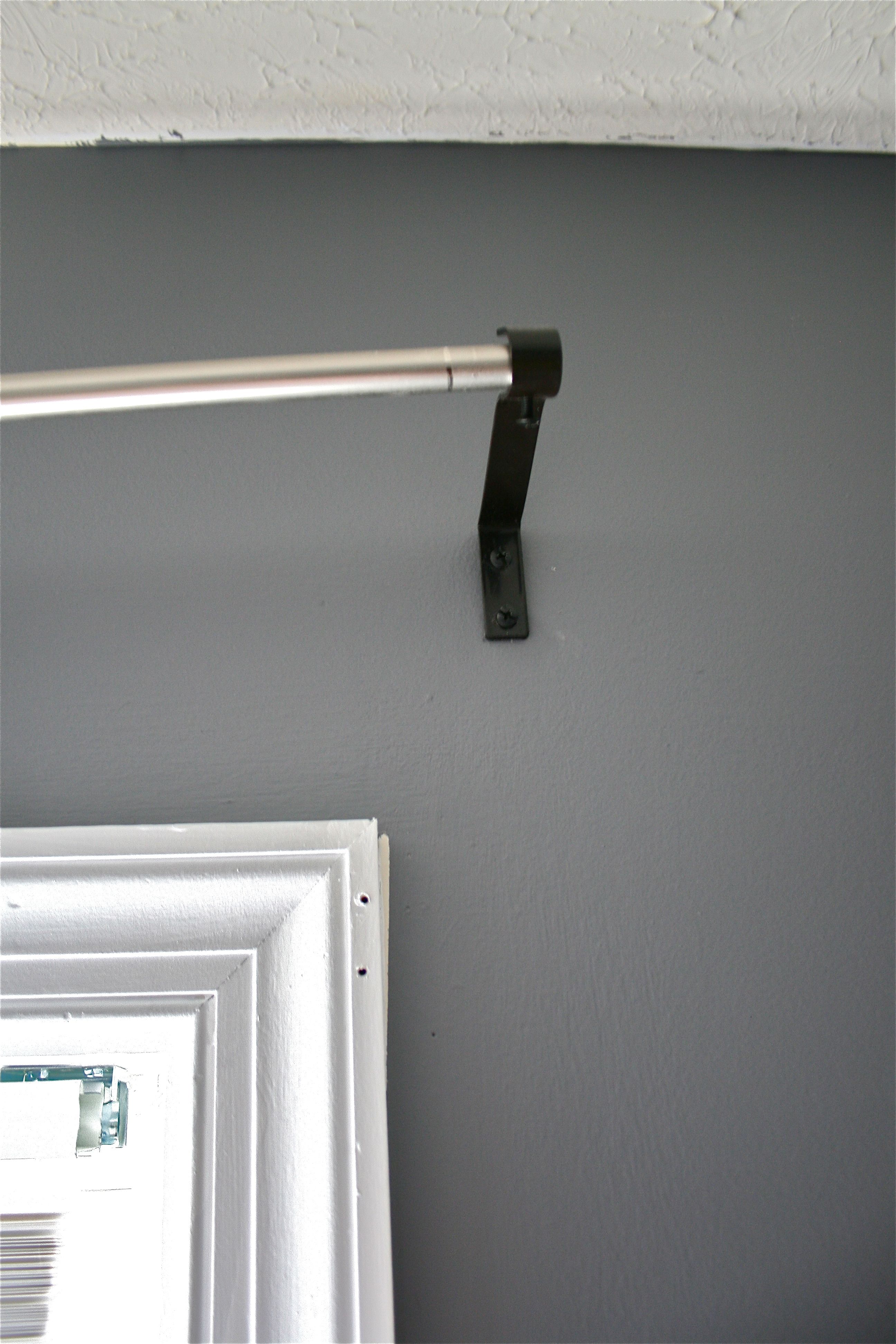 But we aren’t done yet…Since I was already up and intimate with the bedroom window curtain rod, I went ahead and tackled one other to-do item that’s been high on my list. For whatever reason, the curtain rod was initially hung with a distinct upward trend towards the right side. Since that day of careless hardware install (don’t know where my mind was when we hung them), the obviously uneven curtains have been bugging me to no end. It’s probably not easy to see in this TERRIBLY-lit photo (someone please remind me not to take photos of a window treatment in direct afternoon sunlight!) but the rod is definitely “off.”