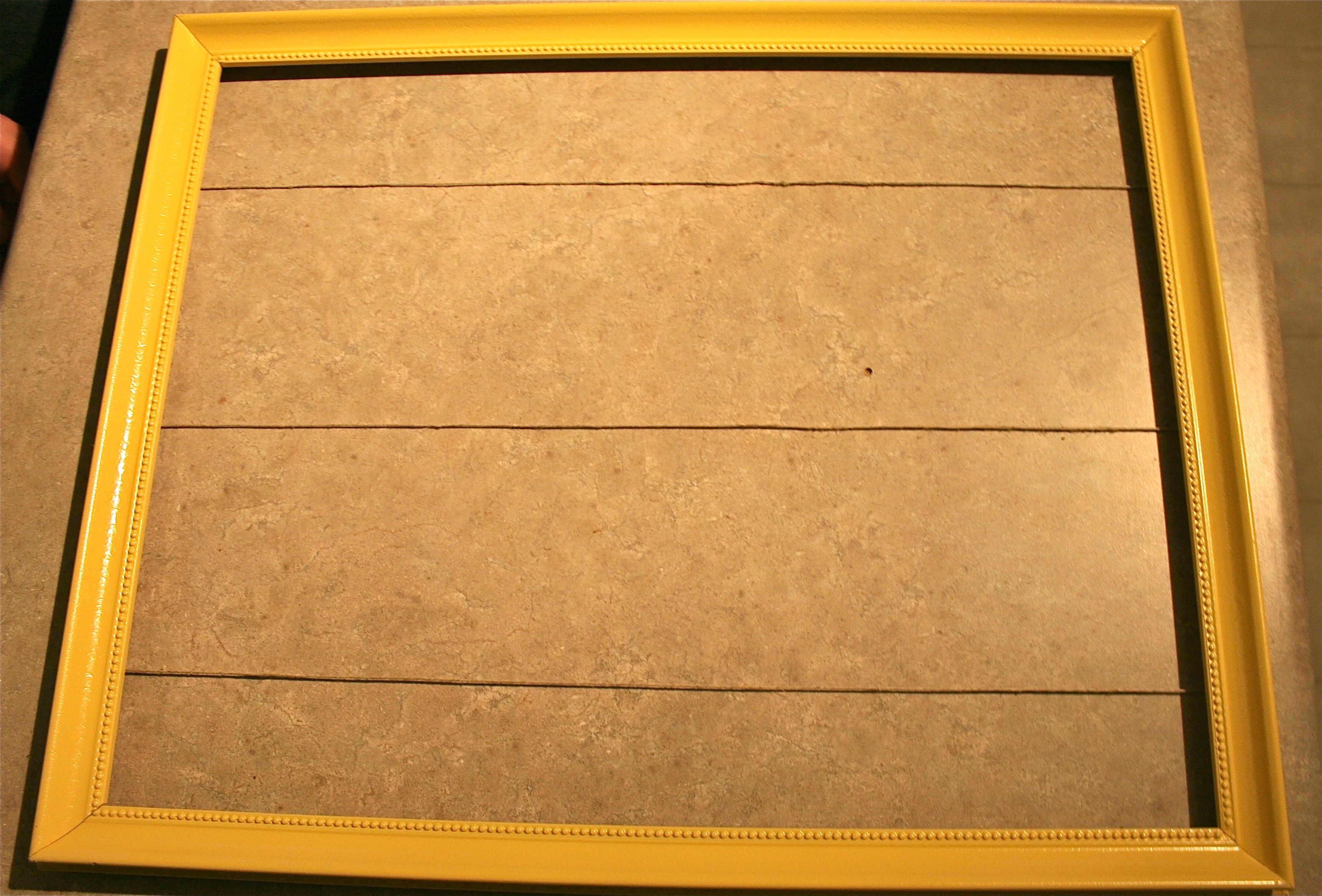 With a hanging spot now in mind, I got to work on the frame. I recently acquired this one when I helped my mom clean out some closets in their house (they are getting new carpet this week and jumped on the excuse to make me get rid of all the stuff I had taking up room in their closets – I don’t blame them). Luckily I was able to snatch up this empty frame (from a college art show way back when), knowing in the back of my mind that it was destined for this project.