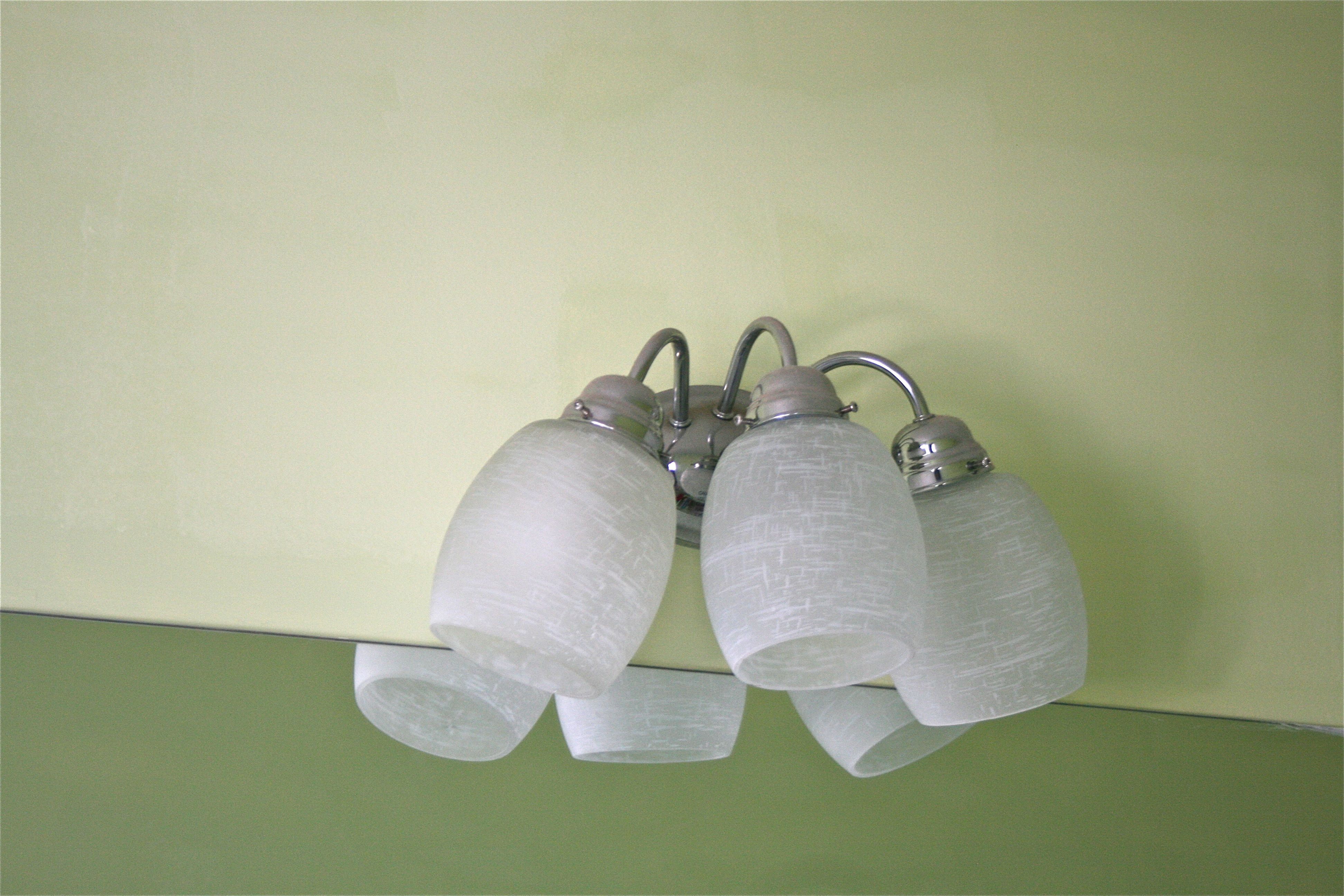 Oh, and now I’m going to throw you for a loop…A couple of weeks ago, I mentioned that I was planning on replacing our dated light fixture globes with something a bit more modern. This option was a lot cheaper than picking out two brand new light fixtures since my favorites came in at about $80 to $100 apiece. Simply replacing the globes for around $60 total seemed like a MUCH better plan. So I brought four options home to try out. (sorry – the lighting in the photo is horrible…It’s not easy to photograph light fixtures head on)