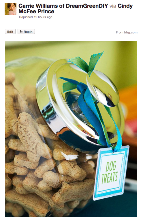What do you think? Do you guys have any other creative ways to store your pet’s treats? Oh the things we do for our “kids”…