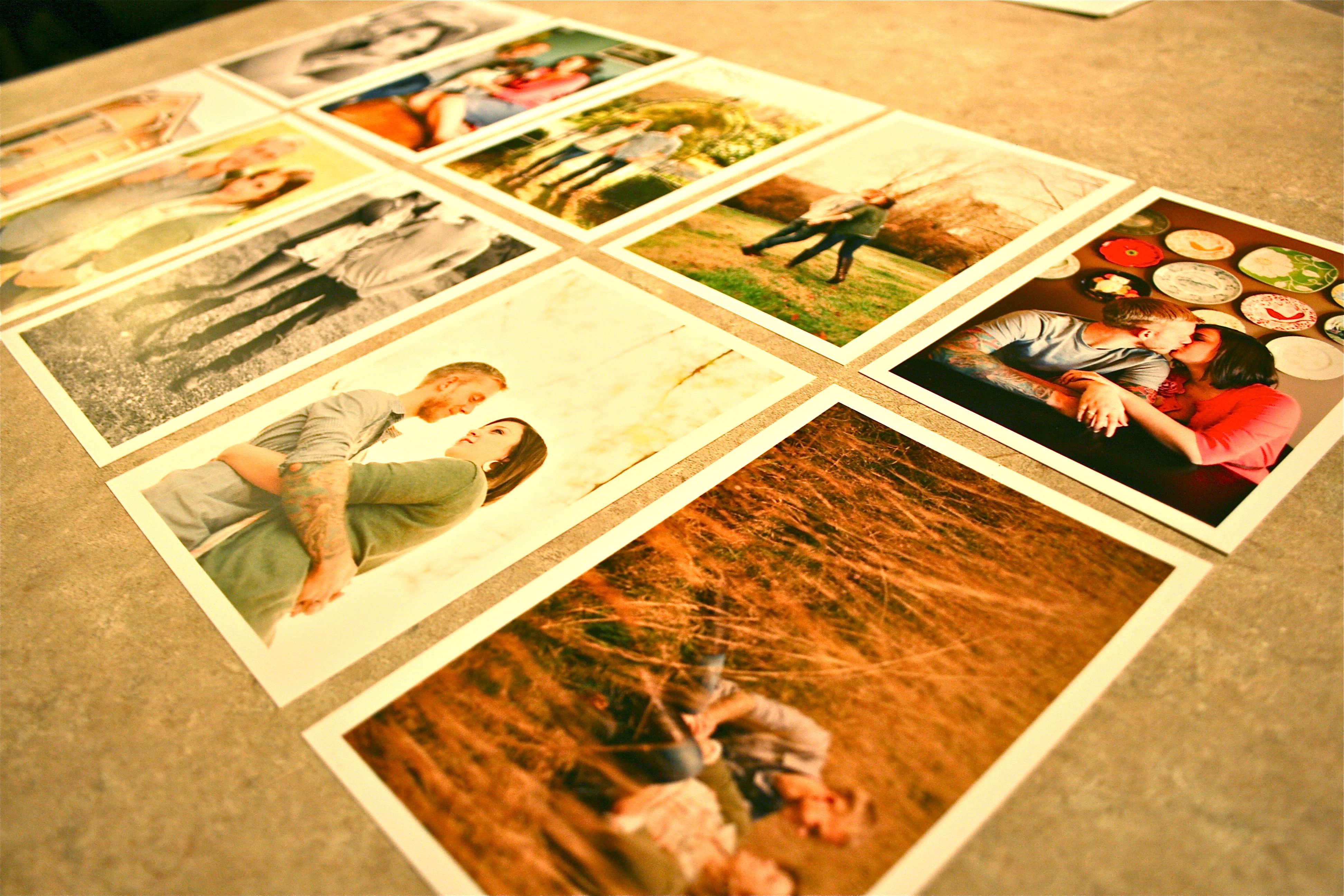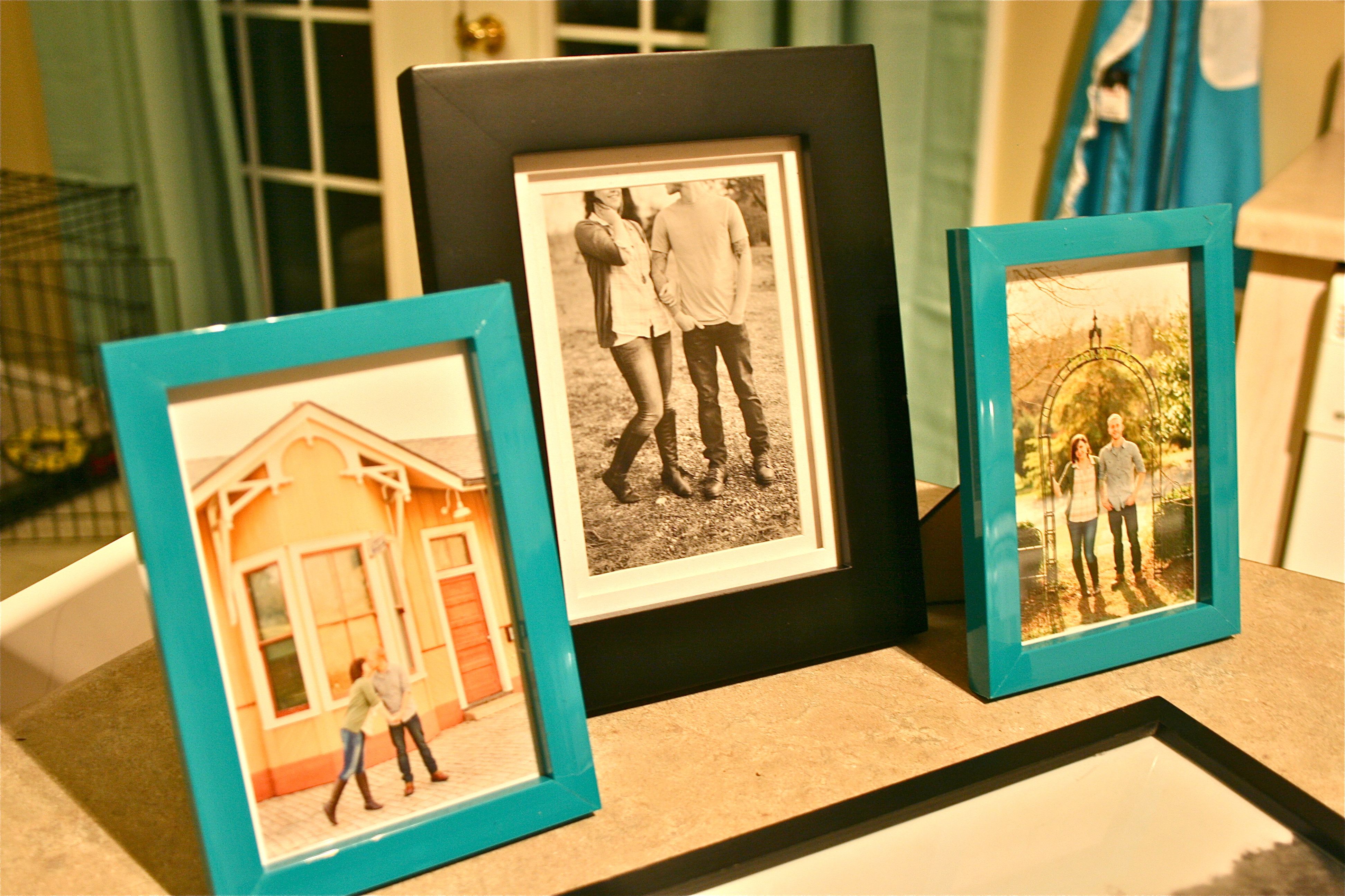 When I hung photos in our stairwell gallery last month, I had in mind to eventually replace the photos with our soon-to-be taken engagement shots. So moments after popping the seal on the envelope, I had the frames off the wall and ready to be re-filled.