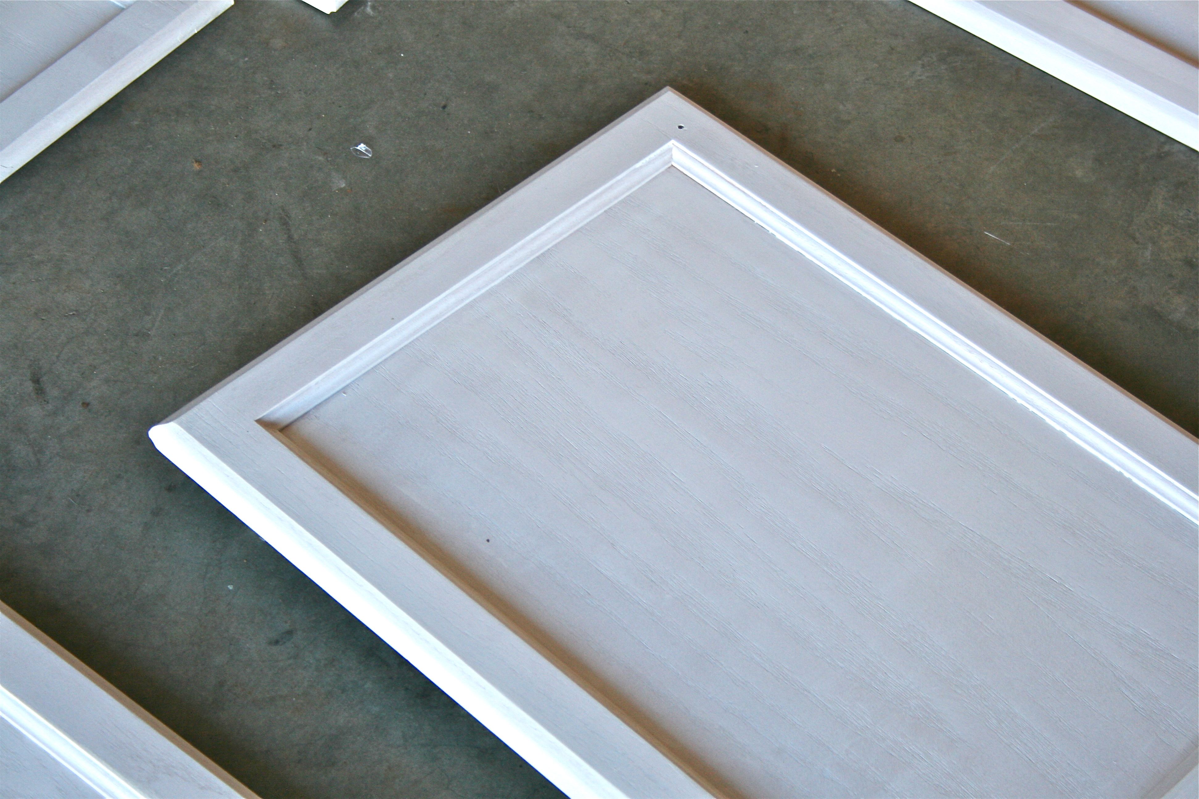 After I finished priming the surfaces in the kitchen (and after John got home to help me), we started working on the kitchen cabinet doors. As I mentioned in Monday’s post, after unscrewing them from the frame we took them down to the basement where we have been working on them all week. I will give you all the detail you need on that process come Monday morning when I rehash days 3 through 7.