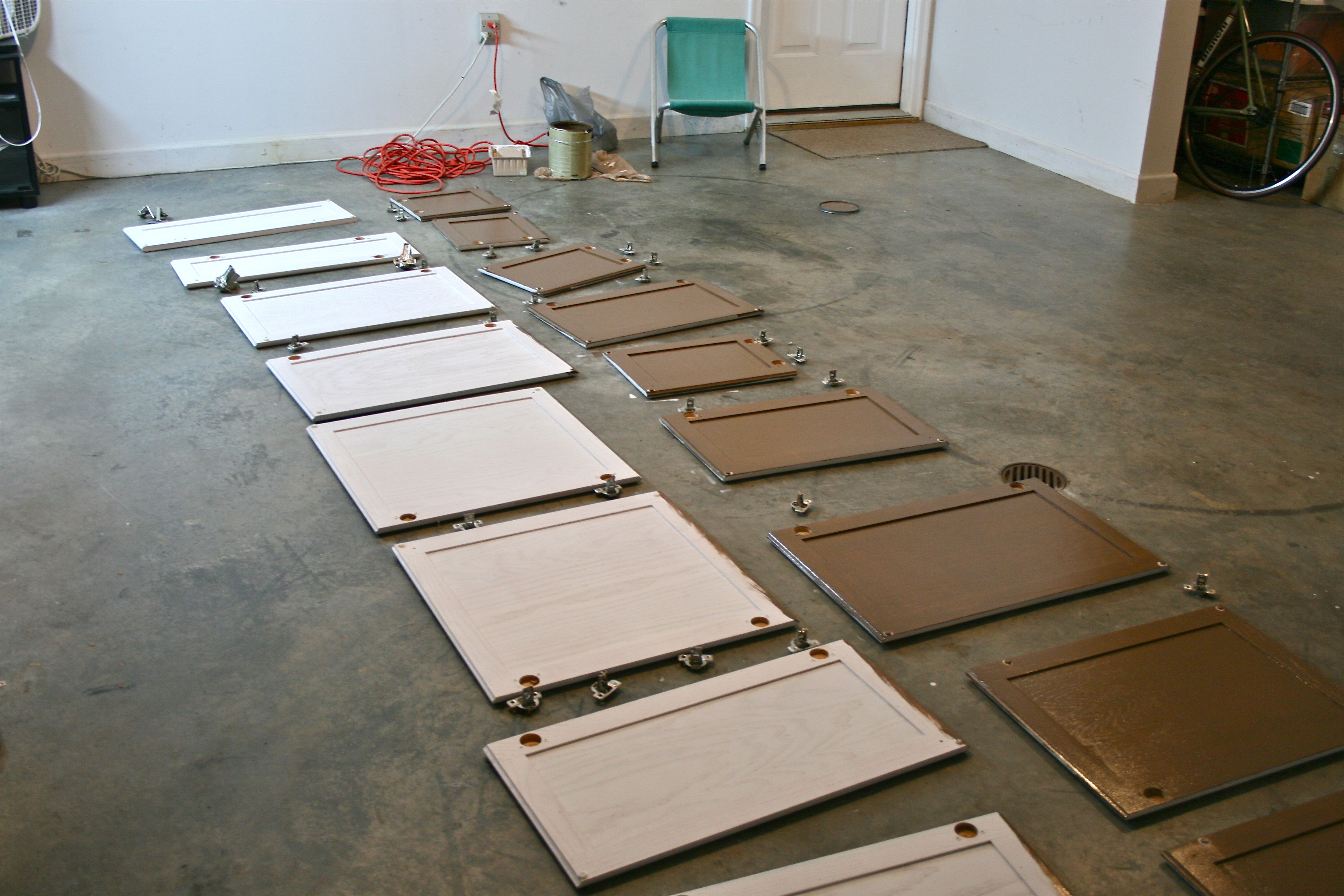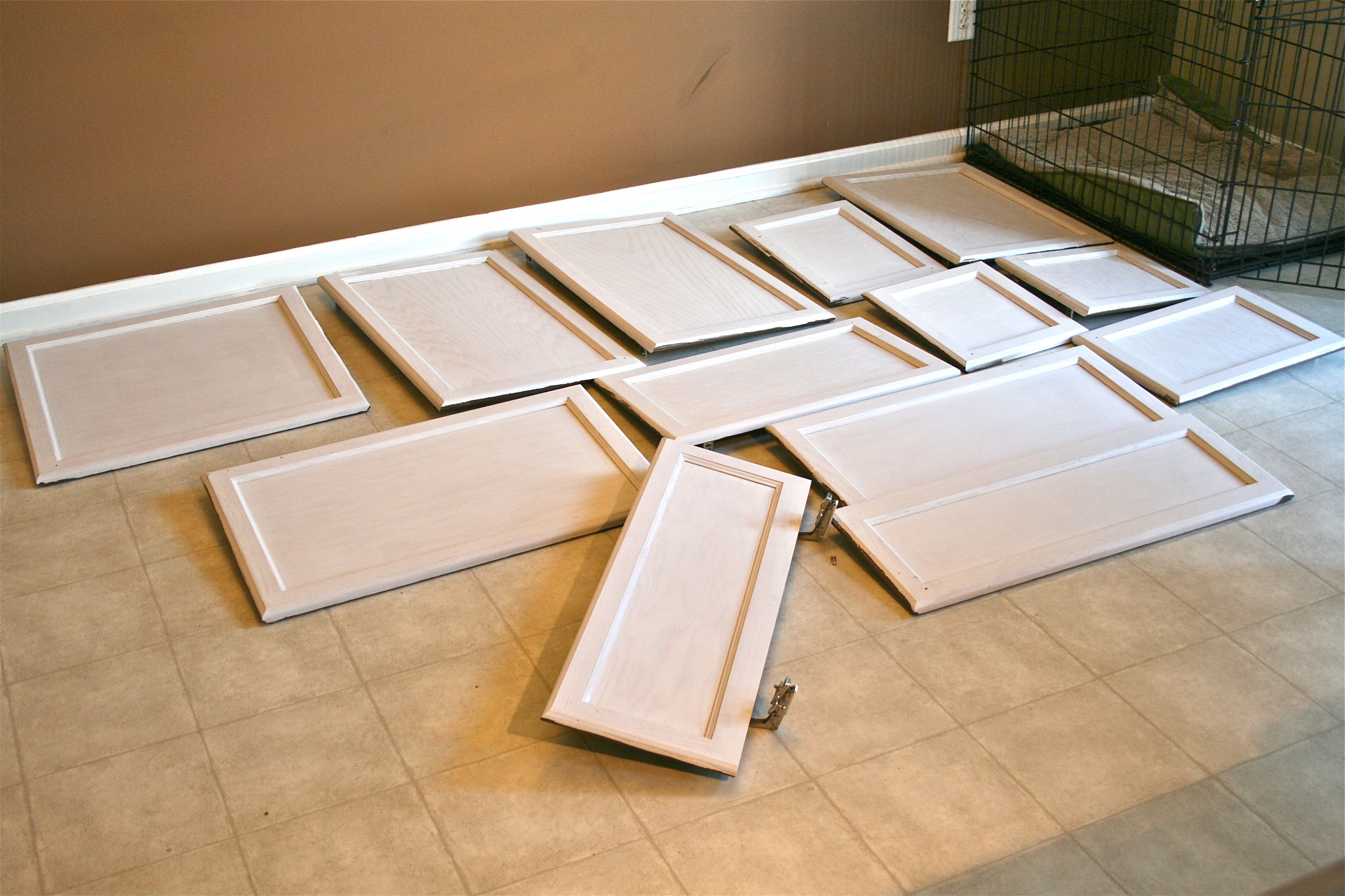 All of the doors in their nice happy rows in the garage had to be carted upstairs to take up space on the kitchen floor.