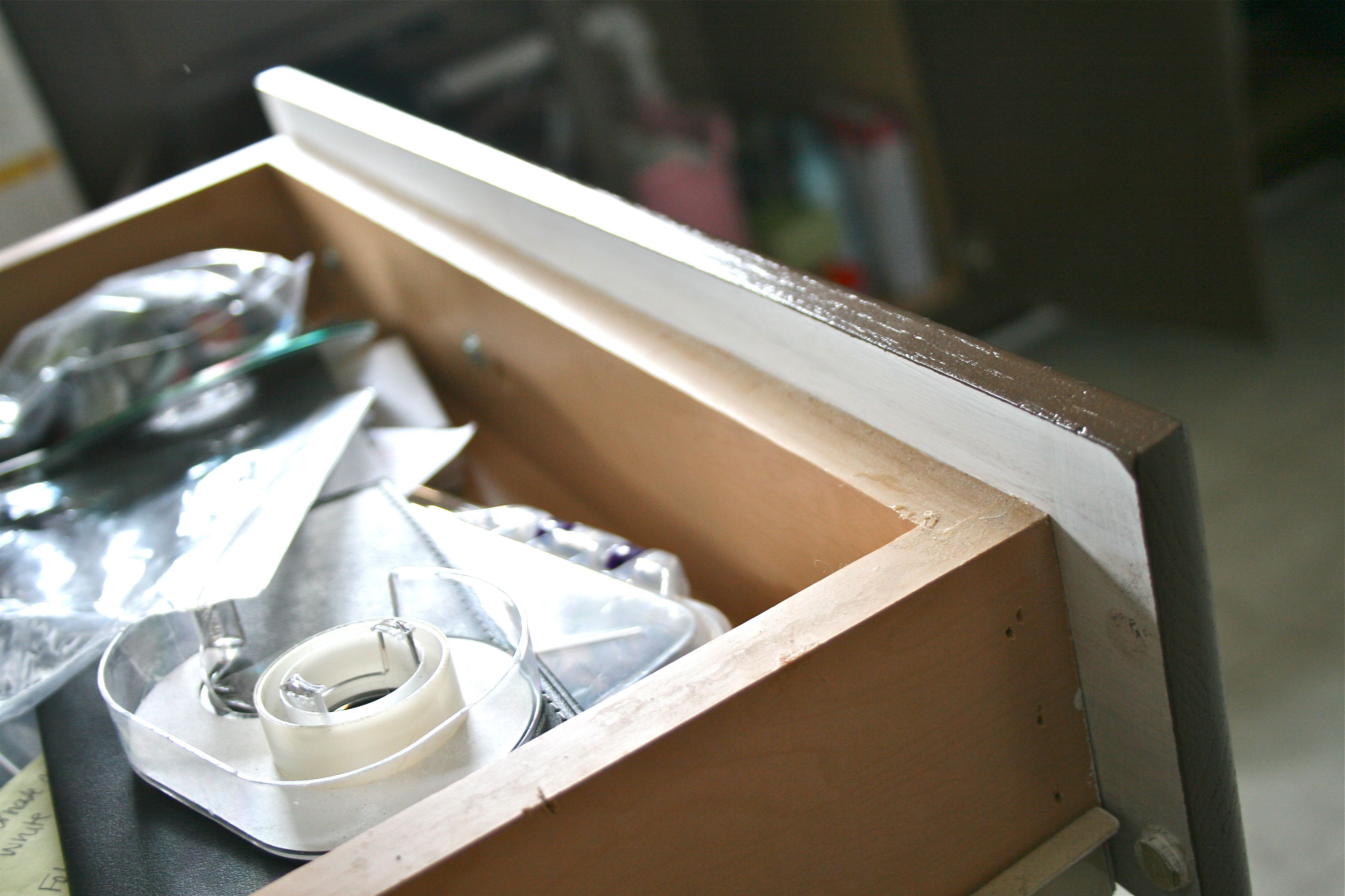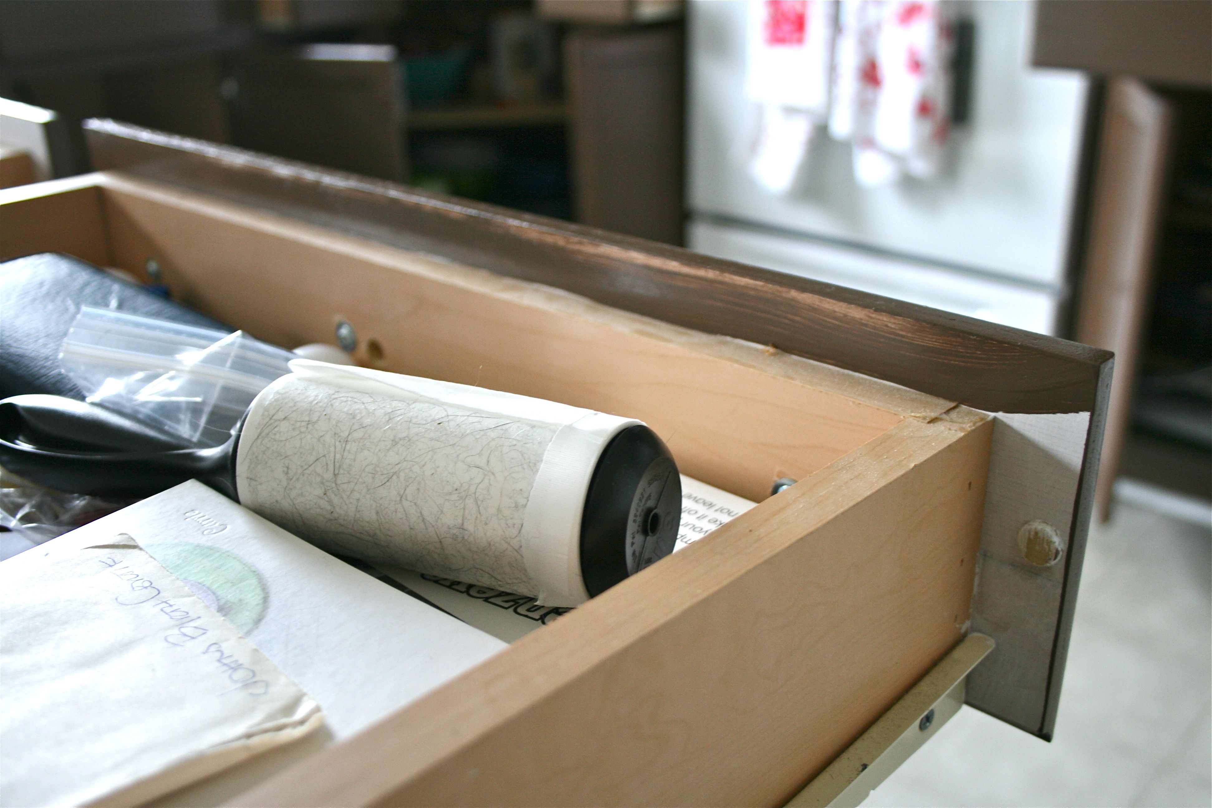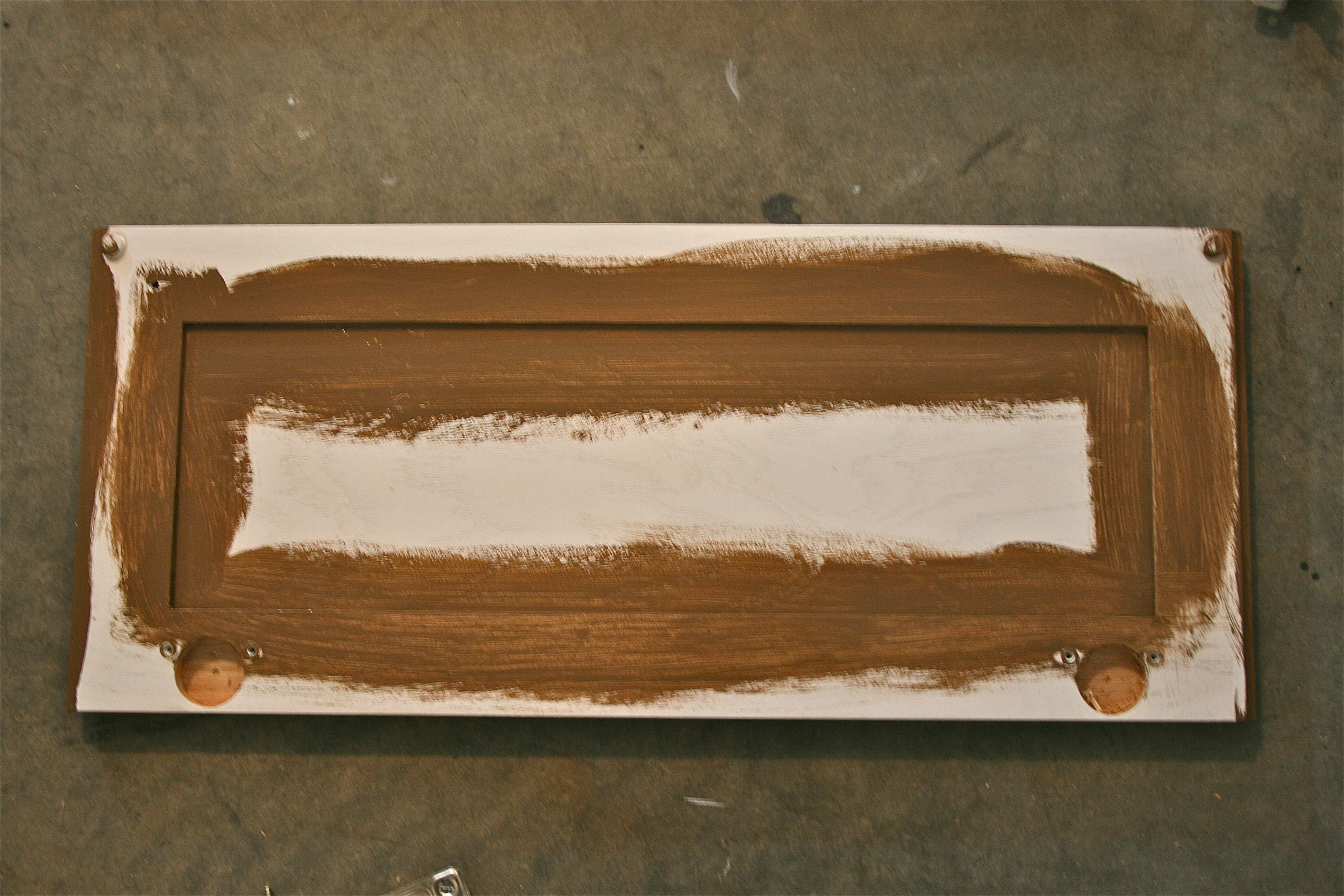 While the paint on the doors was drying, we decided to take care of a little detail we had not factored into our work schedule: The back of the drawer fronts.