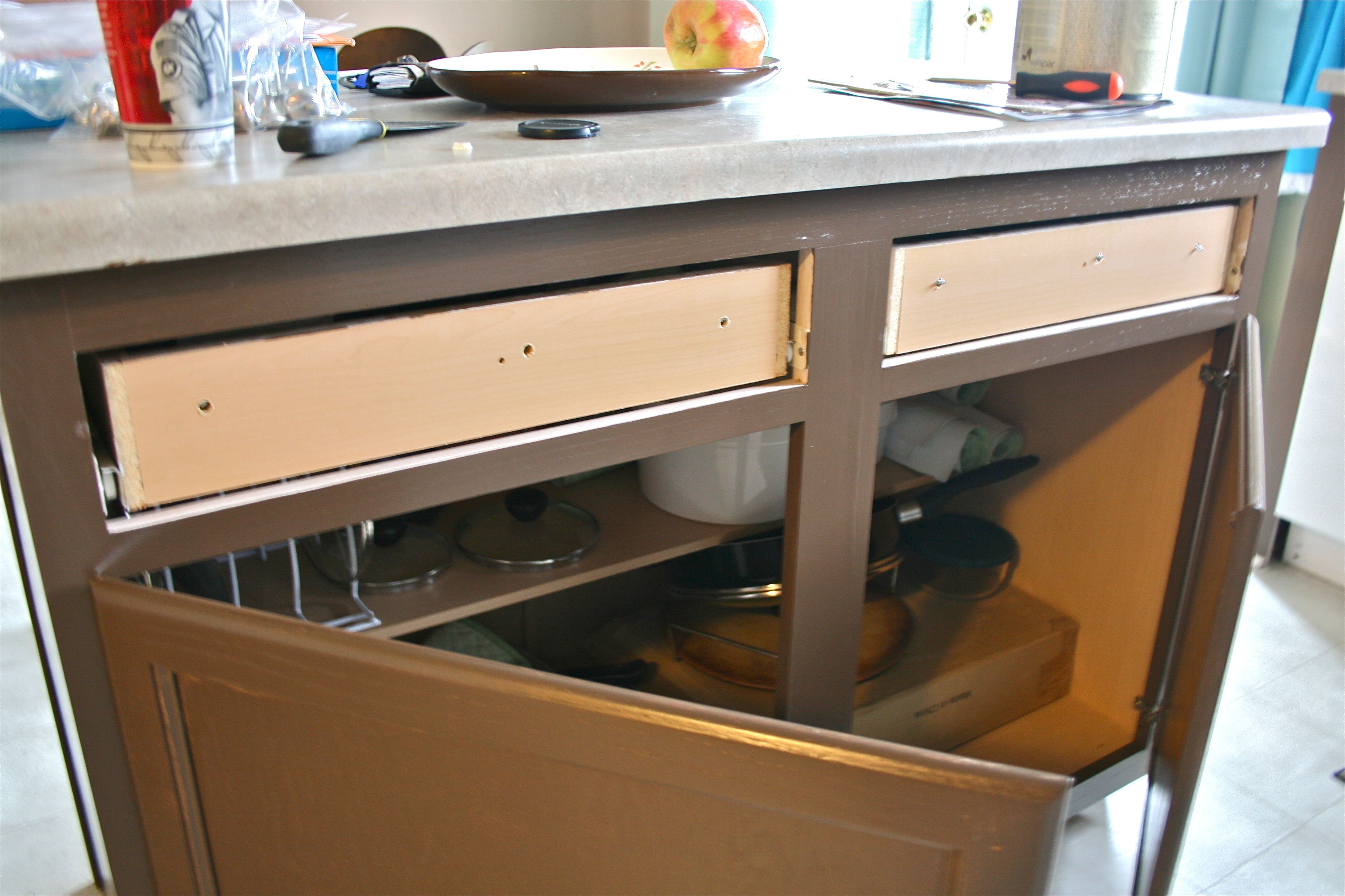 See you back here on Wednesday for an earlier-than-planned reveal, complete with new hardware installed, a crafty and inexpensive alternative to fabric window curtains and a little problem-solving where the drawers are concerned.