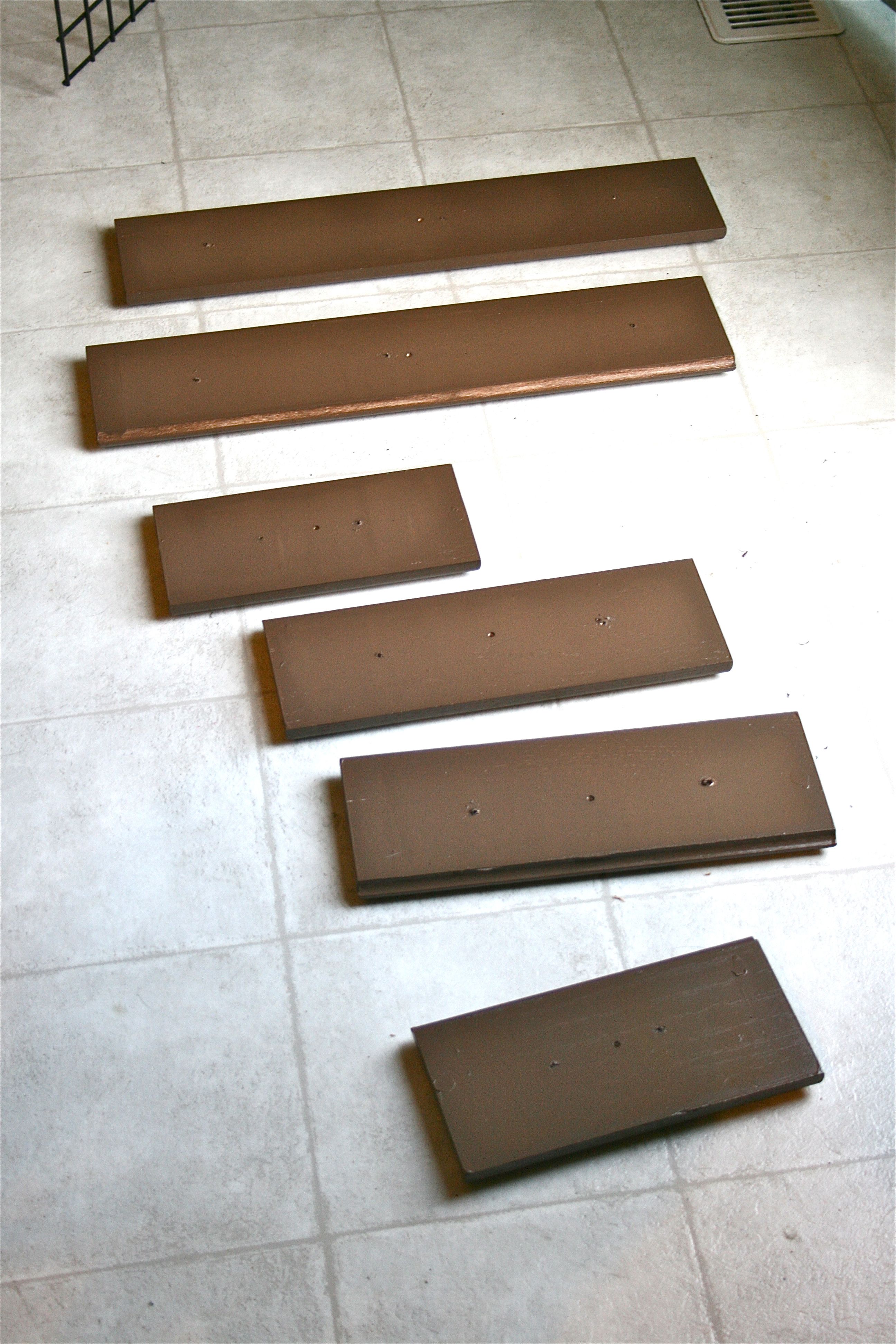 The problem was the weather. As gathered from the side of the paint can, the acceptable temperatures to work with the paint was between 50 and 90 degrees. While the past weekend and beginning of the week itself were unseasonably warm for January in Virginia, the temperature was creeping closer and closer to unacceptable during the day and definitely freezing at night. So we had no choice but to lug everything back up to the kitchen where the wood could soak in all of our indoor insulated heat.