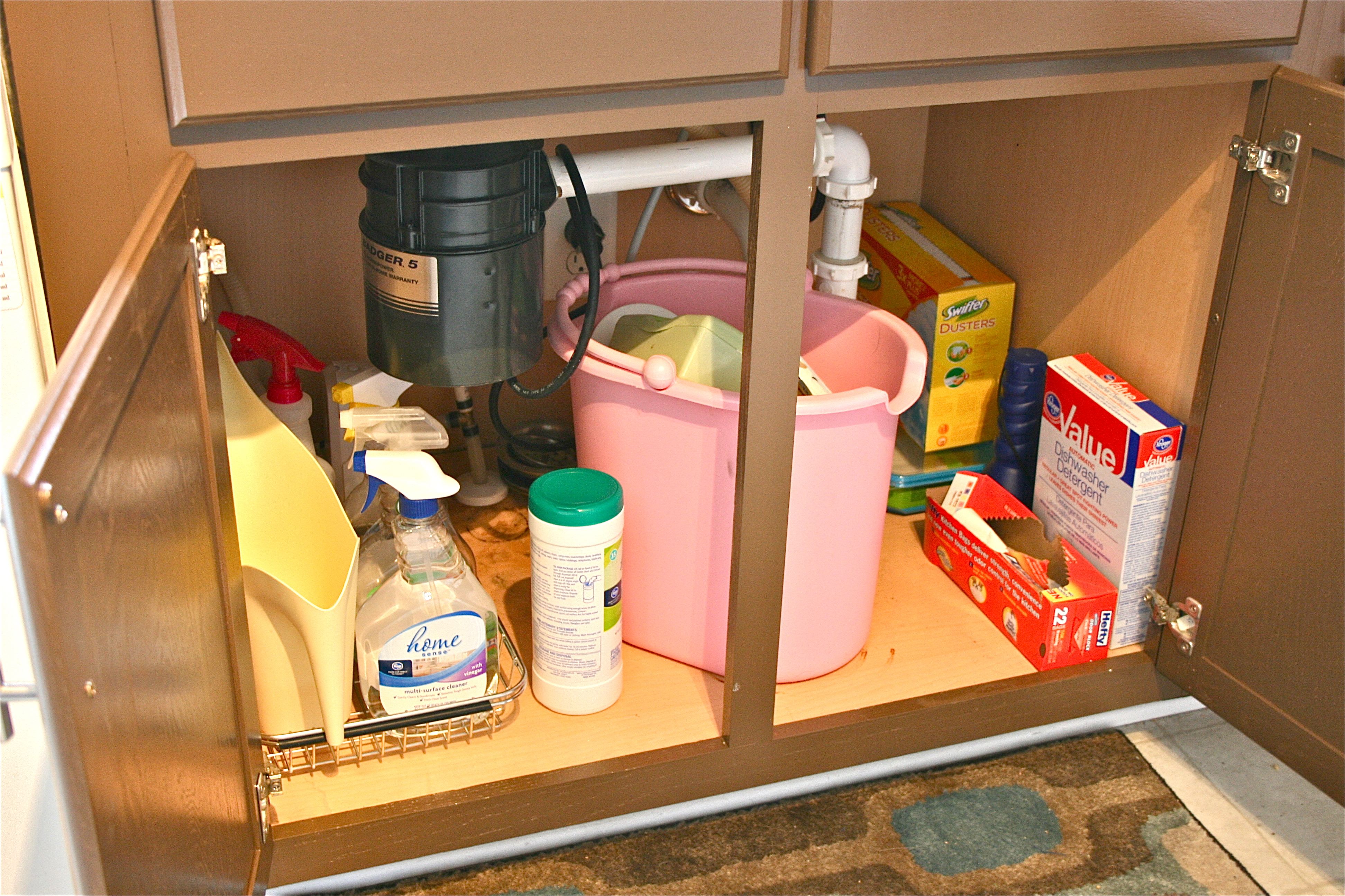 A mess of assorted cleaning products – From upholstery and carpet cleaners, oven cleaner spray and air fresheners, to Clorox wipes and empty spray bottles. Those moments when we needed a certain cleaning product and we needed it fast (like when Rocky’s tail spilled red wine on the white rug) had, up until this point, been fraught with anxiety and the tossing of other cleaners out of the way to get at the one we really needed. According to our friend James Frazer-Mann at Vale Carpet Cleaning, this was not a good system. But I didn’t know of any other way to do it.