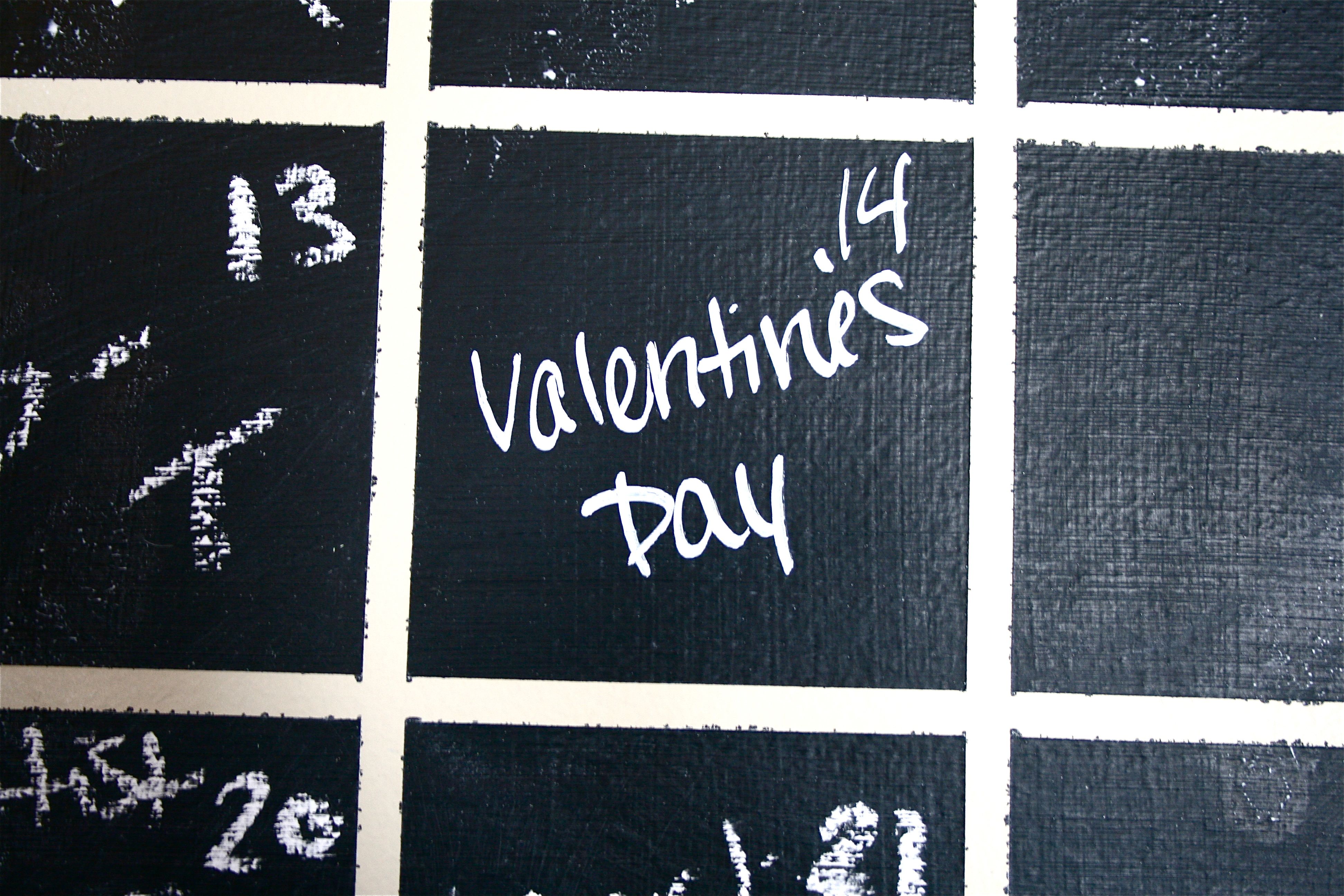 That little “Valentine’s Day” is the crispest note on our calendar amongst all of the other abbreviated scrawls from a chunk of regular chalk. I have since rewritten everything on the calendar and all is finally easy to read and even John can try his hand at putting up some tasks (he didn’t even try when we were using regular chalk).