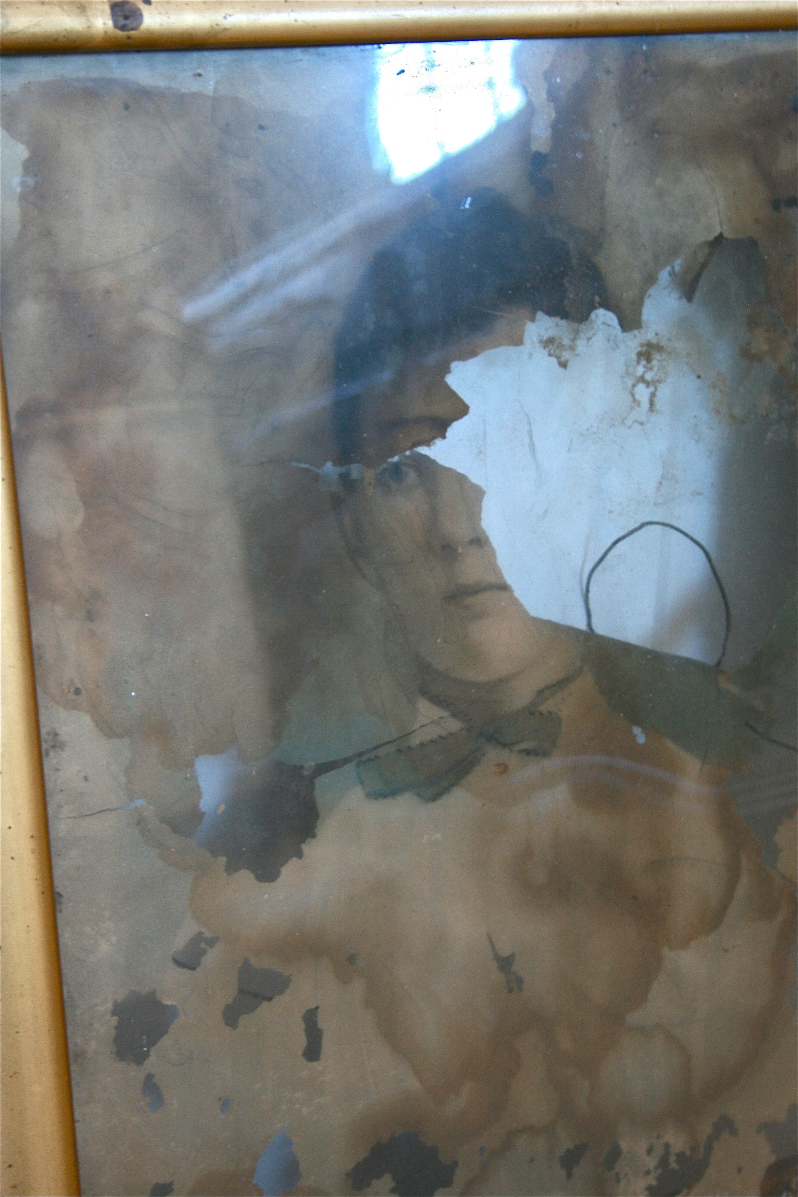 The plan is to replace all of the old and broken wood slates, remove the glass and put in a piece of chalkboard-painted wood instead. The other to-do-list item is to remove the cracked and torn portrait left behind the glass. It’s really quite creepy up close…Although I’m sort of sad that it can’t be salvaged.