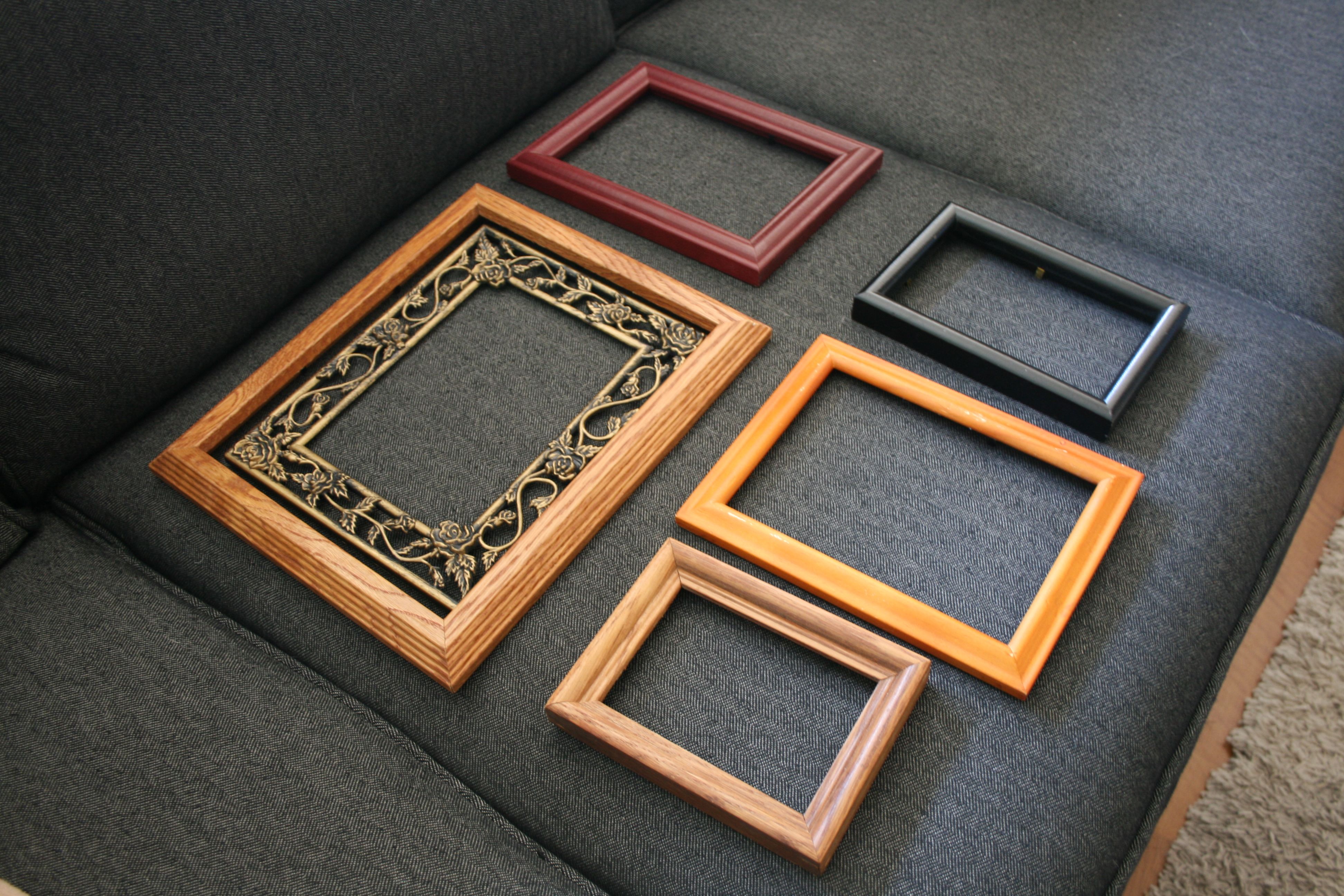 I was hoping to find elaborate, traditional frames with scroll work and filigree because all of those beautiful details really pop when painted a bright color. Alas, as you can see, I only found one that was even close to what I was searching for, but that’s okay. This was one such project that I didn’t feel needed a ton of leg work and multiple shopping stops. The frames didn’t really need to be the stars of the show anyway.