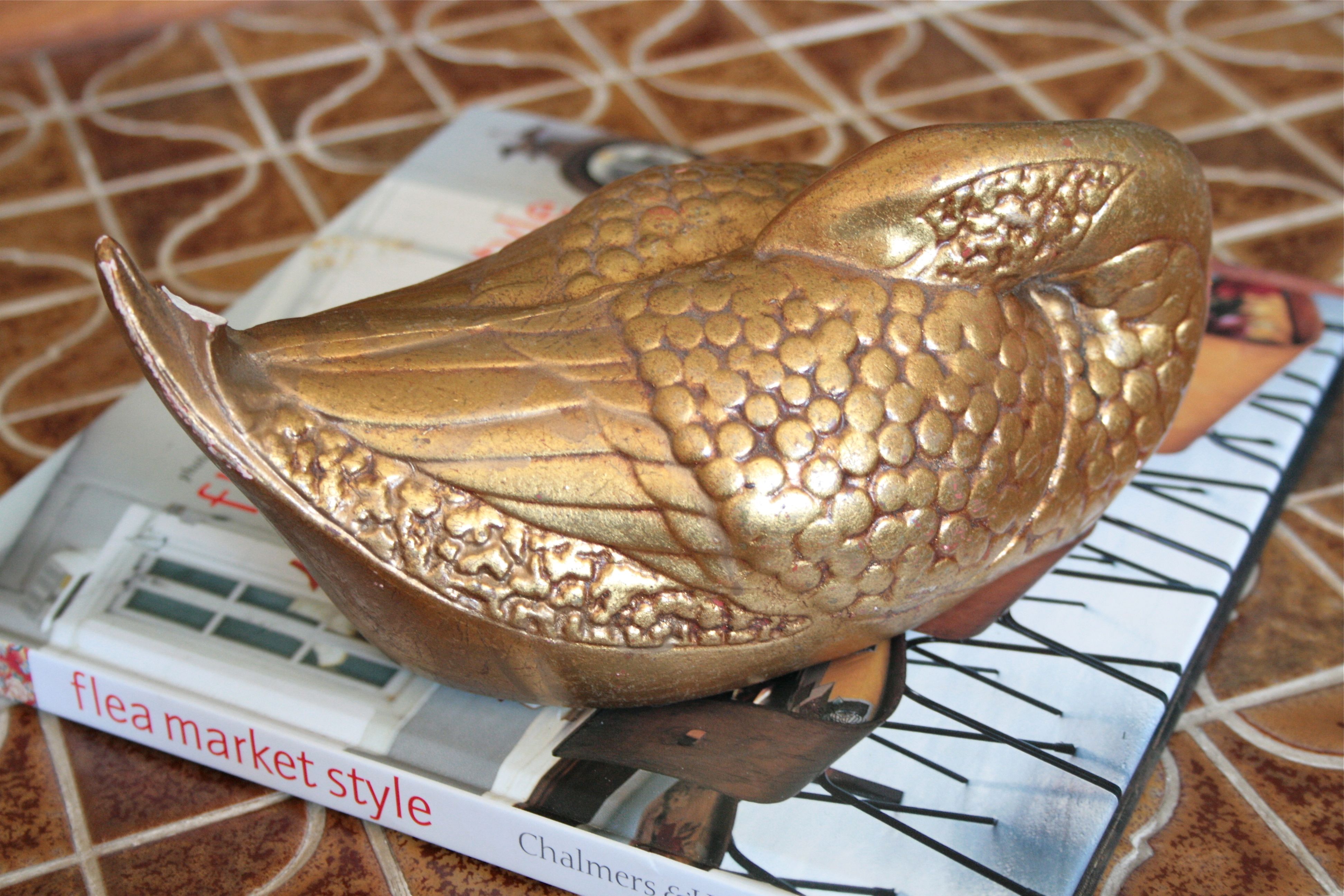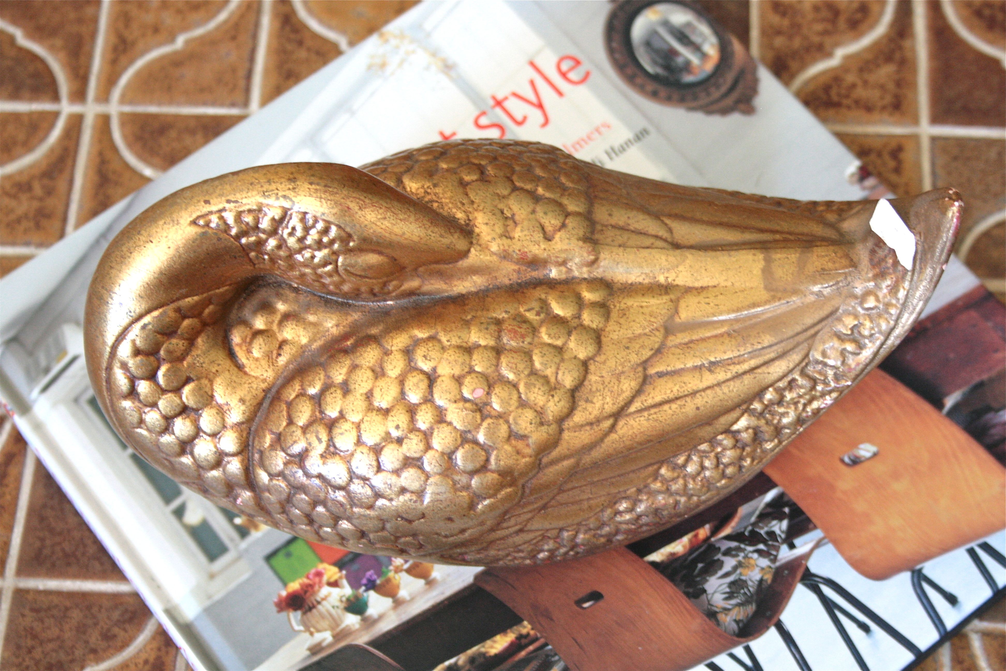 First up, we have Mrs. Golden Duck (or is she a goose? Any bird experts out there?). She came a little worse for wear, but I still love her. She’s sculptural and feminine and just the right size (about 7 or 8 inches in length and 2 or 3 inches high, although don’t quote me on that since I am terrible with estimations).