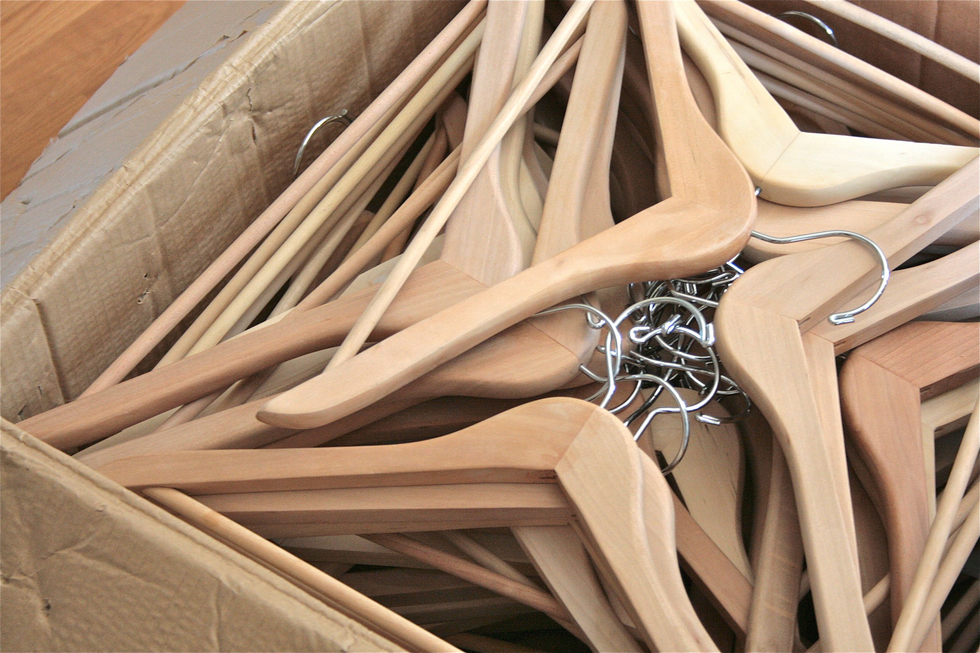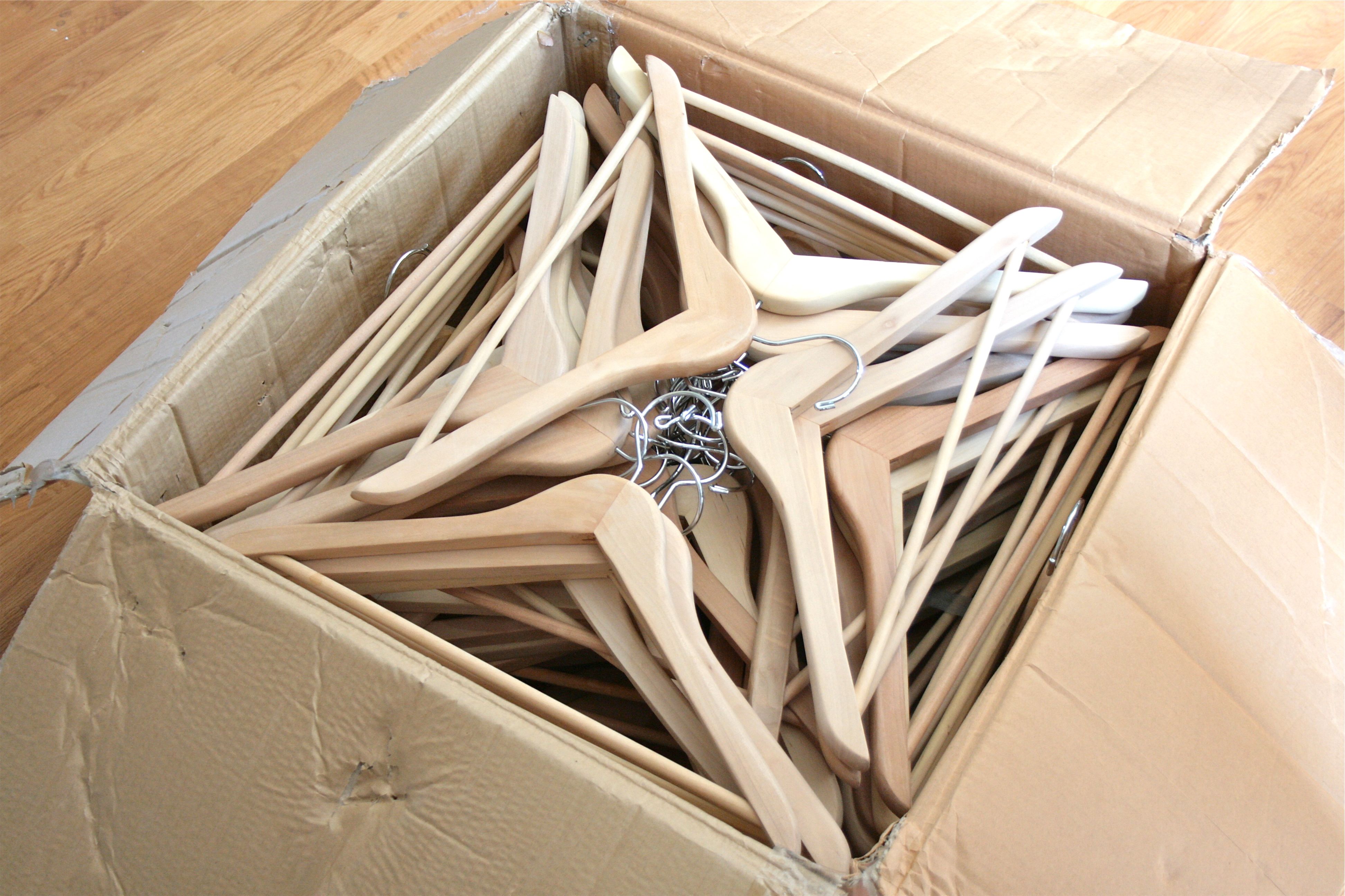 UPDATE: I went out to Target over the weekend for wooden hanger supplements hoping to buy no more than 10, but left with a value pack of 24 hangers for only $14. They don’t match the Ebay hangers perfectly, but they certainly do the trick, and I doubt anyone would notice the inconsistency other than me.