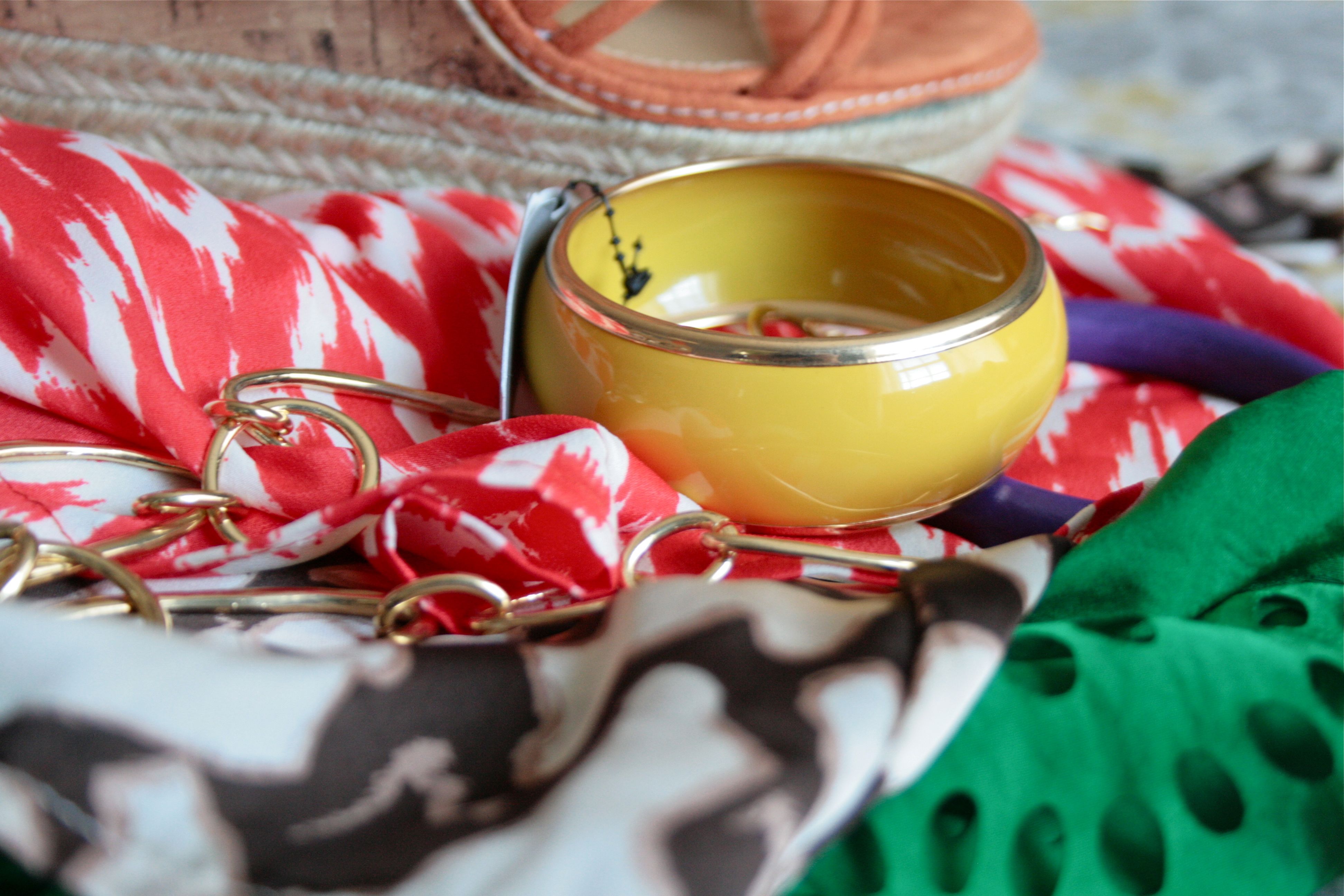 I have really been into fashion lately…Not sure when my focus shifted from home style to clothing and accessories, but I can’t deny my love of a great outfit any longer. Now, I wake up every morning motivated to craft a colorful, cohesive ensemble down to the bracelet. It’s fun to mix and match patterns, colors and metals to make a balanced and sophisticated look – In fact, it’s really not much different than styling a shelf or arranging fabrics in a living space. The same principles still count here, just in clothes.